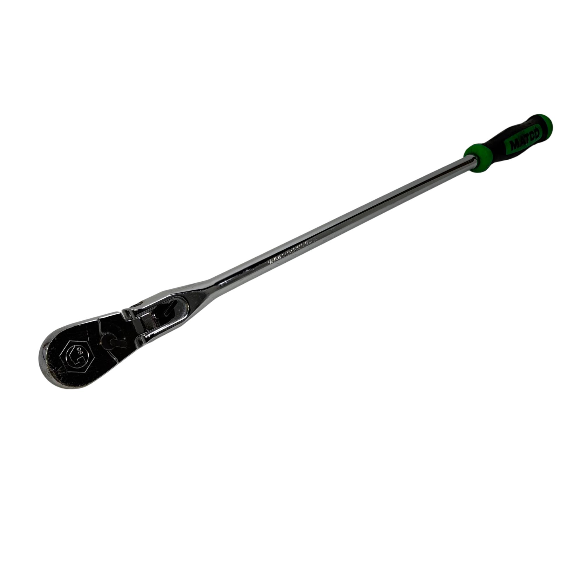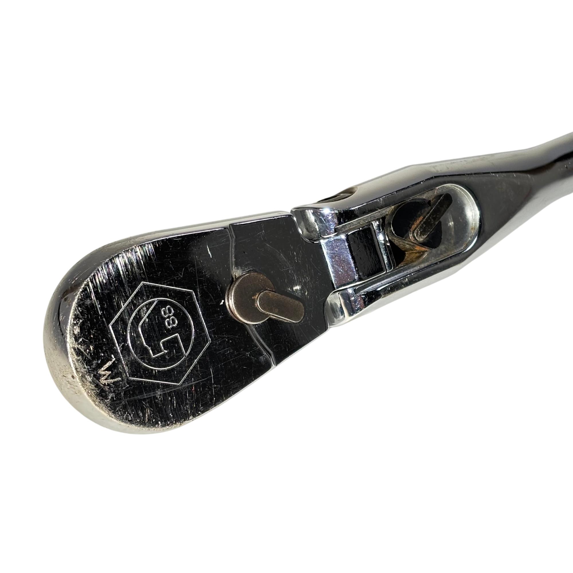 Matco Tools 1/2 Drive 88 Tooth Locking Flex Head Ratchet (CFR248LFG) features a flexible head designed to access tight spaces with ease. Its 88-tooth mechanism allows for precise control and smooth operation, making it ideal for heavy-duty automotive and mechanical applications.