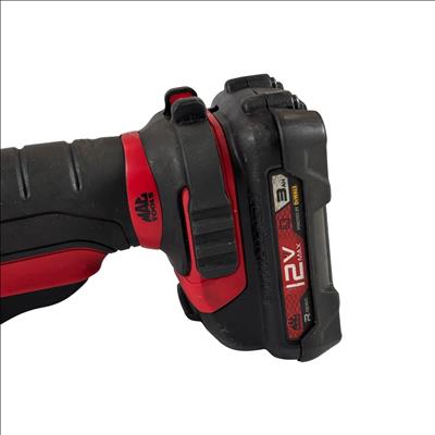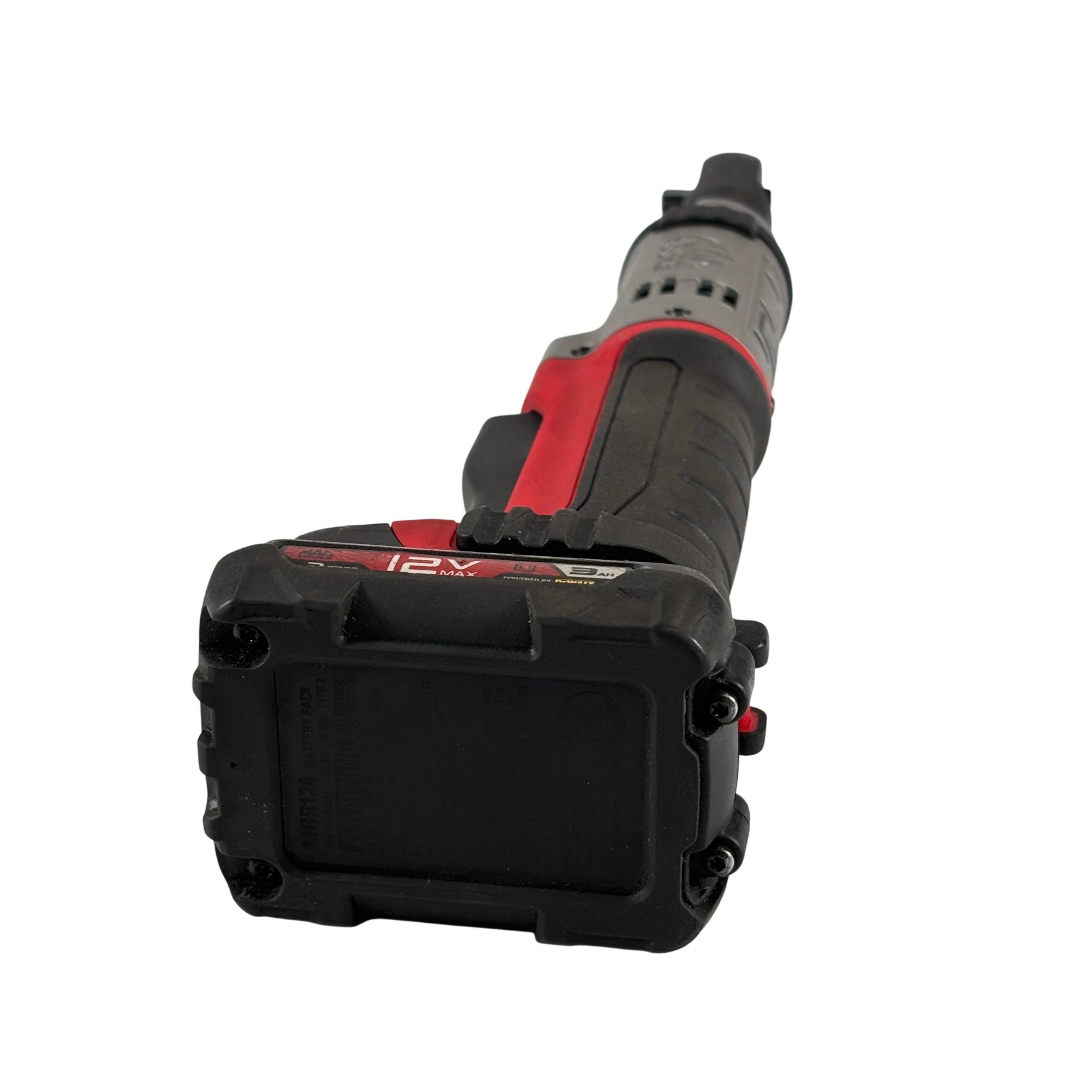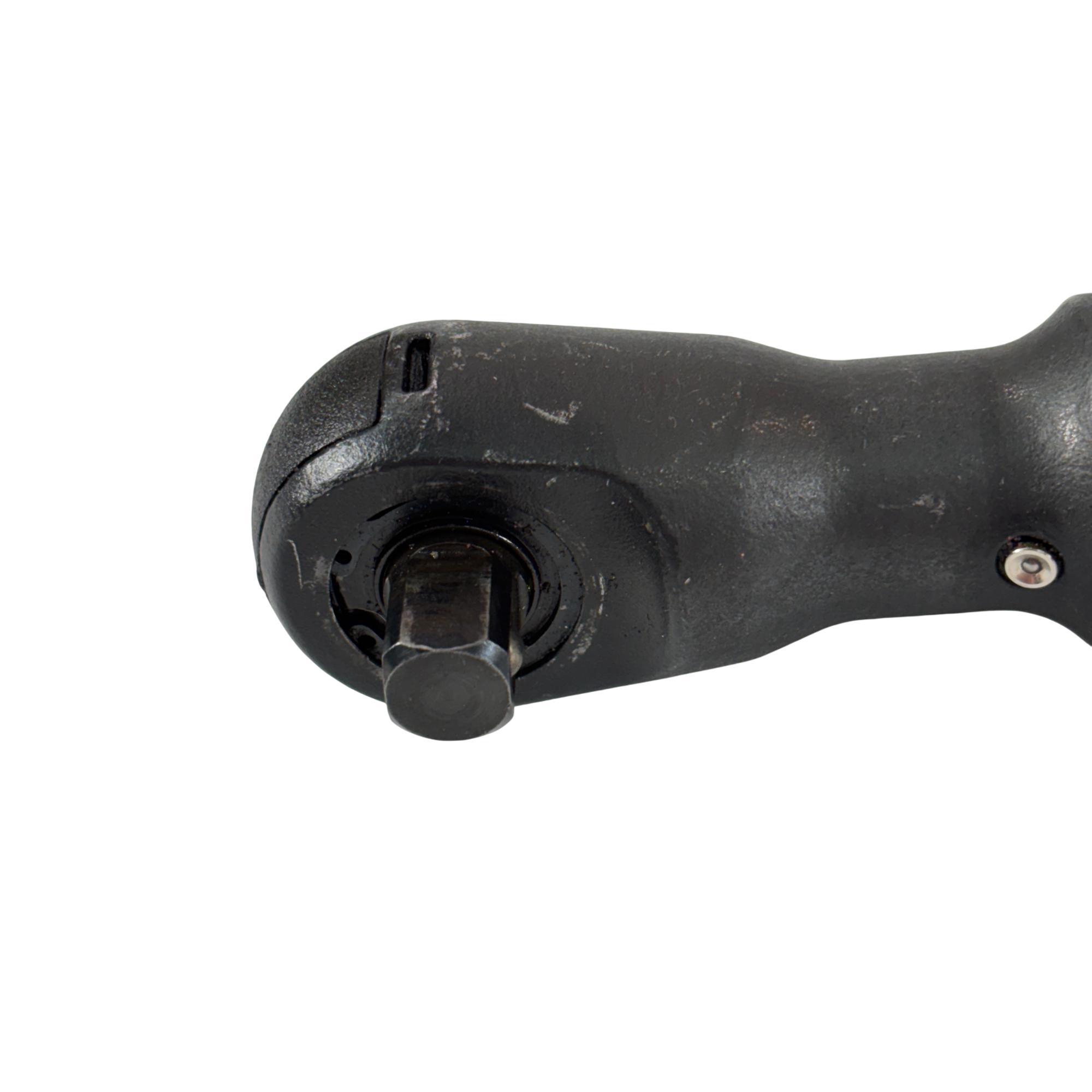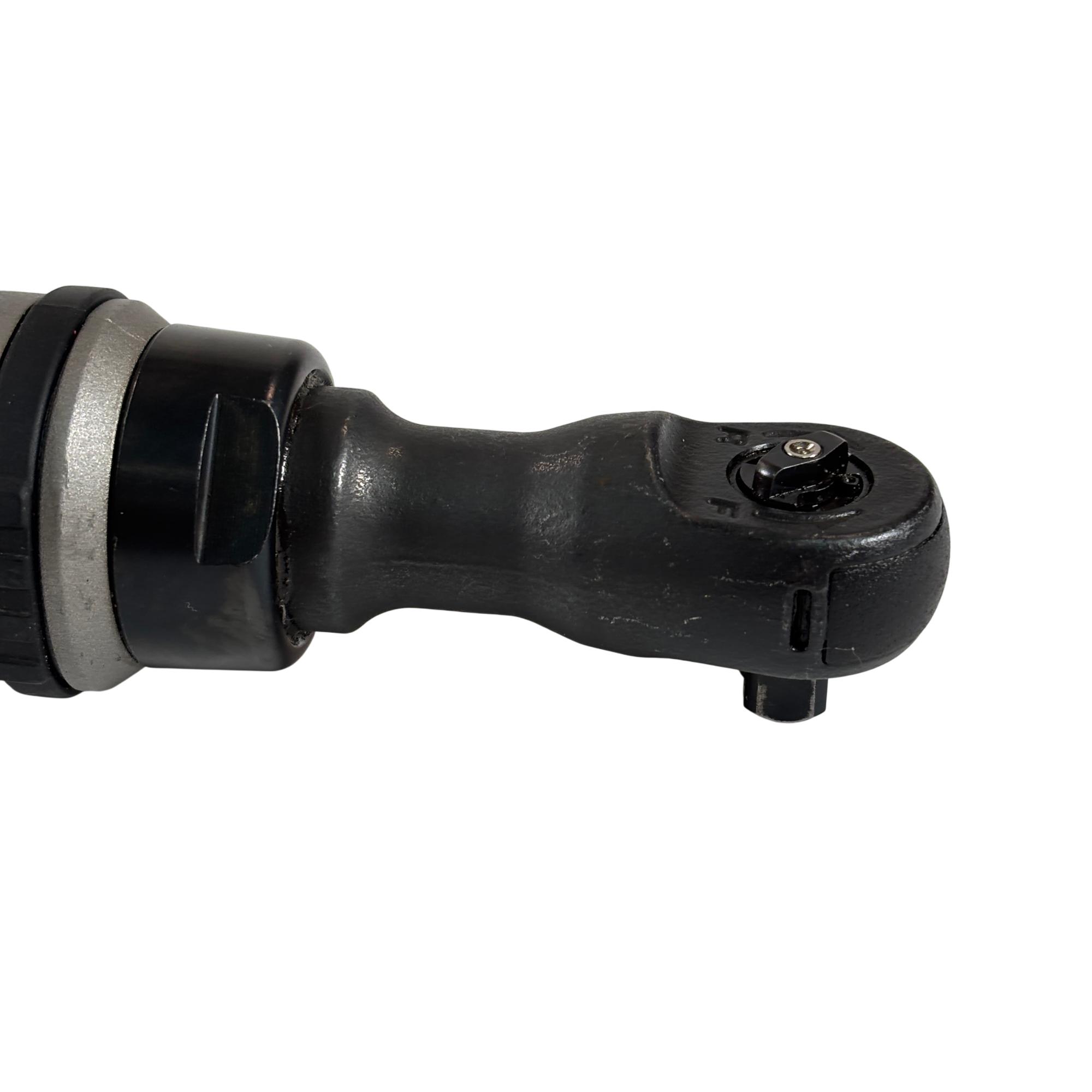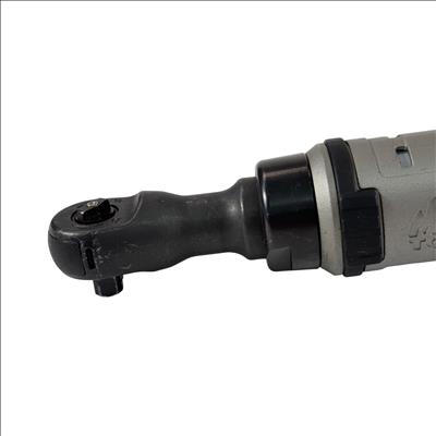 Mac Tools BRS038 12-Volt MAX 3/8" drive cordless ratchet wrench with a forward/reverse lever and variable-speed control for precise operation. Features a closed-head design, die-cast aluminum construction, and a glass-filled nylon body for durability and resistance to automotive fluids. Equipped with an anti-slip ergonomic grip, LED work light, electronic brake, and anti-marring bumper to protect both the tool and work surfaces.