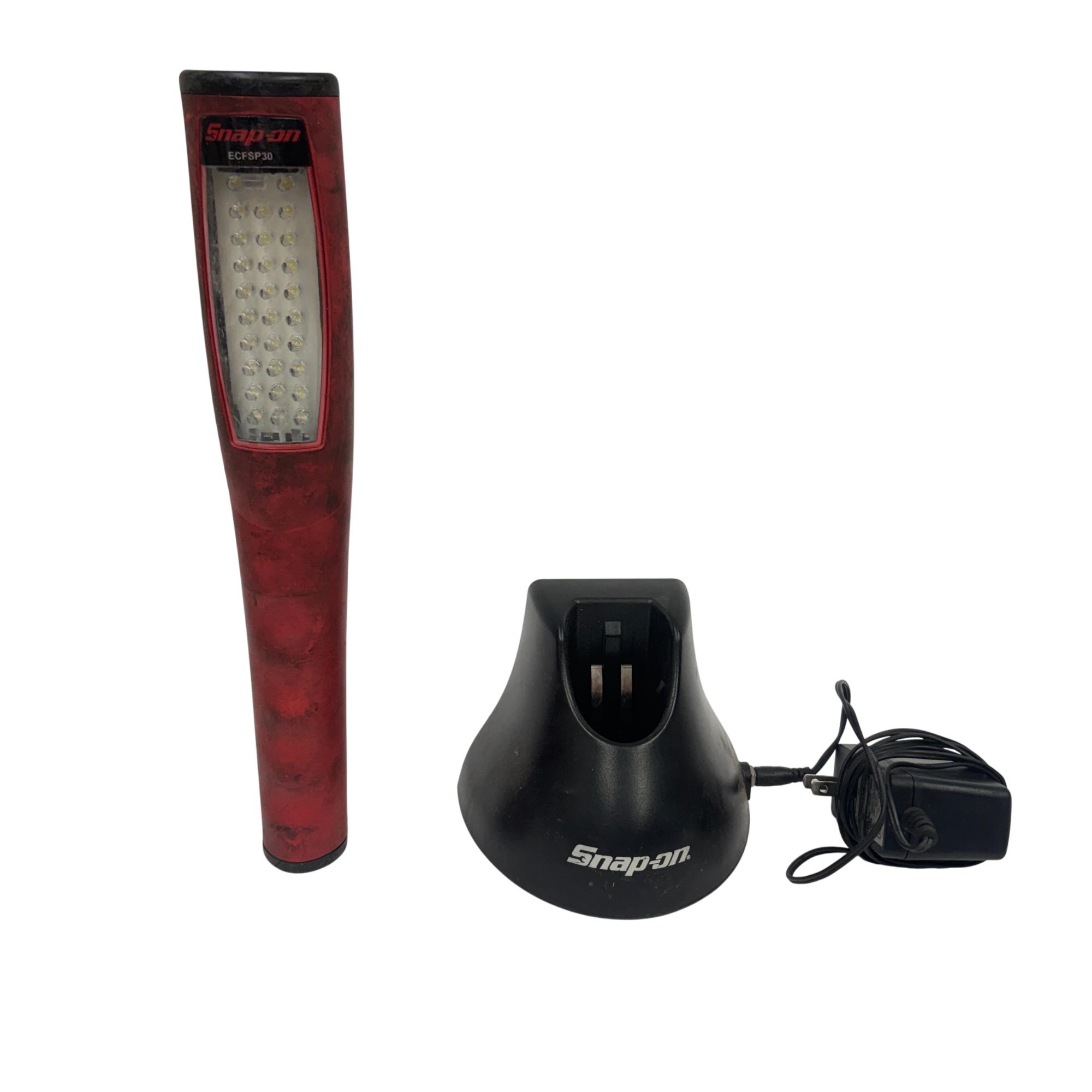 This Snap-on Rechargeable LED Work Light with Charging Stand offers powerful illumination with a bright, focused beam ideal for detailed tasks. Designed in red and black, this cordless light features a sturdy handle and a convenient charging stand for easy storage. Its slim profile and durable construction make it perfect for professional and home workshop use.