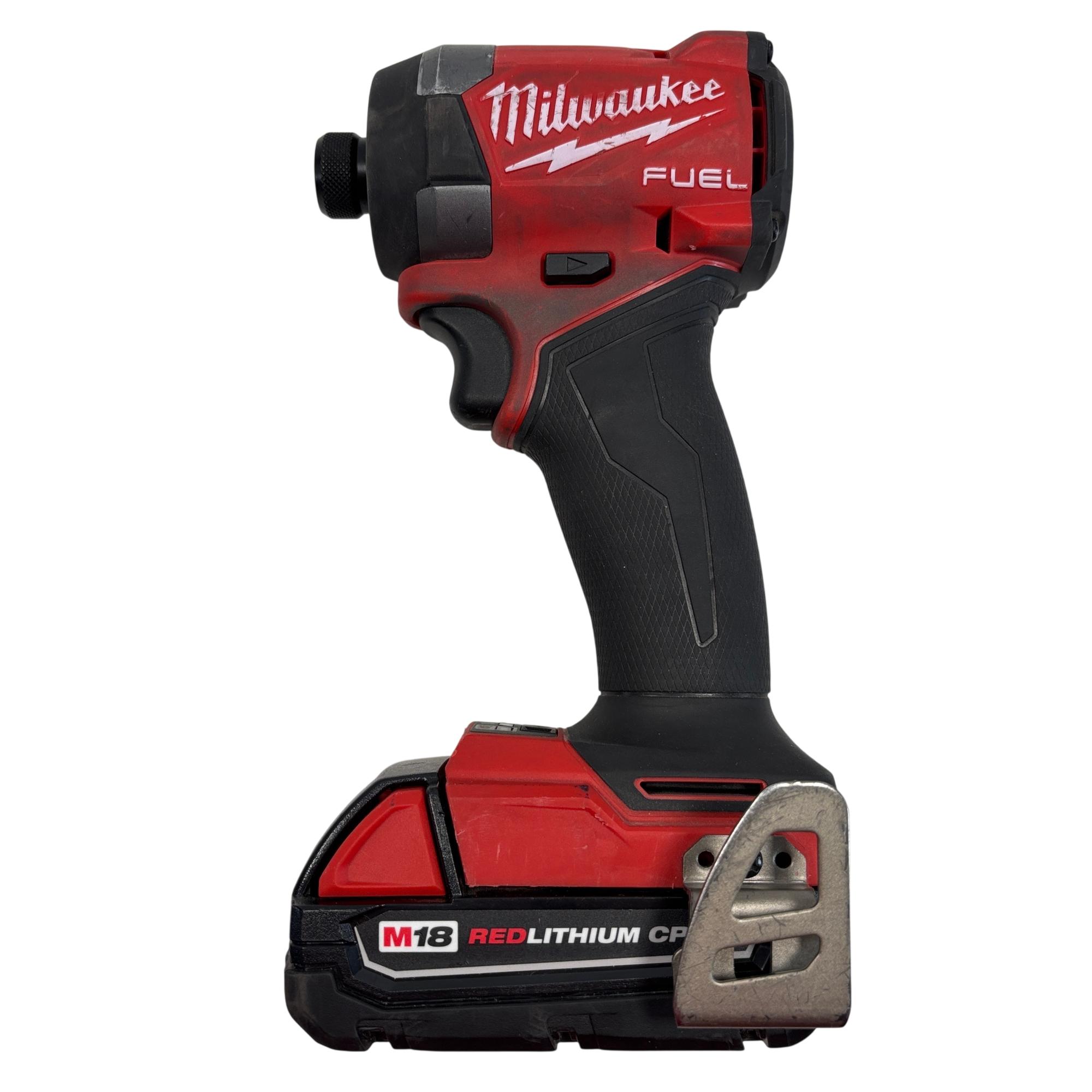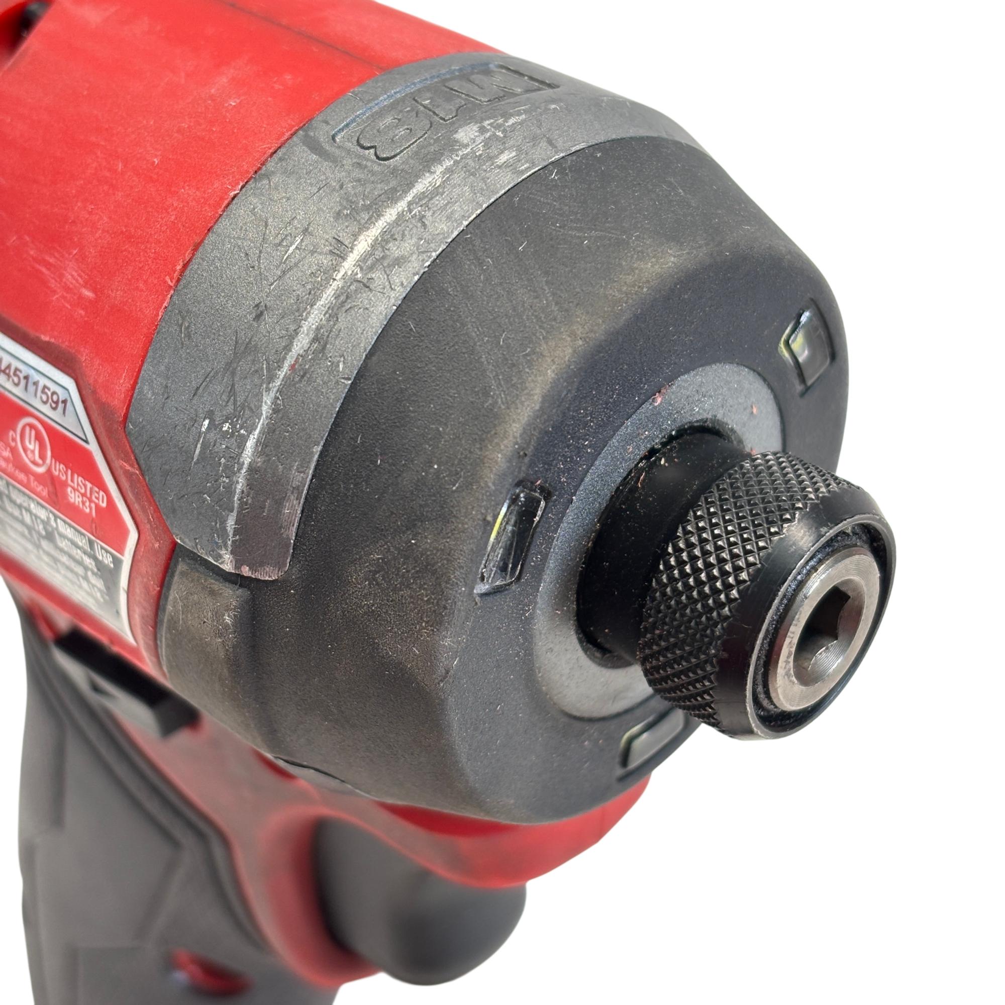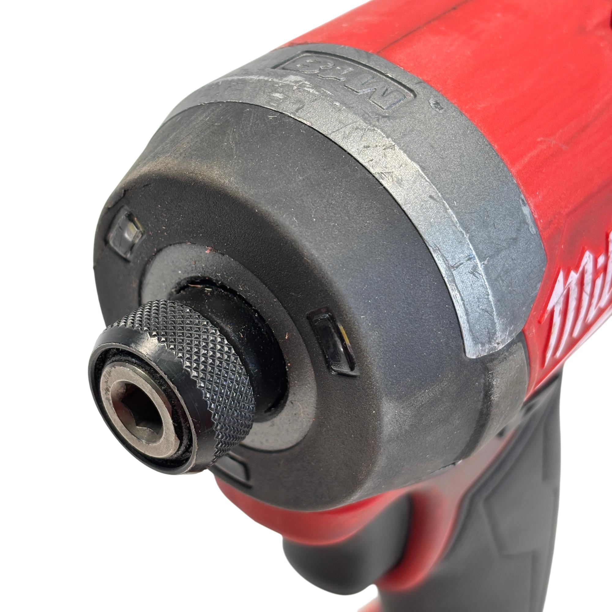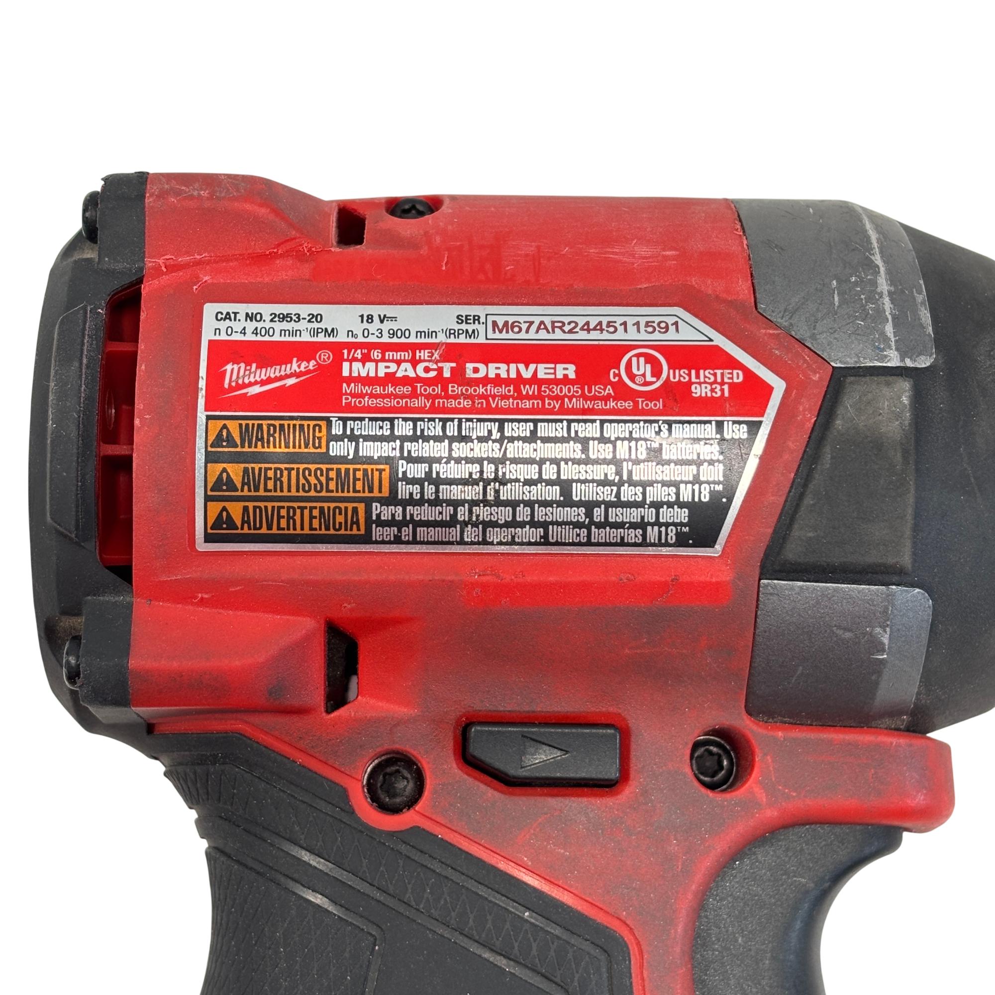 The Milwaukee 2953-20 M18 FUEL Brushless Cordless 1/4" Hex Impact Driver delivers high torque and efficient performance with a powerful 18V brushless motor. Designed for durability and precision, this impact driver features a 1/4" hex chuck, variable speed settings, and an ergonomic red and black design for comfortable use. It is engineered for professional applications requiring reliable fastening and drilling in tight spaces.