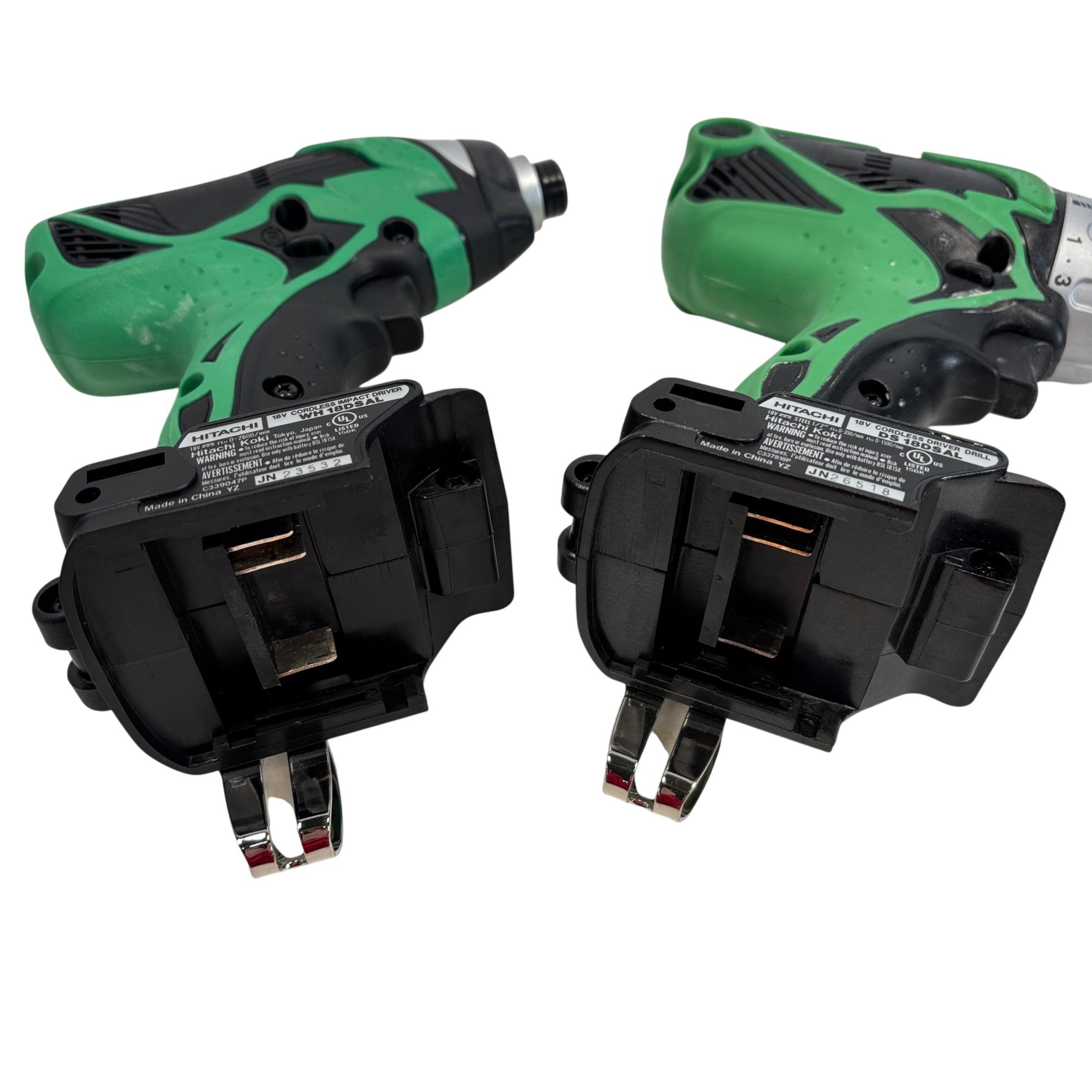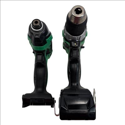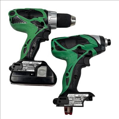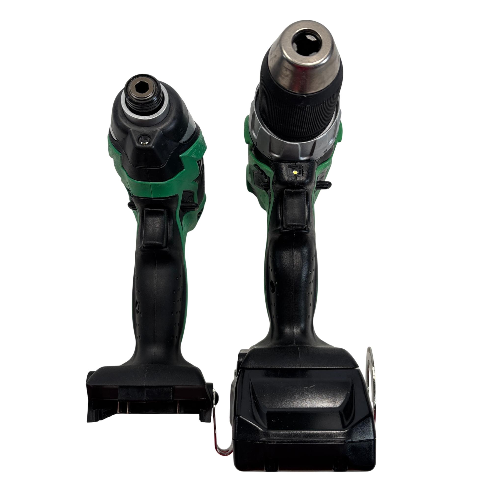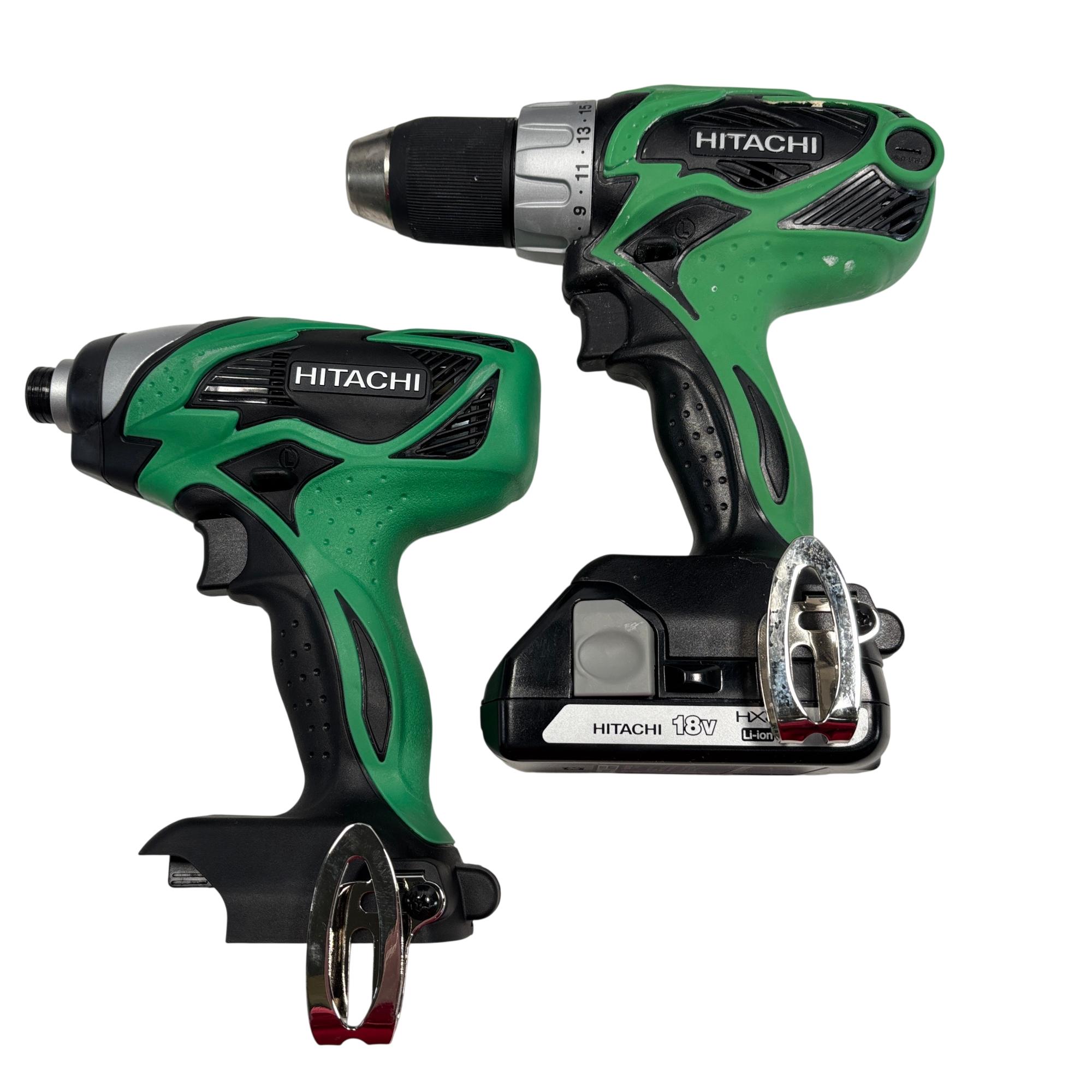 The Hitachi WH18DSAL/DS18DSAL 18V Cordless 1/4" Impact Driver and 1/2" Drill/Driver Kit delivers powerful performance with its 18-volt lithium-ion motors designed for efficient drilling and driving tasks. This green and black tool set features a compact design and ergonomic grips, making it ideal for both professional contractors and DIY enthusiasts needing reliable, cordless power tools for various applications.
