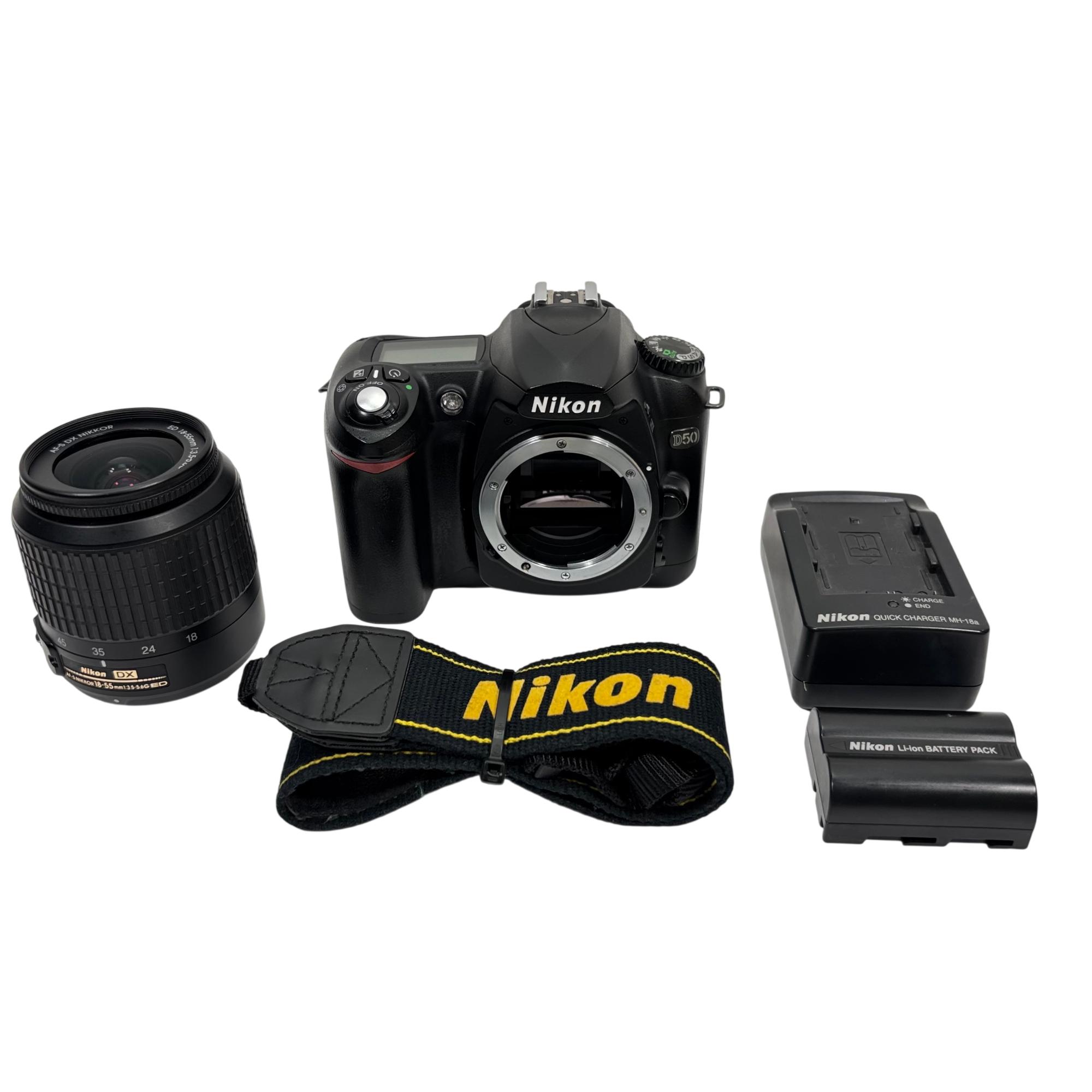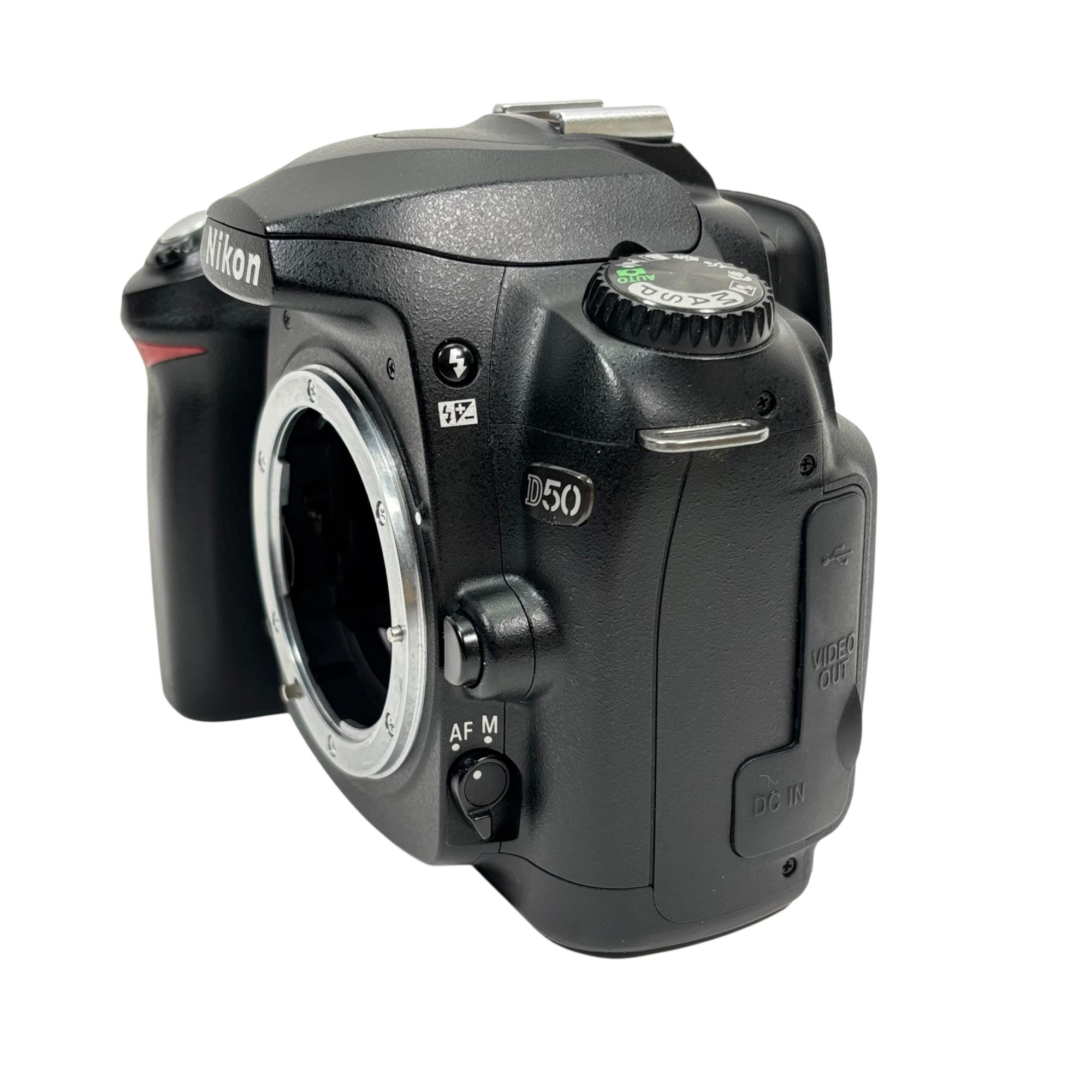 Nikon D50 Digital SLR Camera features a 6.1-megapixel DX-format sensor delivering high-quality images with vibrant detail and color accuracy. This DSLR camera offers interchangeable lens support with Nikon F-mount compatibility, making it suitable for a variety of photographic styles and conditions. Its ergonomic design includes easy-to-access controls and a robust build, ideal for both amateur and enthusiast photographers.