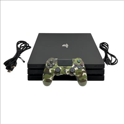 Sony PlayStation 4 Pro offers enhanced performance with a powerful GPU and increased processing power, delivering smooth 4K gaming and vibrant graphics. This model features a sleek black design complemented by a unique camouflage-patterned controller, providing an immersive gaming experience for enthusiasts.