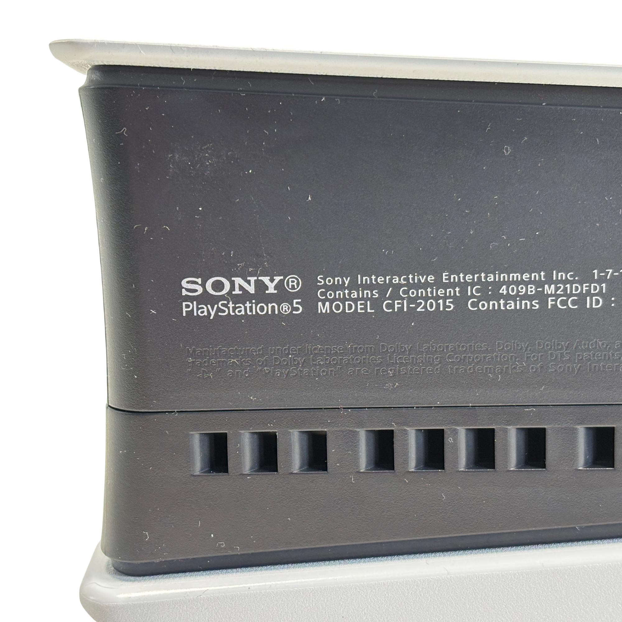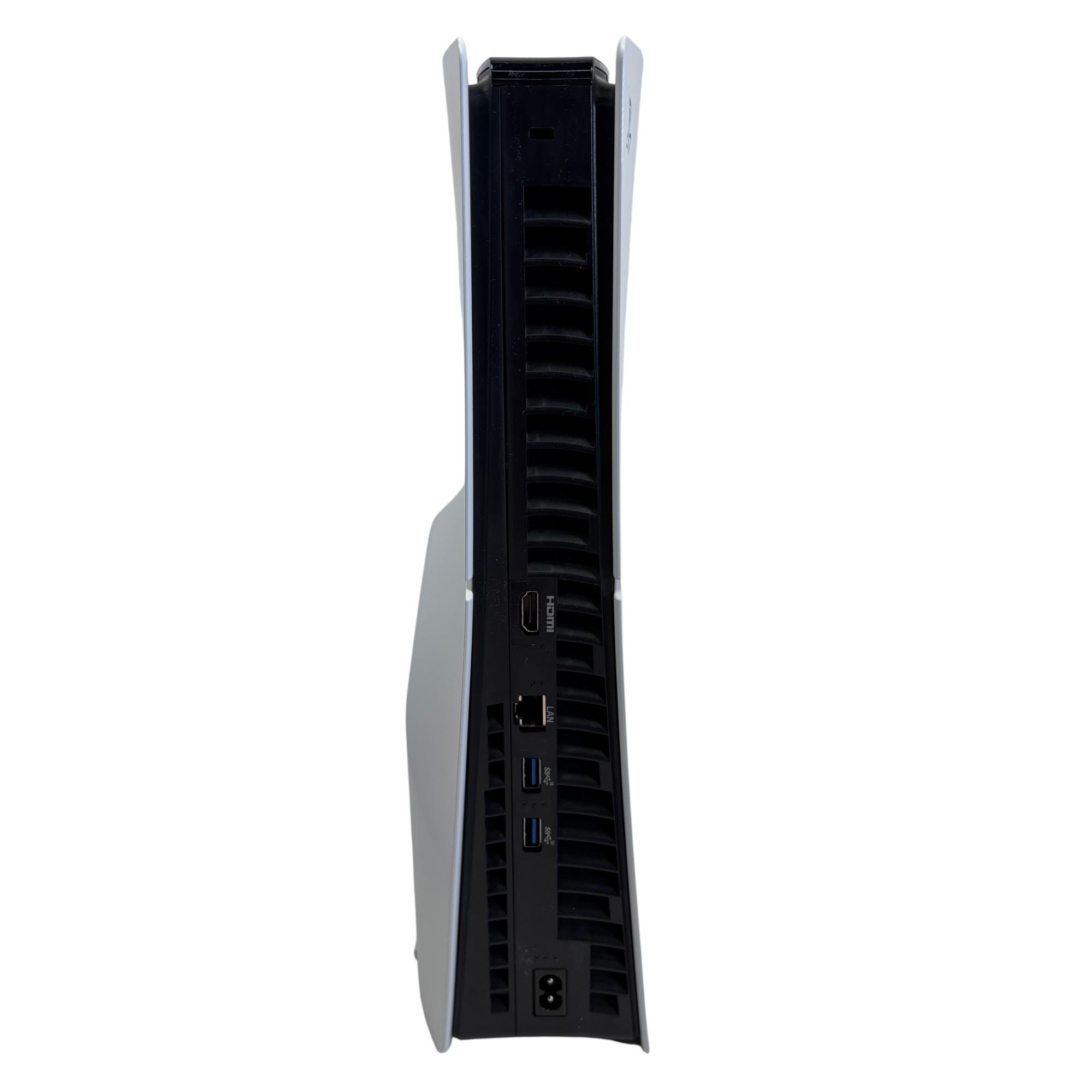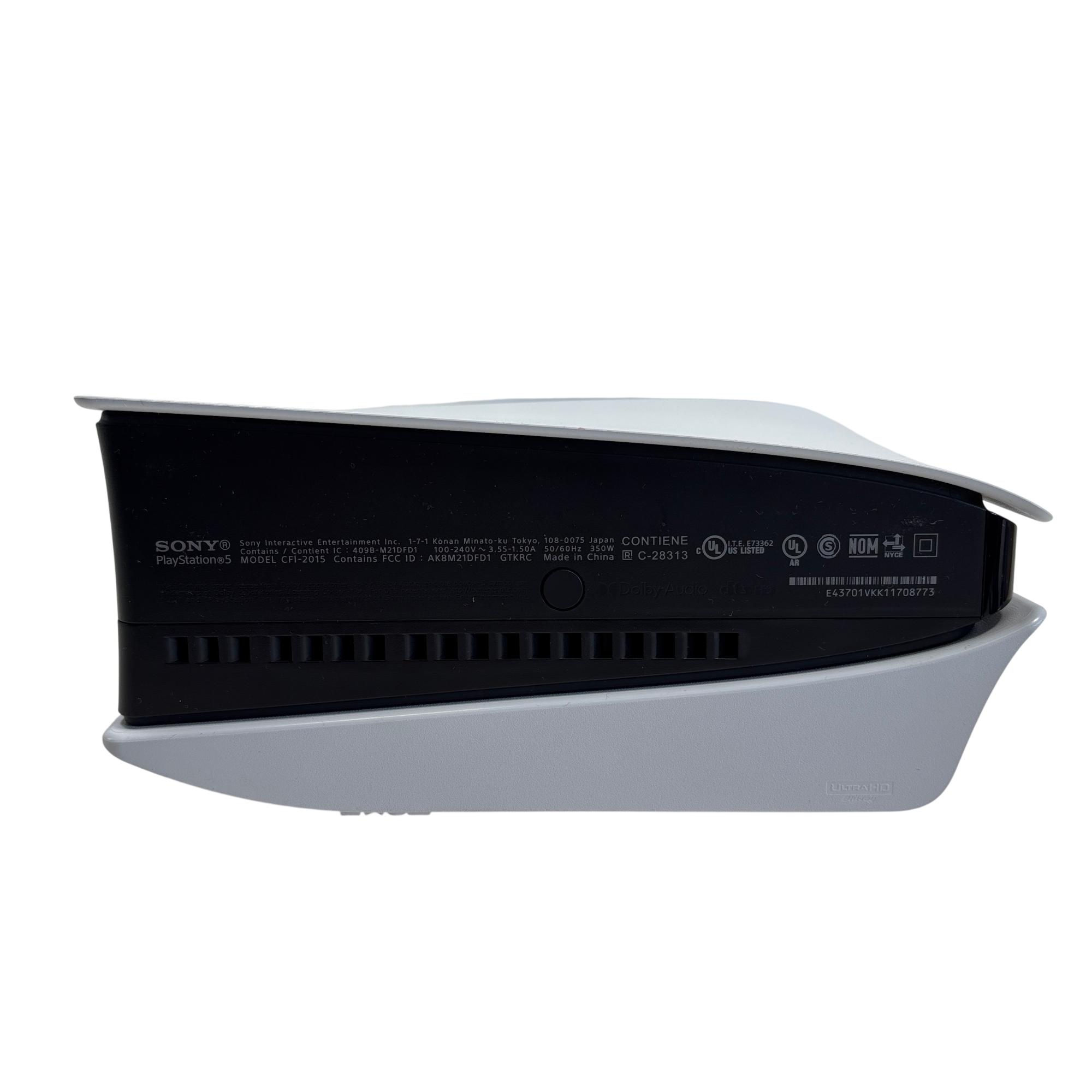 The Sony PlayStation 5 Slim Disc Edition CFI-2015 features a sleek white and black design with a powerful 1TB PCIe SSD for fast loading and smooth gameplay. This gaming console supports 4K resolution and includes multiple connectivity options such as HDMI and LAN ports, ensuring an immersive home entertainment experience.
