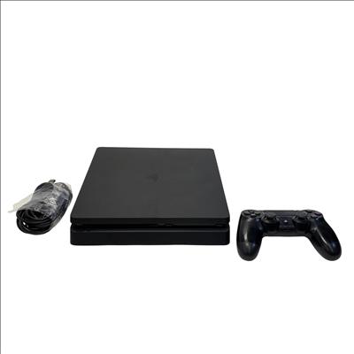 The Sony PlayStation 4 Slim Gaming Console with Controller features a sleek black design with a compact rectangular shape ideal for modern entertainment setups. It delivers immersive gaming experiences with its extensive 1TB storage capacity, supporting a wide library of popular game titles and multimedia applications. This model offers reliable performance and seamless connectivity options, making it a versatile choice for both casual and dedicated gamers.