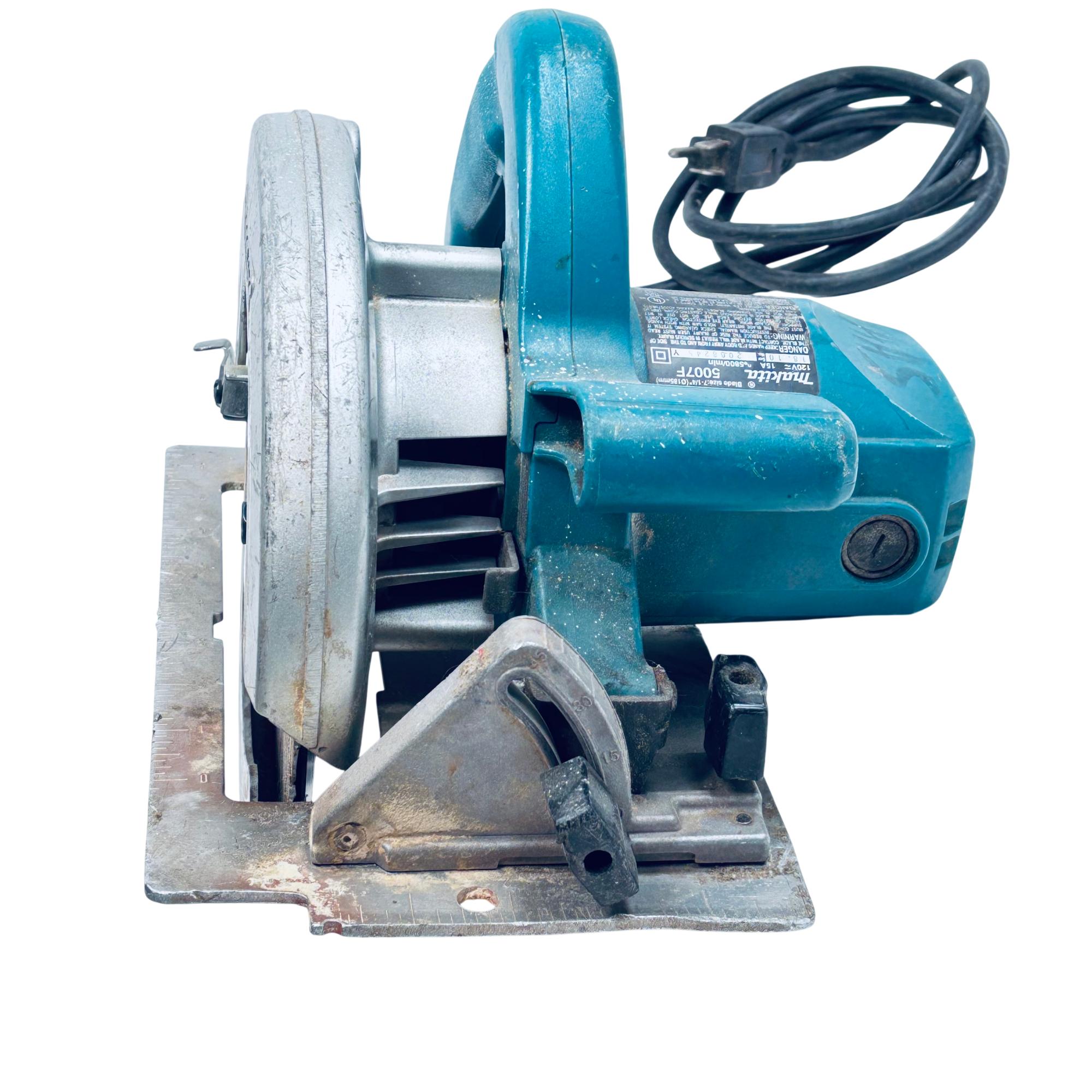 Makita 5007F 15 Amp 7-1/4 Inch Corded Circular Saw delivers powerful cutting performance with a robust 15 amp motor and a durable 7-1/4 inch blade. Designed for precision and efficiency, this corded saw features an ergonomic blue handle and integrated safety protections, making it ideal for various woodworking and construction tasks.