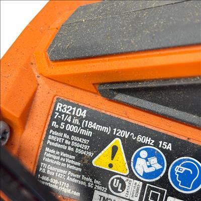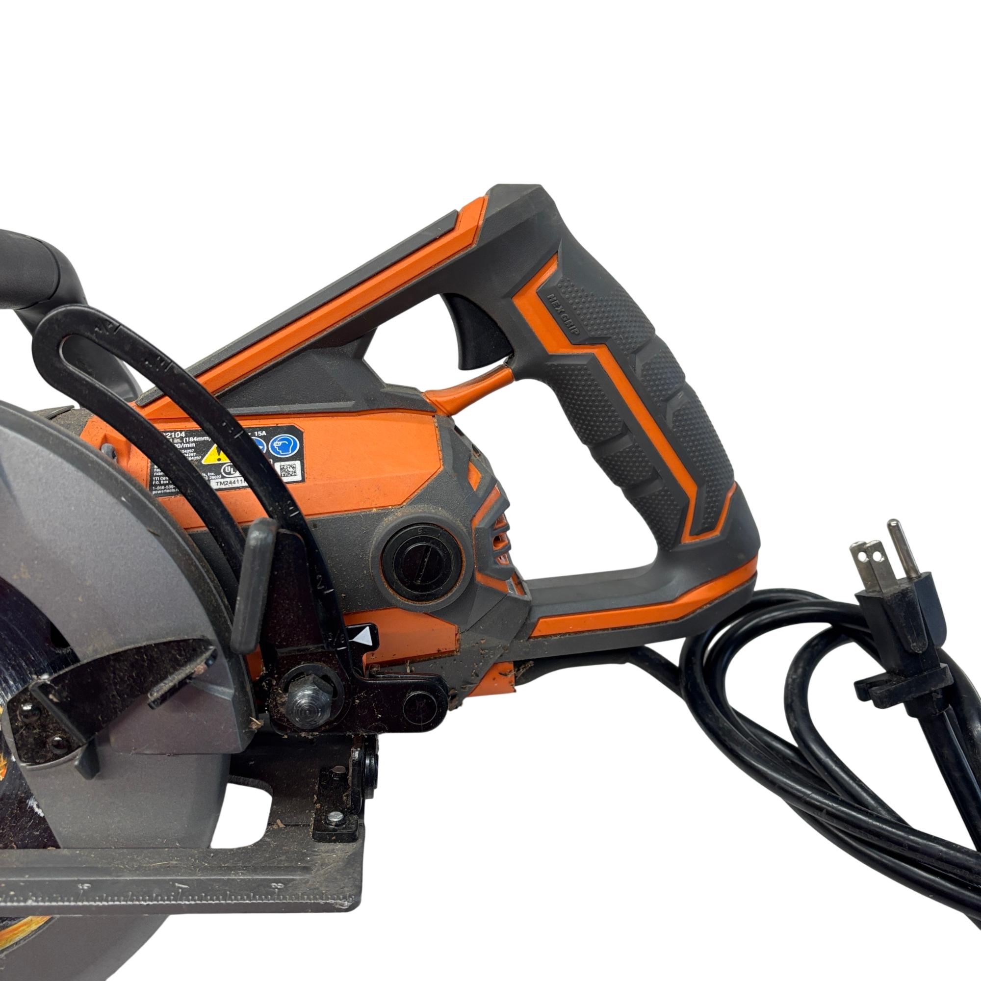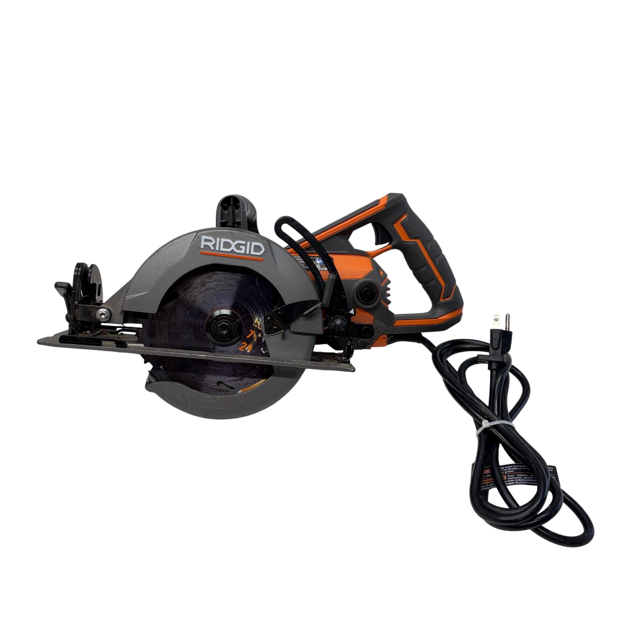 RIDGID R32104 7-1/4 in. THRUCOOL 15 Amp Corded Worm Drive Circular Saw delivers powerful performance with its 15 amp motor and durable worm drive mechanism. Designed for precision cutting, this corded circular saw features a 7-1/4 inch blade size suitable for a variety of woodcutting applications. Its ergonomic handle and robust construction ensure reliable handling and long-lasting use on demanding job sites.