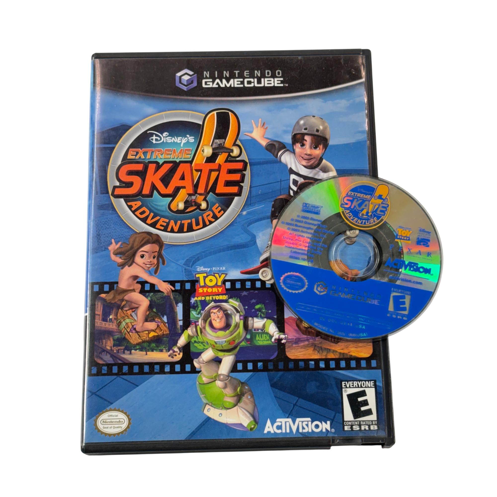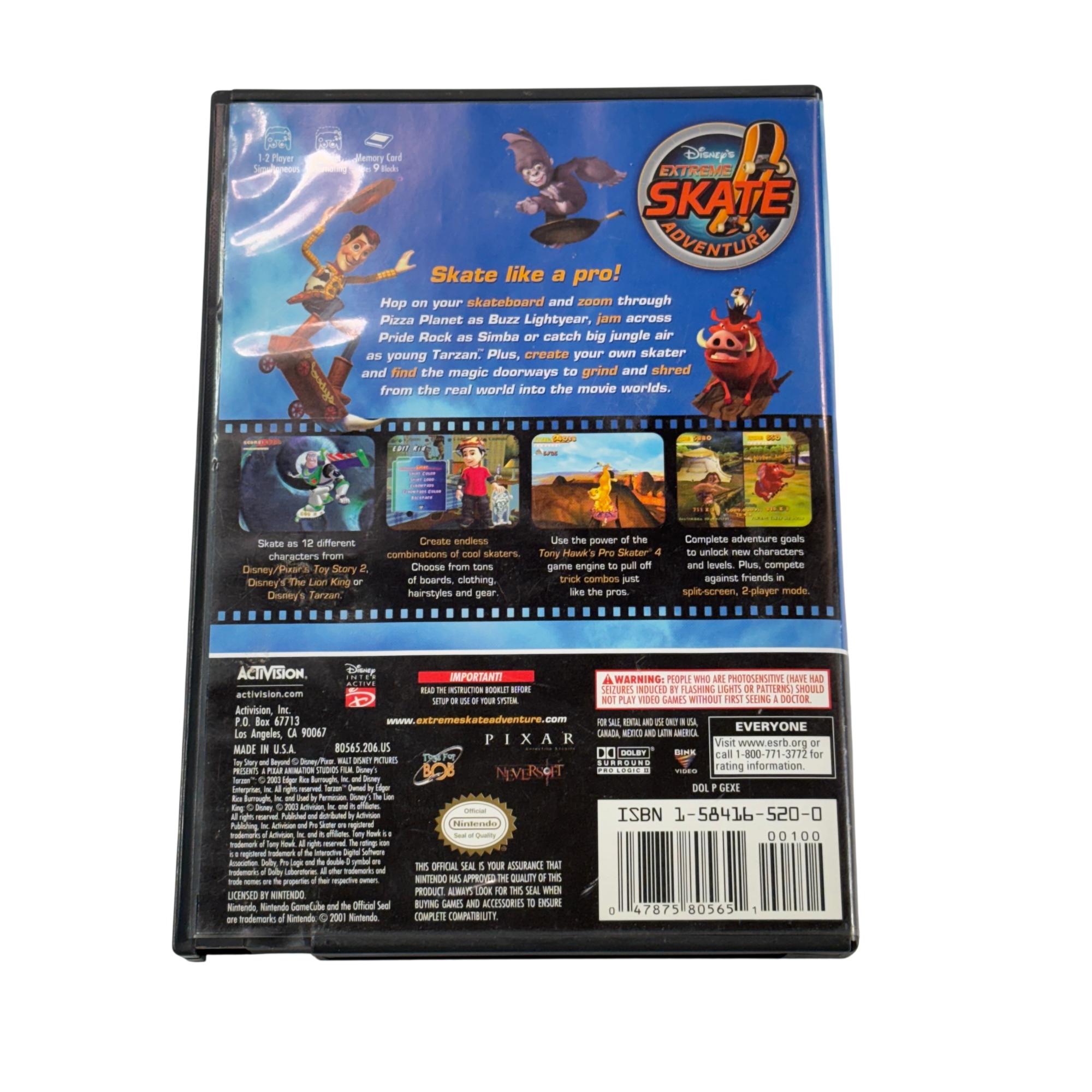Disneys Extreme Skate Adventure for Nintendo GameCube offers an exciting skateboarding experience featuring beloved Disney and Pixar characters such as those from Toy Story 2, The Lion King, and Tarzan. Players can perform trick combos, customize their skaters with various boards, clothing, and gear, and explore dynamic levels inspired by popular movie worlds in both single-player and split-screen two-player modes. This game combines classic skateboarding gameplay with immersive Disney-themed environments for fans of all ages.