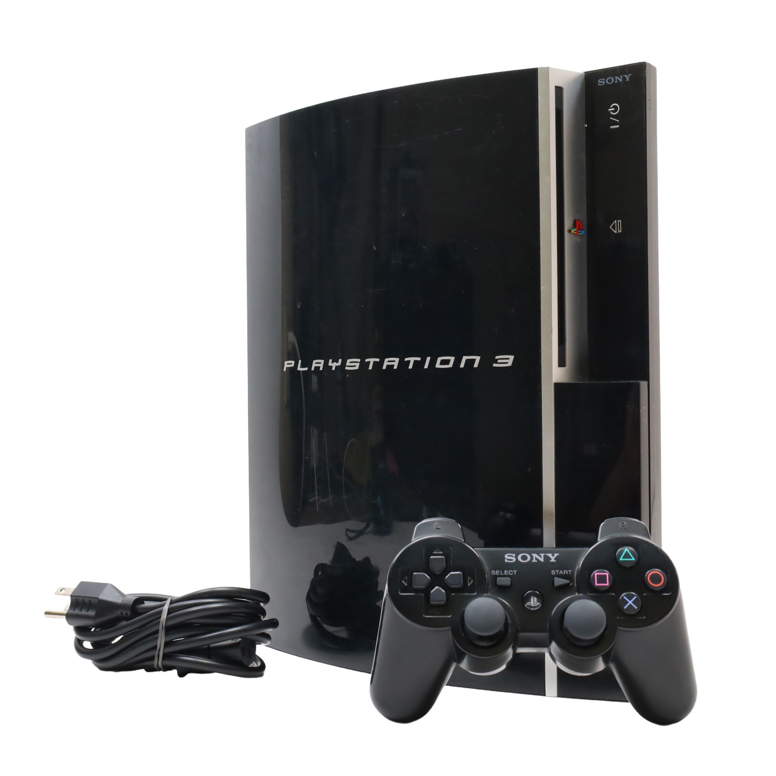 A video game console featuring the Cell Broadband Engine processor and RSX graphics processing unit, paired with 256MB of XDR main RAM and 256MB of GDDR3 VRAM. It includes an 80GB 2.5” Serial ATA hard drive for game and media storage. Connectivity options include two USB 2.0 ports, a MemoryStick/SD/CompactFlash slot, and Ethernet supporting 10BASE-T, 100BASE-TX, and 1000BASE-T standards, as well as Bluetooth 2.0 (EDR). This console supports display resolutions up to 1080p and is designed to play content from Blu-ray discs.