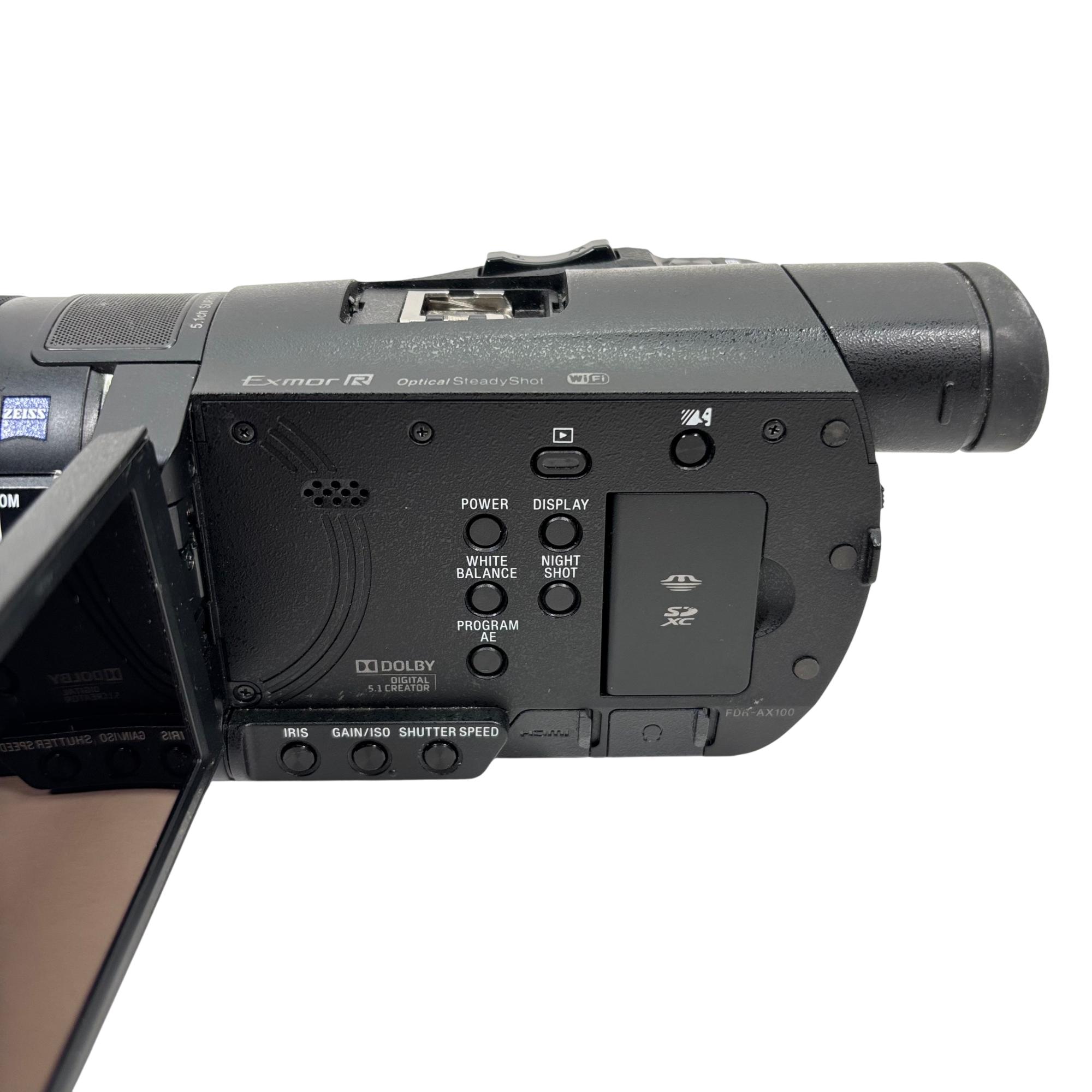 Sony FDR-AX100 4K Ultra HD Handycam Camcorder delivers professional-quality video with a 1.0-type Exmor R CMOS sensor and ZEISS Vario-Sonnar T* lens for stunning clarity and color accuracy. It features Optical SteadyShot image stabilization and advanced manual controls, making it ideal for both enthusiasts and videographers seeking high-resolution 4K recording in a compact design.