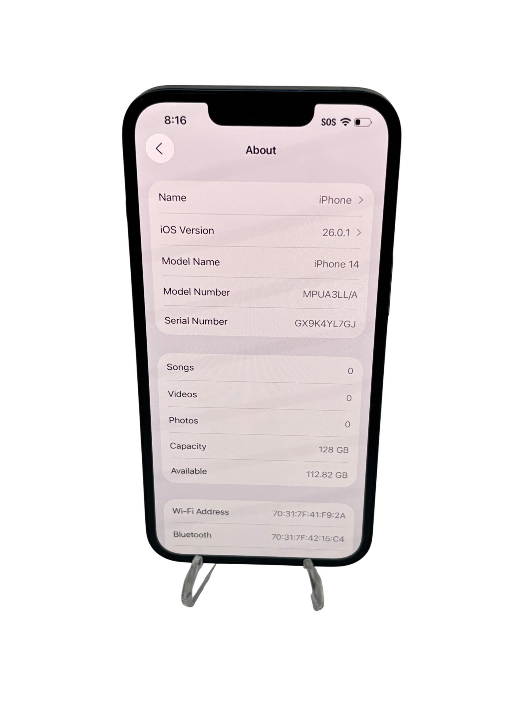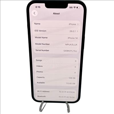Features a 6.1-inch Super Retina XDR display and 128GB of storage, available in a Starlight finish. It boasts an advanced dual-camera system for exceptional photos in various lighting conditions, with Cinematic mode supporting 4K Dolby Vision up to 30 fps and an Action mode for stable videos. Safety features include Emergency SOS via satellite and Crash Detection. Powered by the A15 Bionic chip with a 5-core GPU, it supports superfast 5G connectivity. The phone also includes industry-leading durability with Ceramic Shield and water resistance, running on iOS 16 for enhanced personalization and communication.