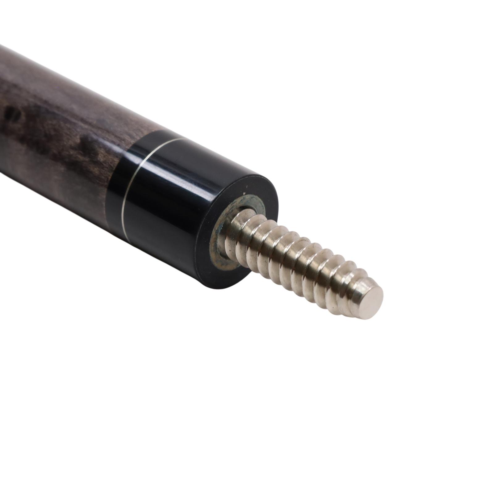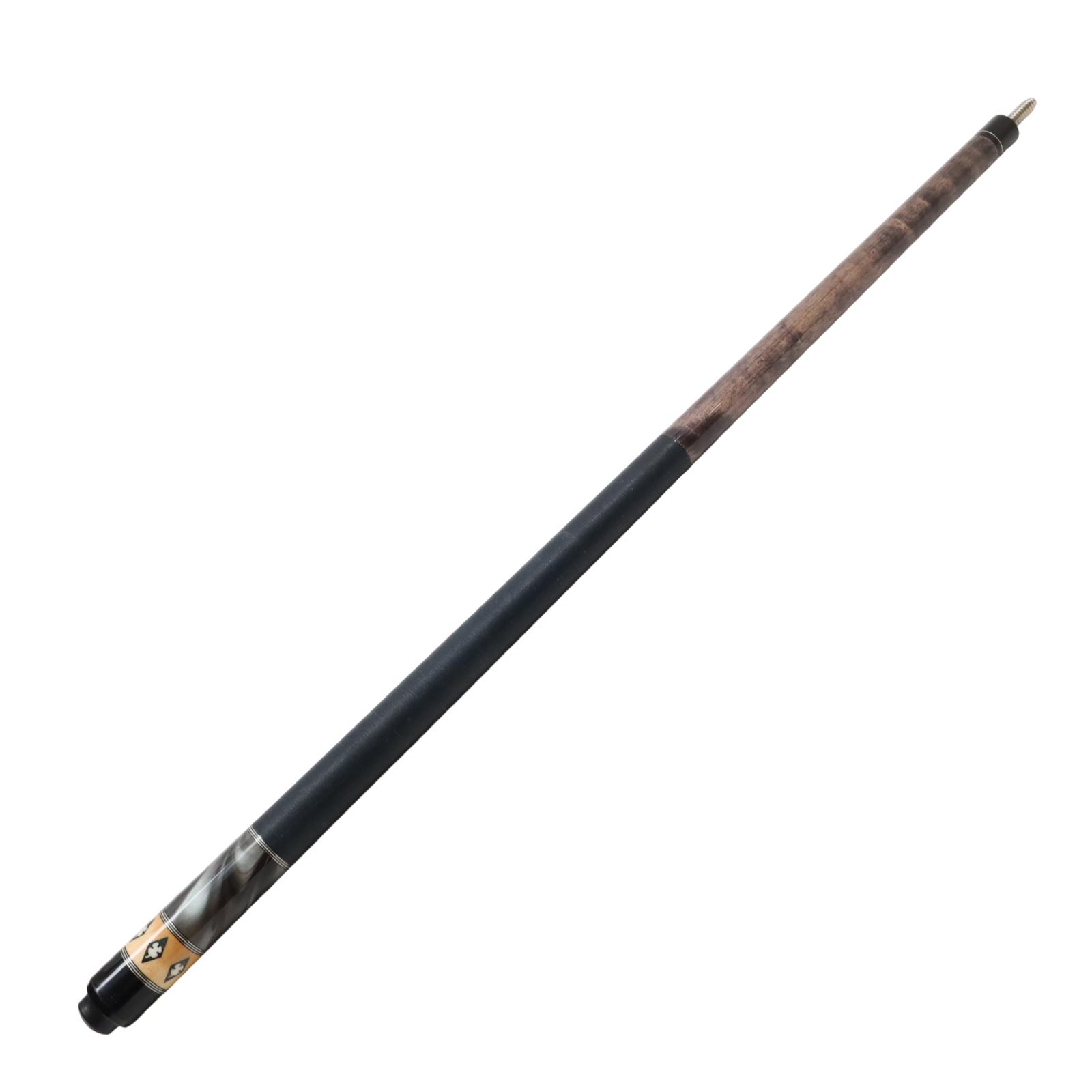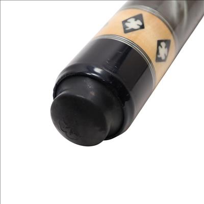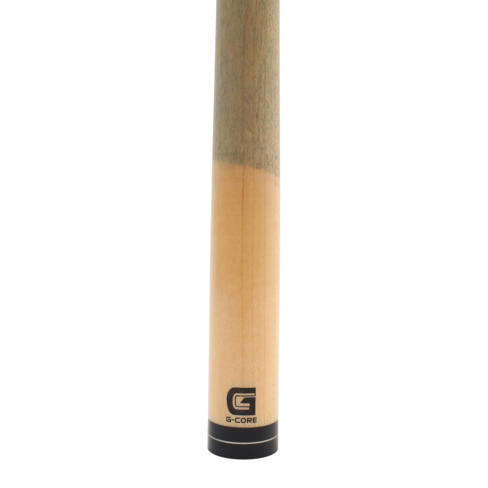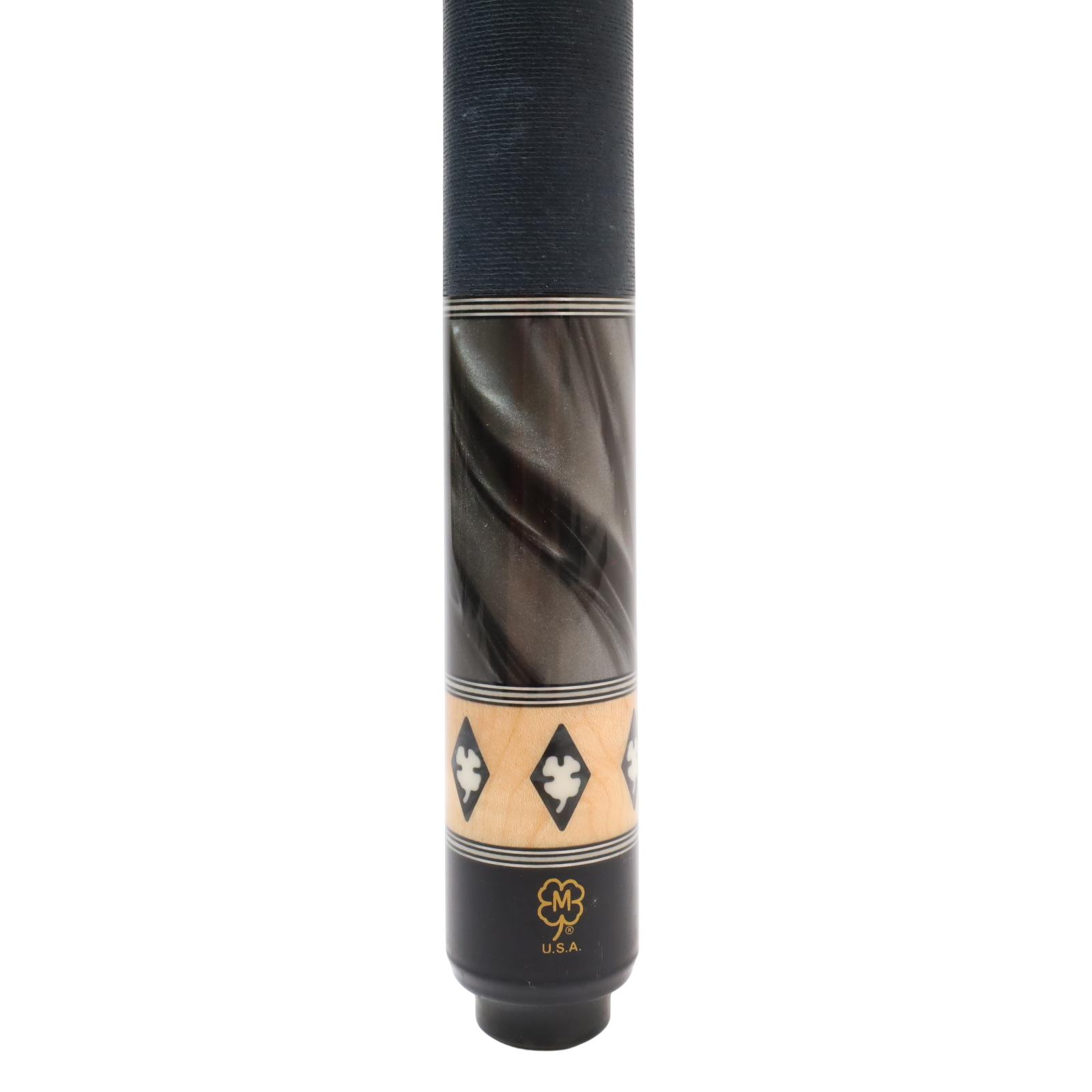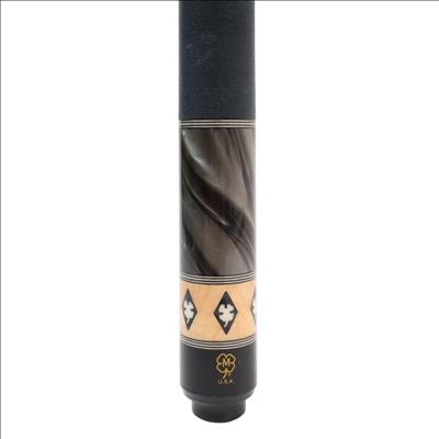 A two-piece design featuring a birdseye maple forearm finished with a light grey stain and accented by a grey pearl sleeve. Six custom white urethane clover and grey pearl diamond inlays are set within a birdseye maple ring, and the cue is finished with a genuine Irish linen wrap. It utilizes a high-performance G-Core shaft incorporating a triple-layer carbon fiber core extending seven inches to enhance stability, control, and radial consistency while reducing vibration. The cue features a 3/8”-10 joint and is tipped with a Navigator Black tip constructed from multiple layers of Japanese pigskin leather designed for adaptability and consistent performance.