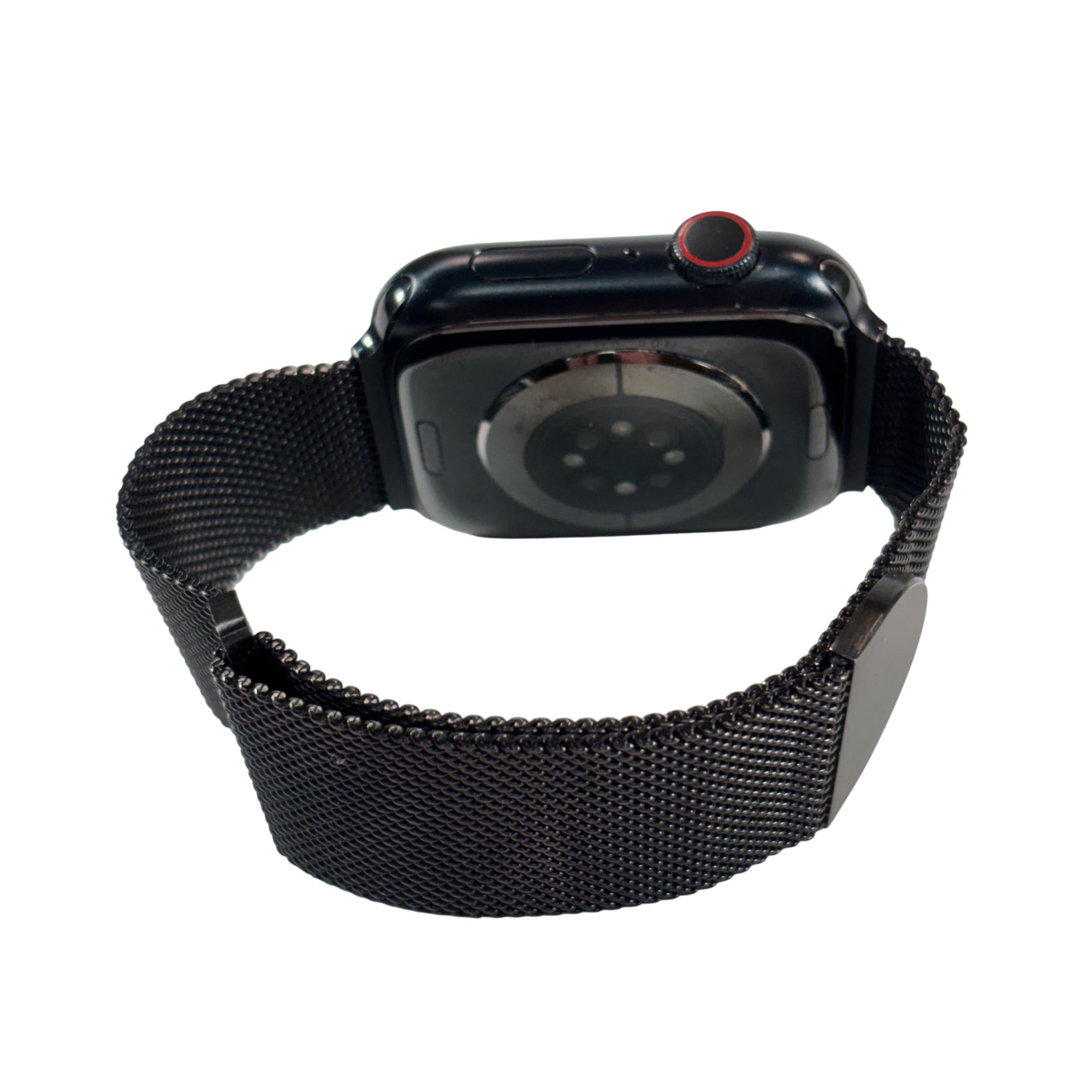 Apple Watch Series 8 Cellular in the 45mm Midnight aluminum case combines a large always-on OLED display with advanced health, safety, and connectivity features. It supports cellular connectivity for internet access away from a paired phone while remaining designed to work alongside an iPhone for full functionality. Enhanced sensors enable expanded health monitoring, precise motion tracking, and crash detection, while the responsive touch display and haptic digital crown provide intuitive control. With built-in storage and a sleek, durable design, it delivers a powerful smartwatch experience for everyday use.