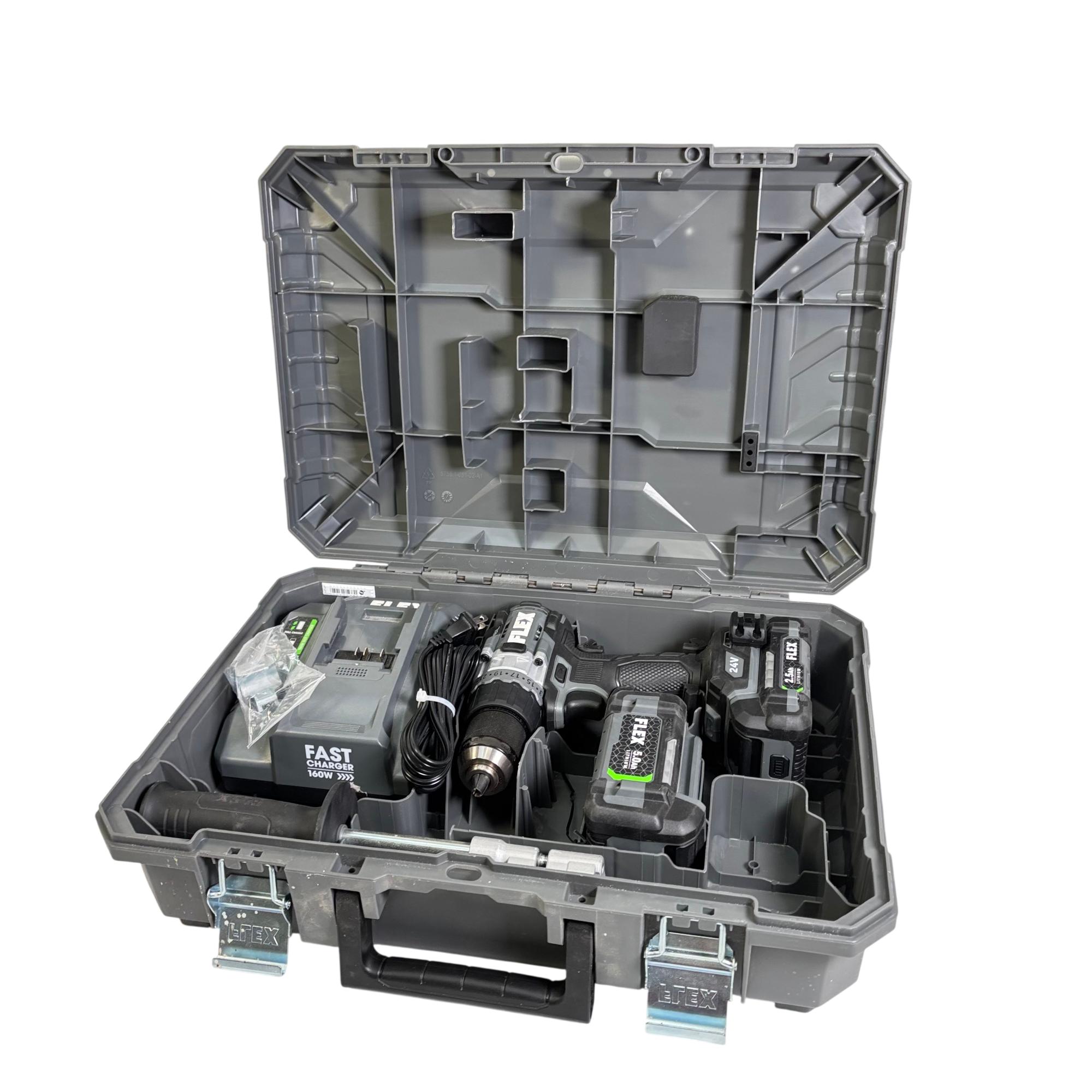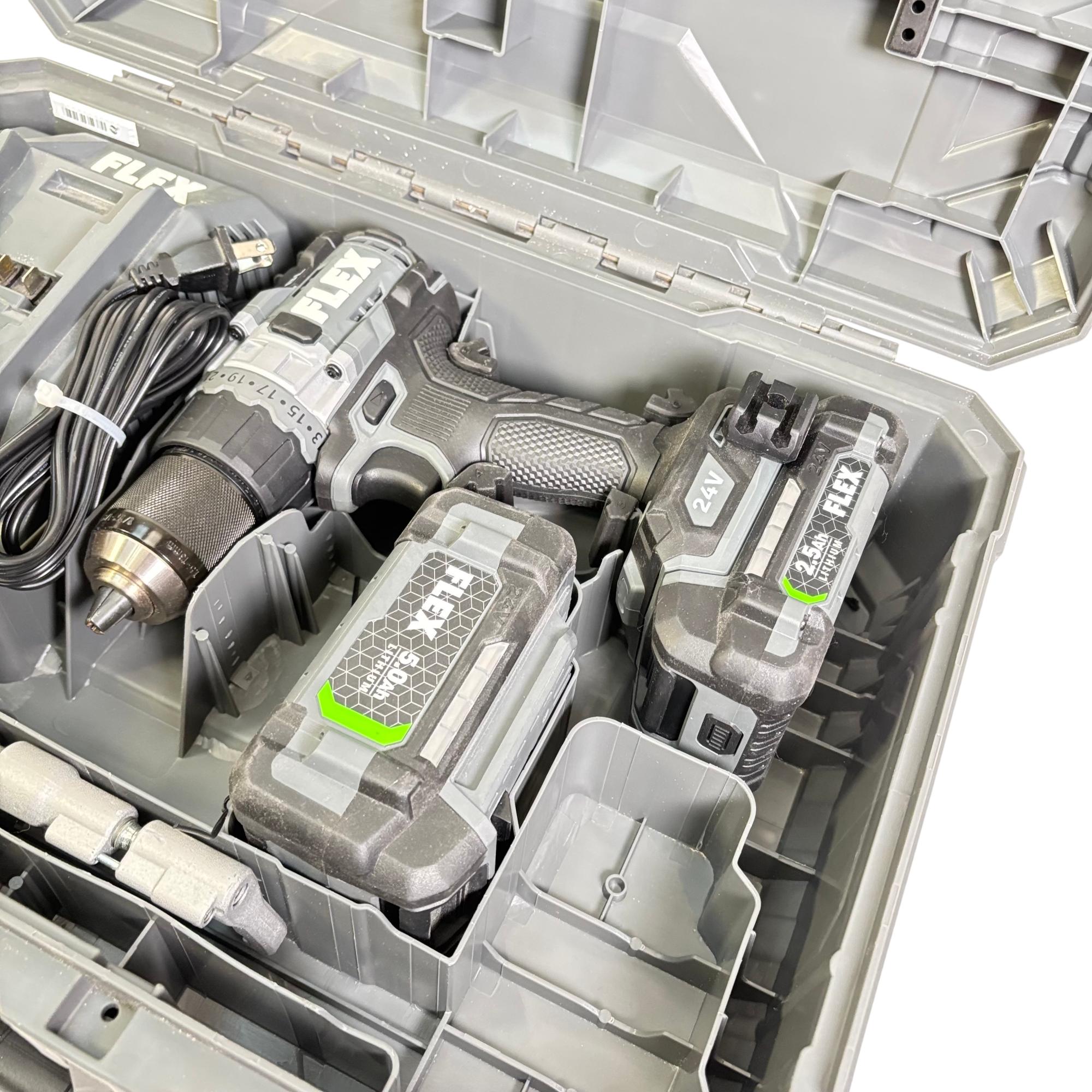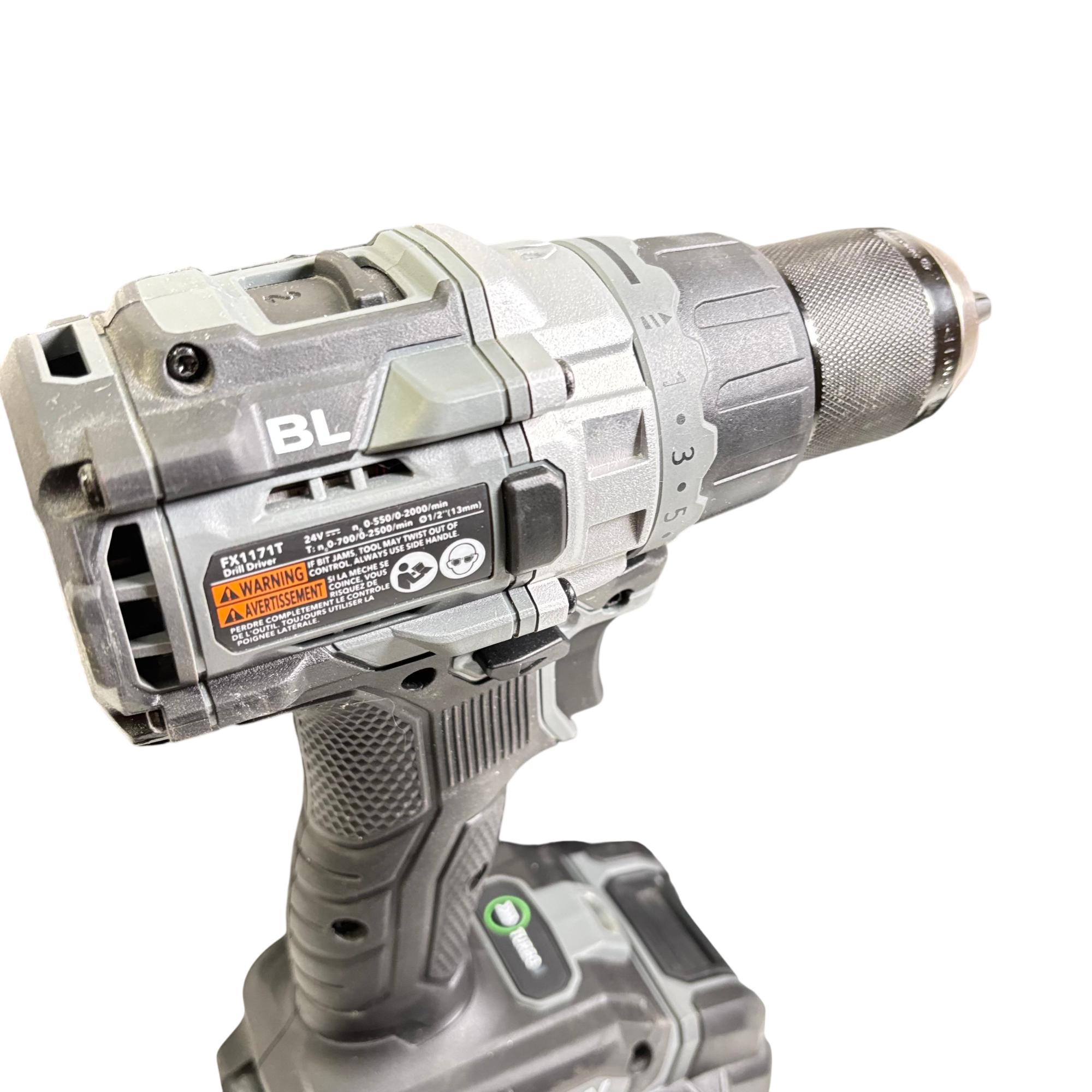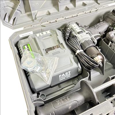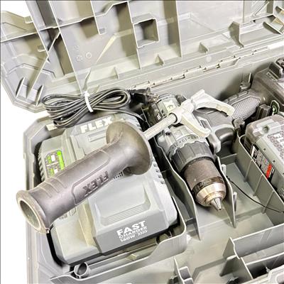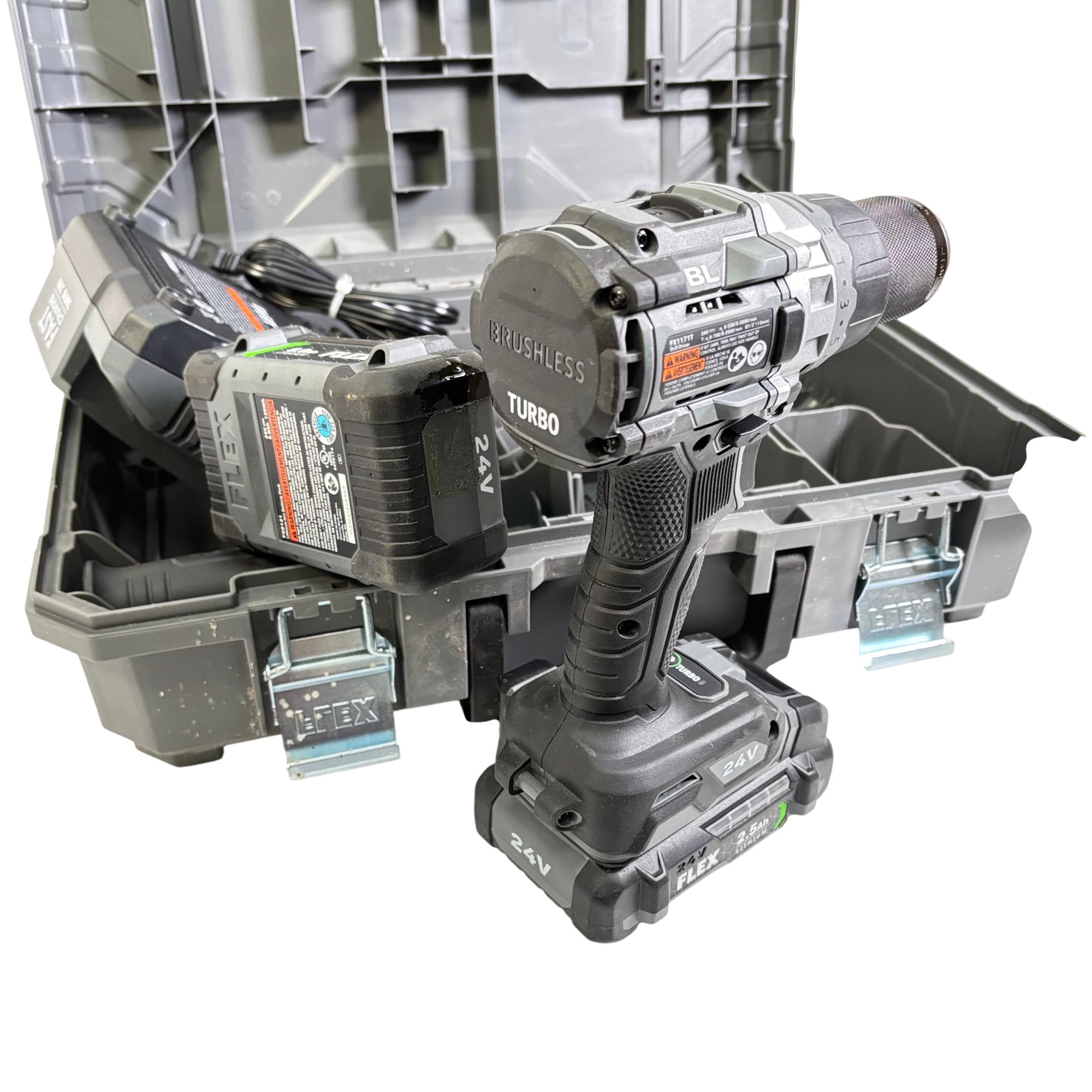 FLEX FX1171T 24V Brushless 1/2-Inch Drill/Driver Combo Kit features a powerful brushless motor designed for enhanced efficiency and longer tool life. This 24-volt cordless drill/driver offers variable speed control and keyless chuck for versatile performance, making it suitable for both professional and DIY applications. It is engineered for durability and optimized for precision in various drilling and driving tasks.