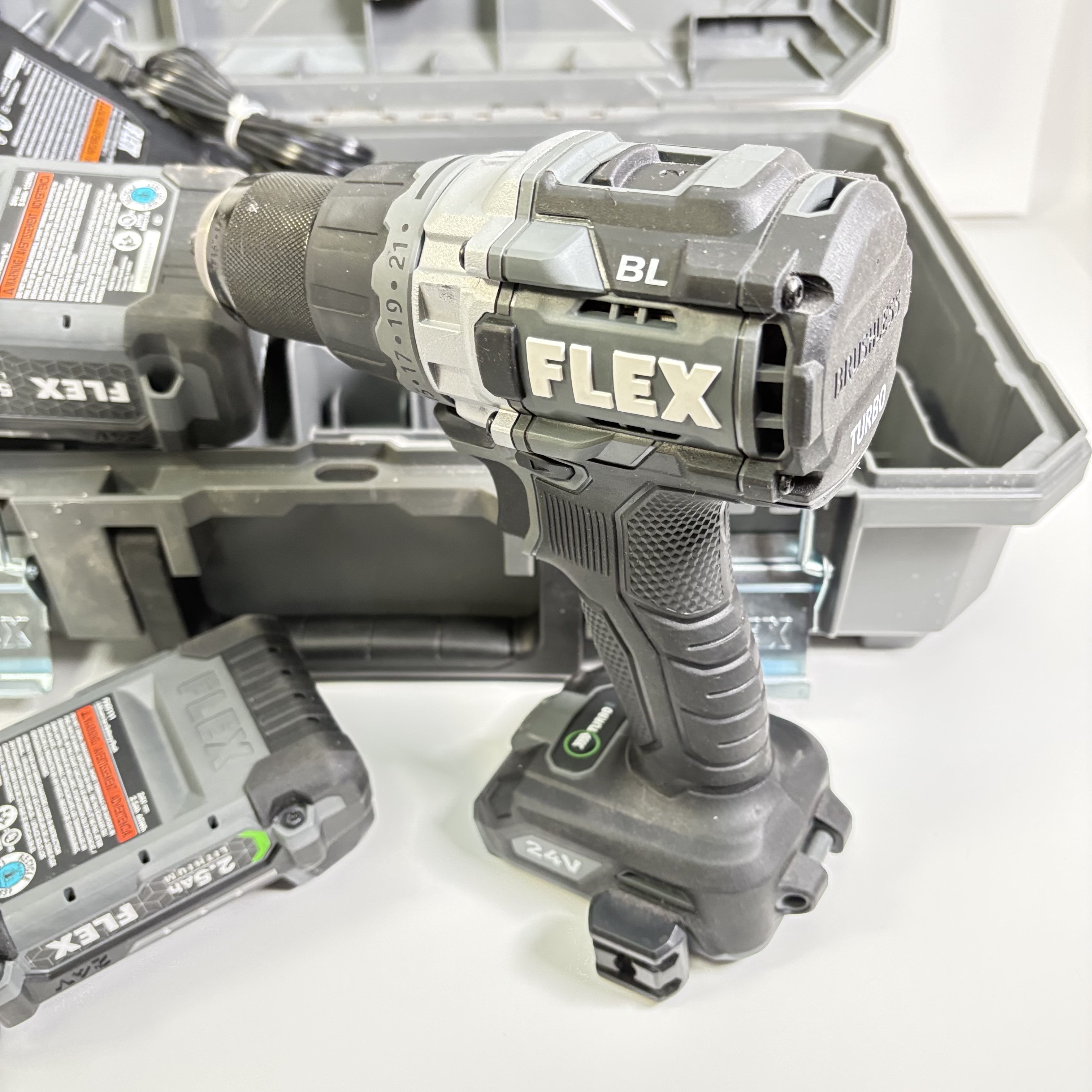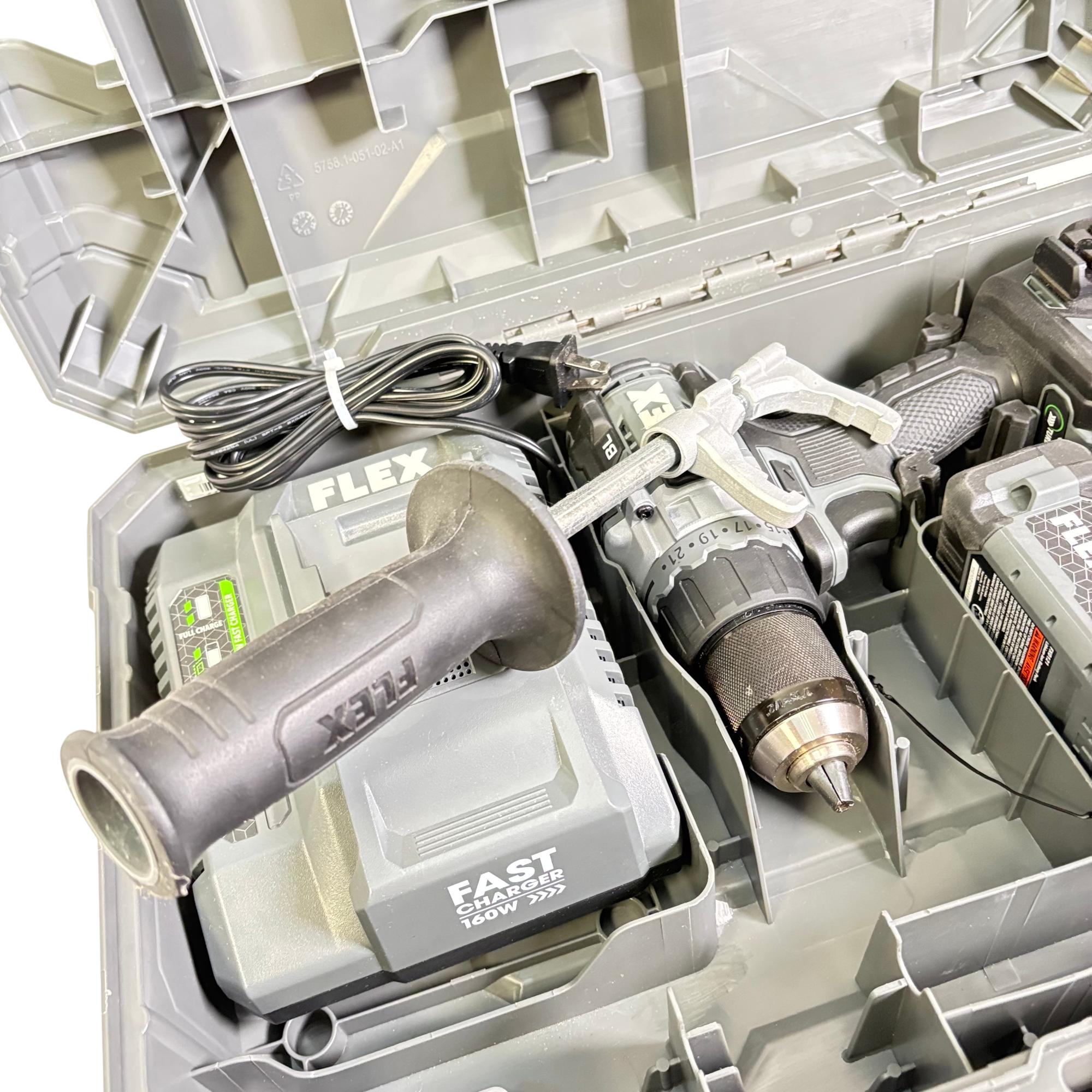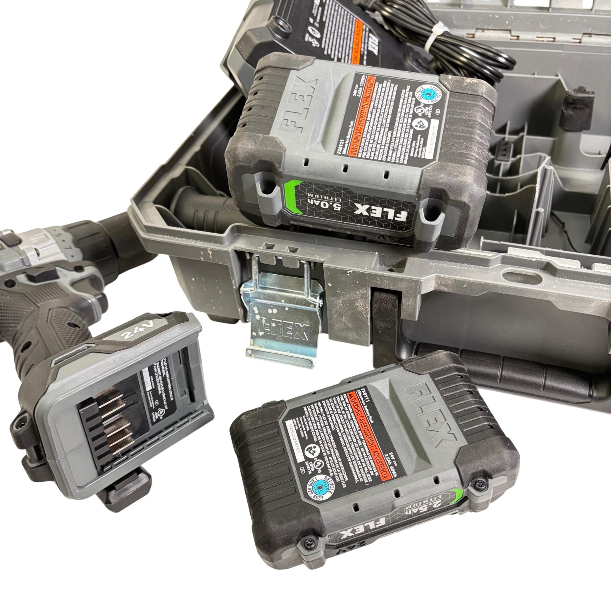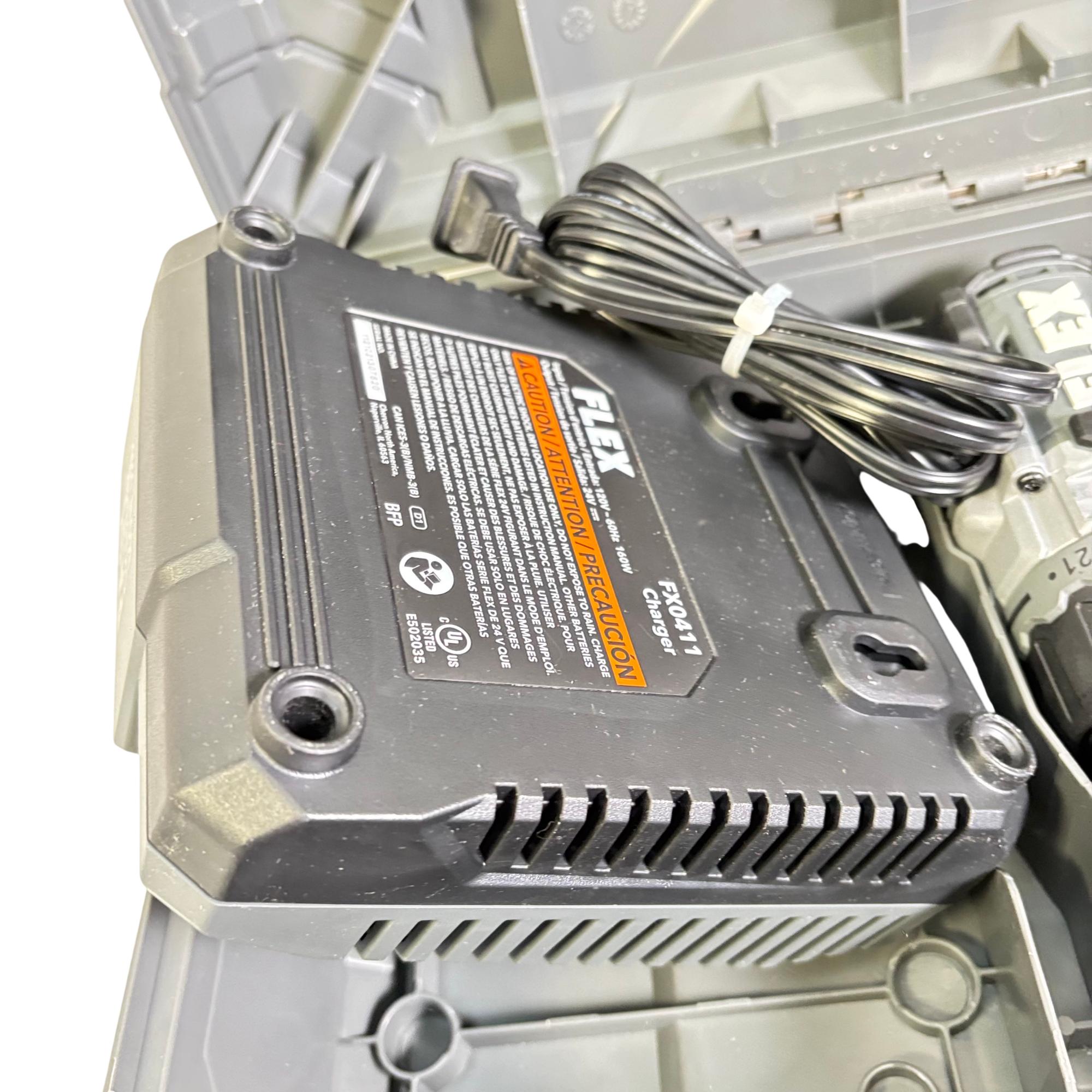 FLEX FX1171T 24V Brushless 1/2-Inch Drill/Driver Combo Kit features a powerful brushless motor designed for enhanced efficiency and longer tool life. This 24-volt cordless drill/driver offers variable speed control and keyless chuck for versatile performance, making it suitable for both professional and DIY applications. It is engineered for durability and optimized for precision in various drilling and driving tasks.
