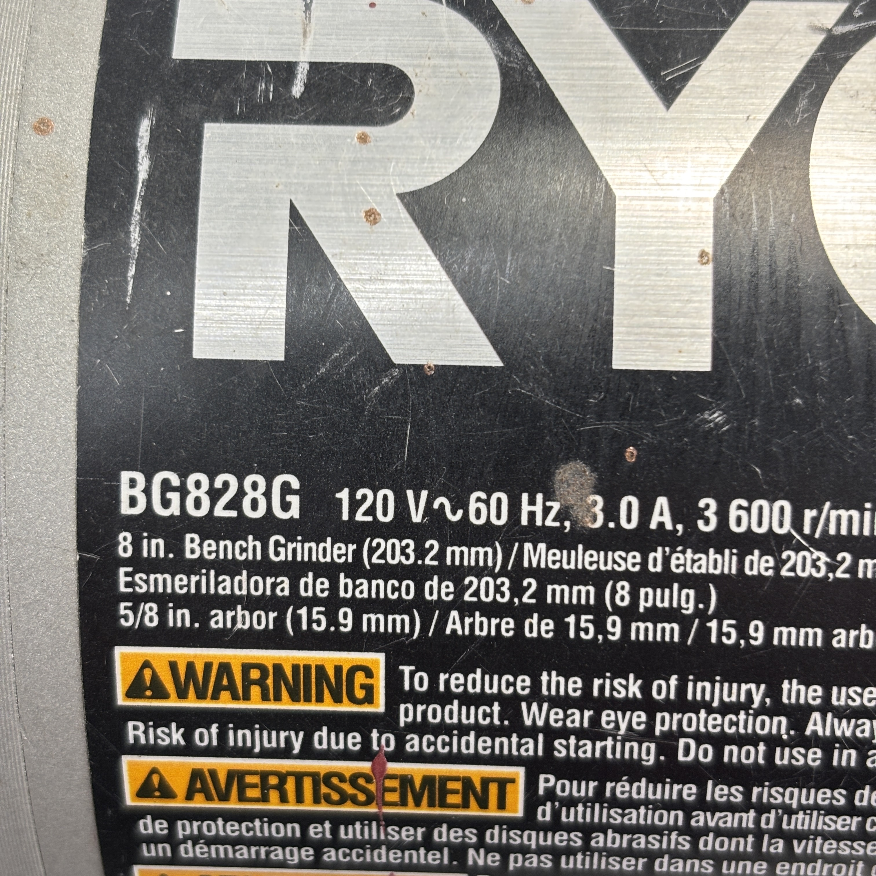 Ryobi 8" Bench Grinder 3A 3600 RPM BG828G