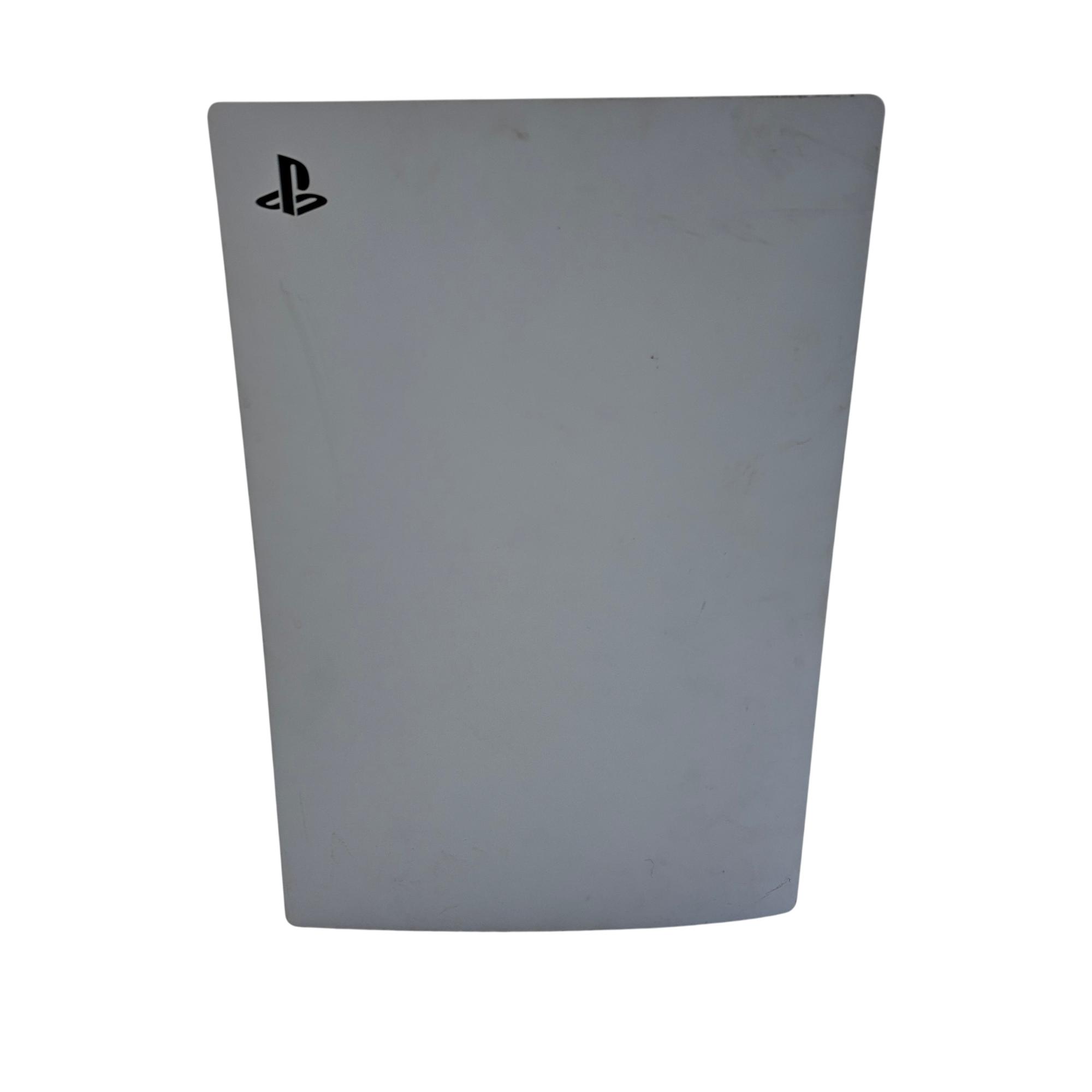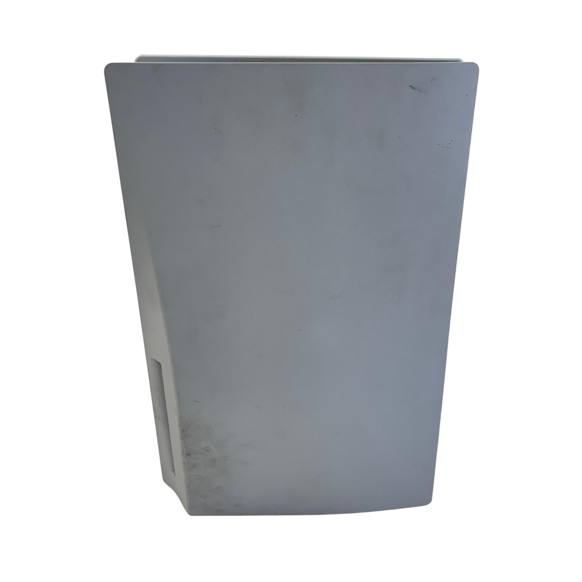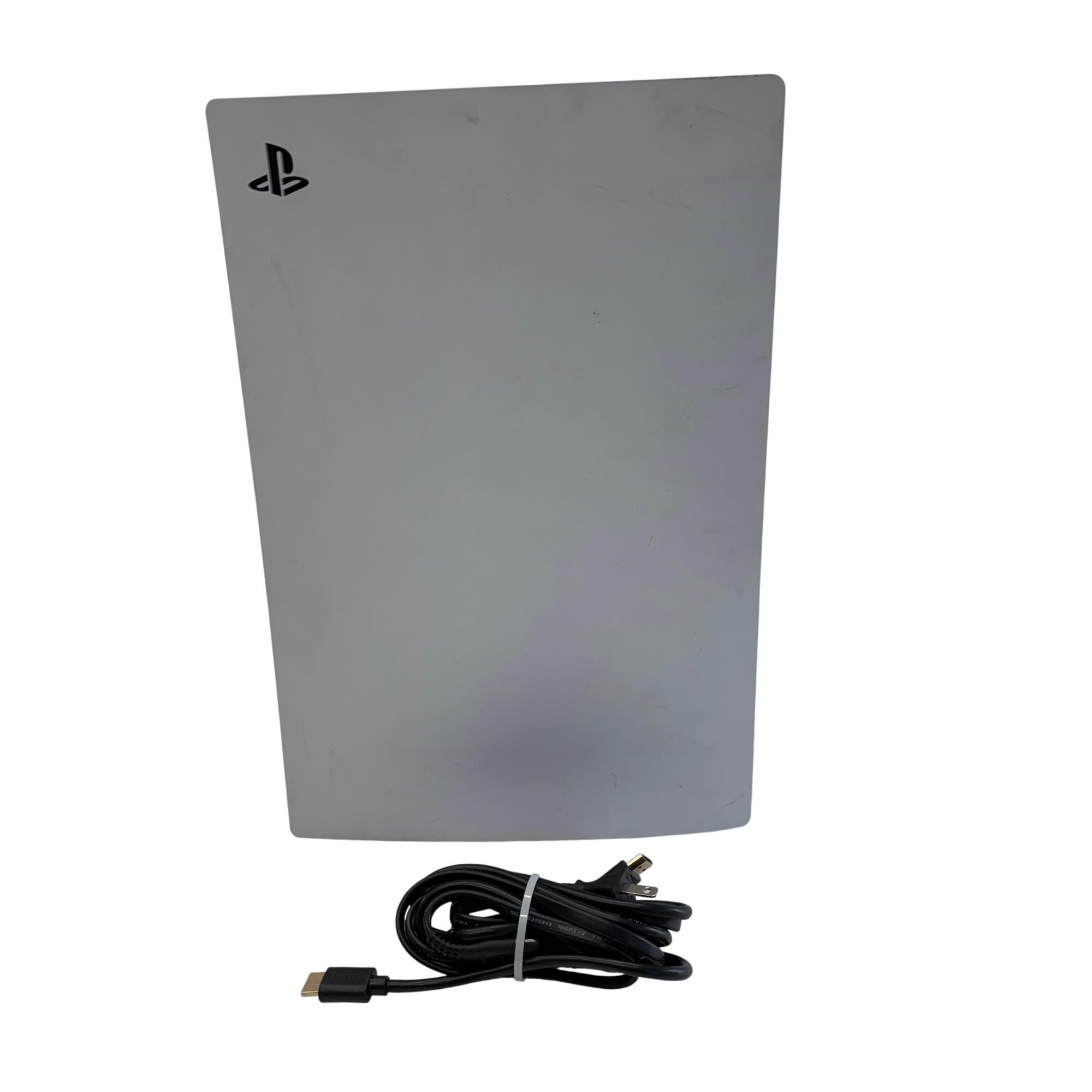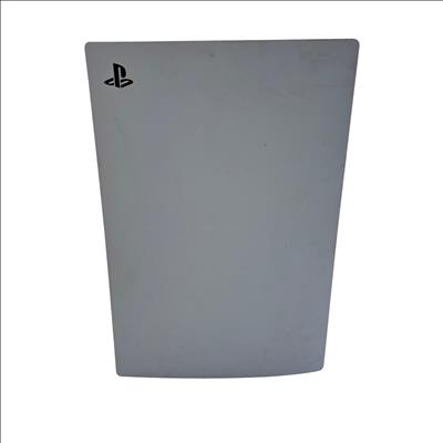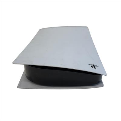Sony PlayStation 5 Disc Edition Console, Model CFI-1215A, features a sleek black and white design complementing modern gaming setups. This version includes a built-in disc drive for physical game media and supports 4K graphics for an immersive gaming experience. Its design incorporates a distinctive rectangular form with a streamlined structure and subtle branding details.