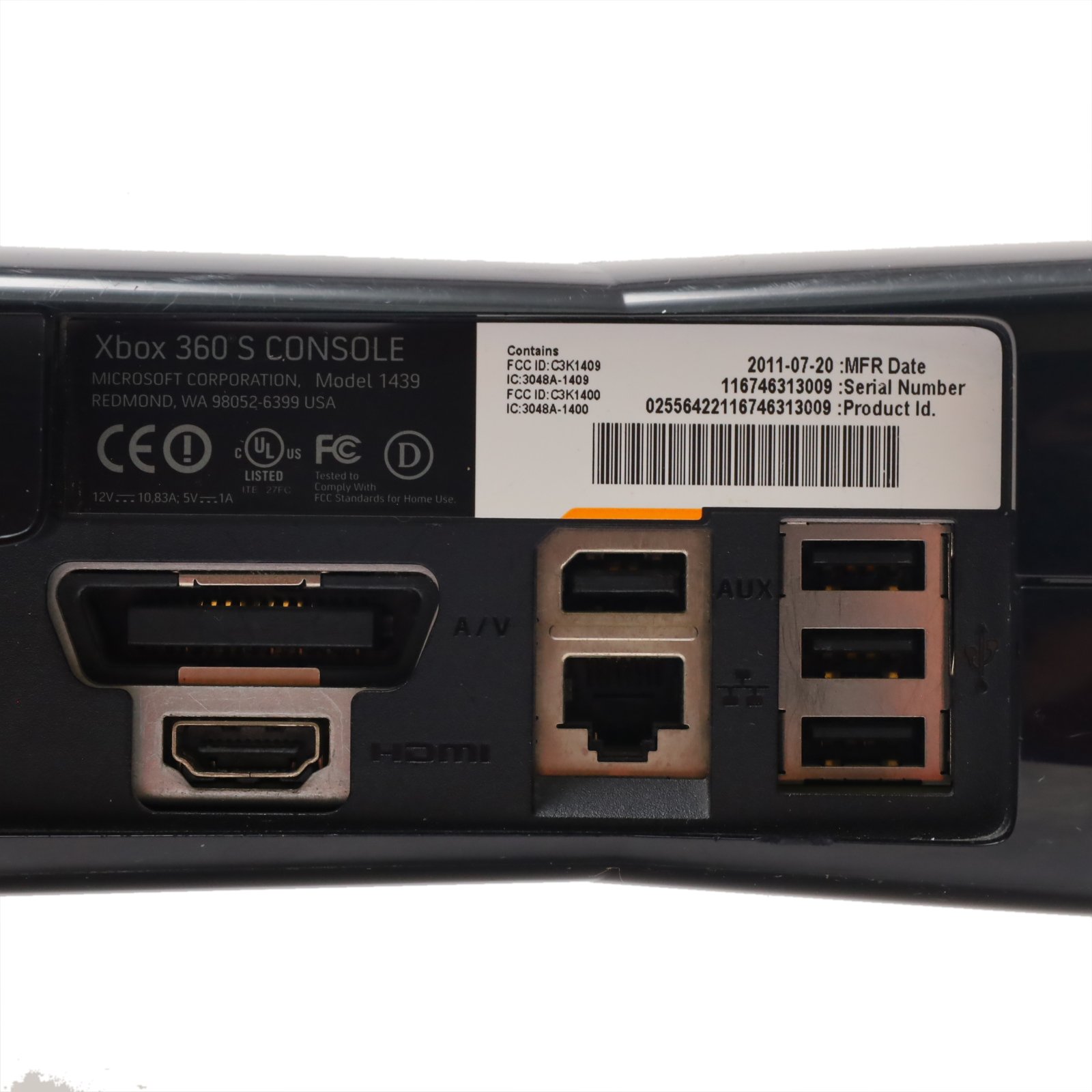 Features built-in 802.11n Wi-Fi, facilitating a swift and convenient connection to Xbox LIVE, and is compatible with b/g/n networks. This console is Kinect-ready, allowing players to engage with games and entertainment using motion and voice commands, without needing a traditional controller. The device boasts an array of ports, including five USB ports (three at the back and two in the front), a standard Ethernet port, HDMI output, and an integrated optical audio out port, accommodating a variety of accessories and storage solutions. Its design is tailored to seamlessly integrate with the Kinect Sensor, providing a comprehensive and immersive gaming experience.