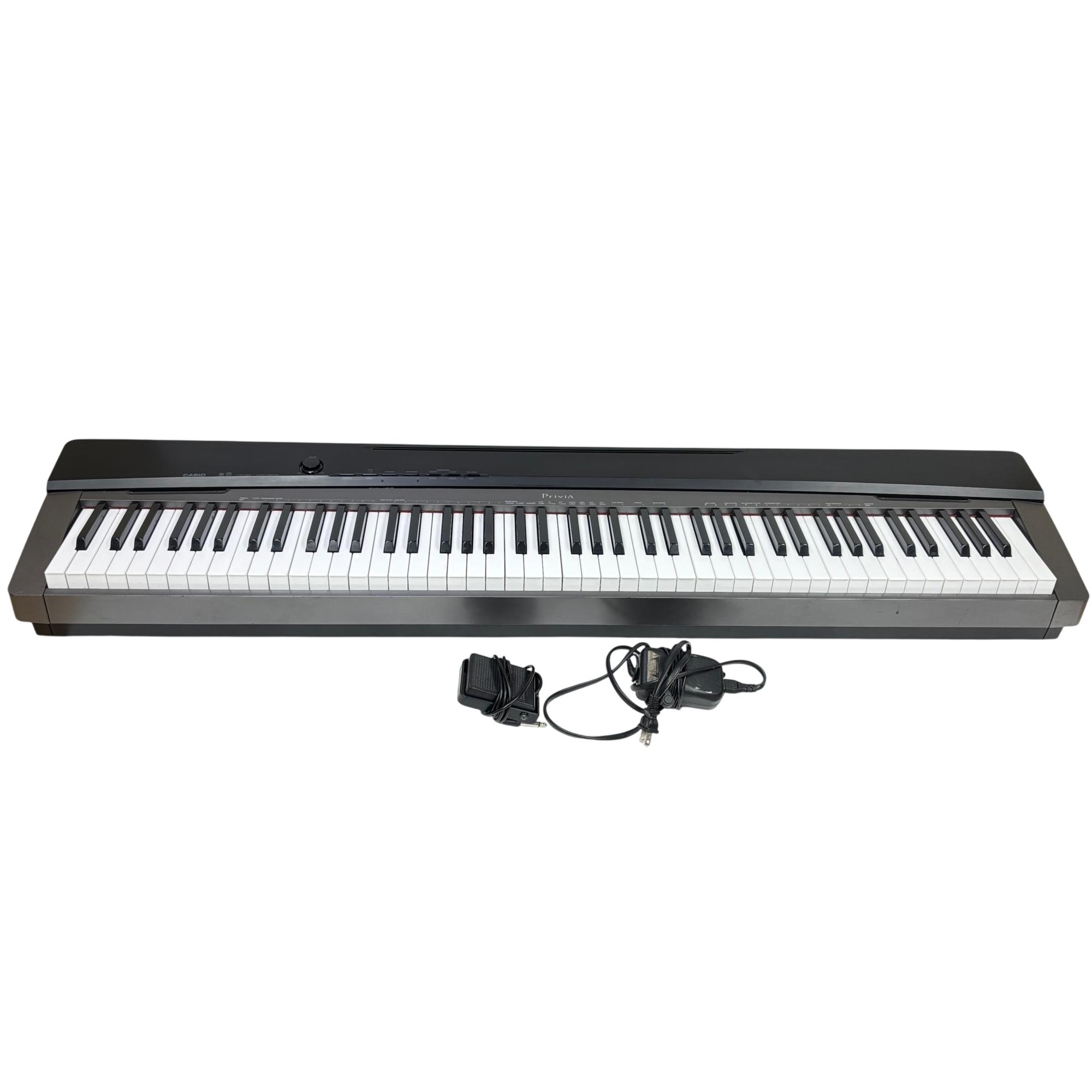 This Casio Privia PX-130 88-Key Digital Piano offers a compact, lightweight design that replicates the authentic feel of an acoustic piano with its weighted keys. This digital piano features advanced sound technology and a full 88-key keyboard, making it ideal for both beginners and experienced players seeking realistic tone and touch in a portable instrument.