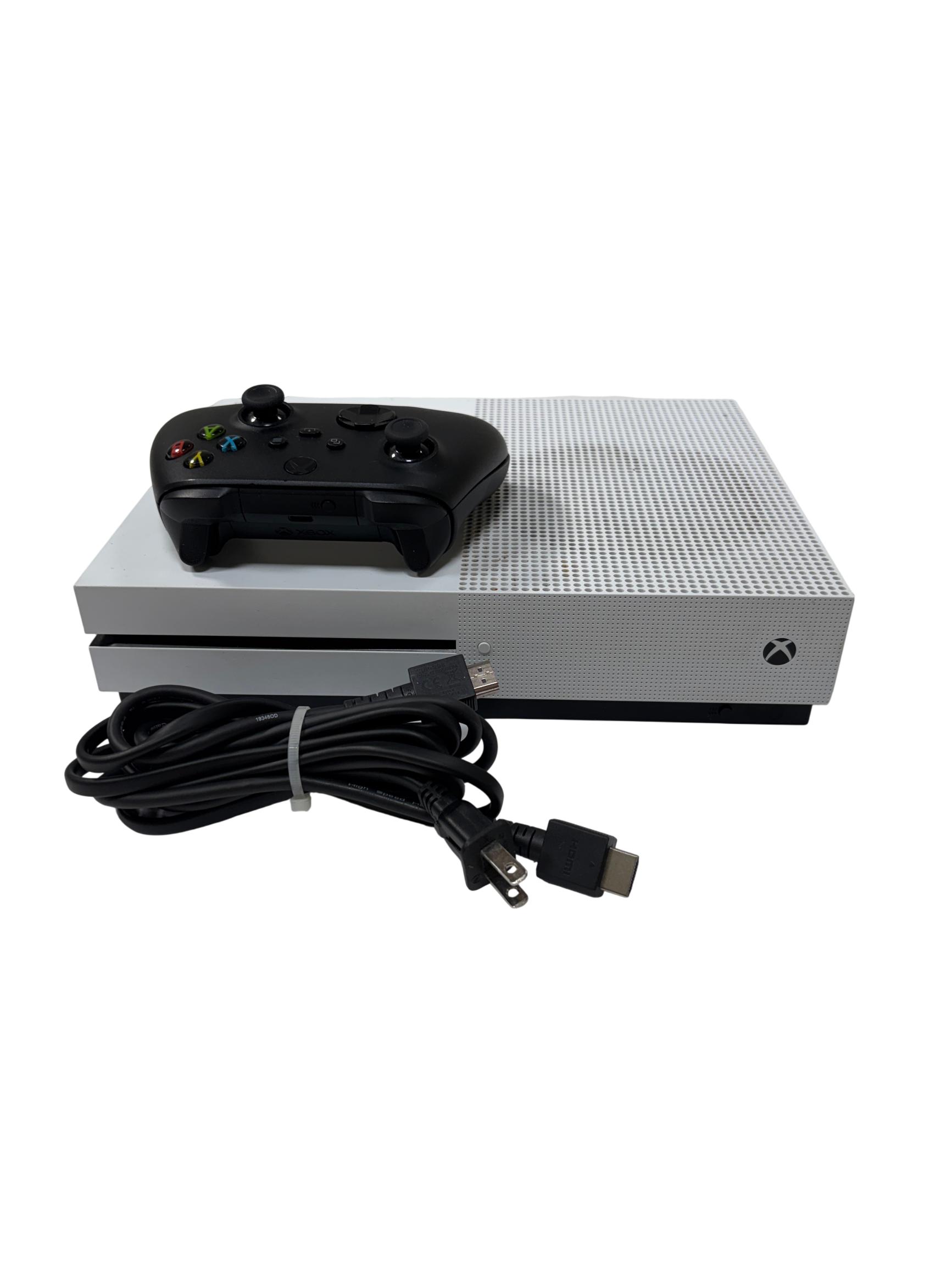 The Microsoft Xbox One S 512GB in white delivers powerful entertainment and gaming in one sleek console. Enjoy 4K Ultra HD streaming and Blu-ray playback with vibrant HDR visuals. Store and play your favorite titles with 512GB of storage, and experience smooth online multiplayer with Xbox Live. Compatible with a wide library of games from Xbox One, Xbox 360, and the original Xbox, the Xbox One S offers a versatile gaming experience for players and media lovers alike.