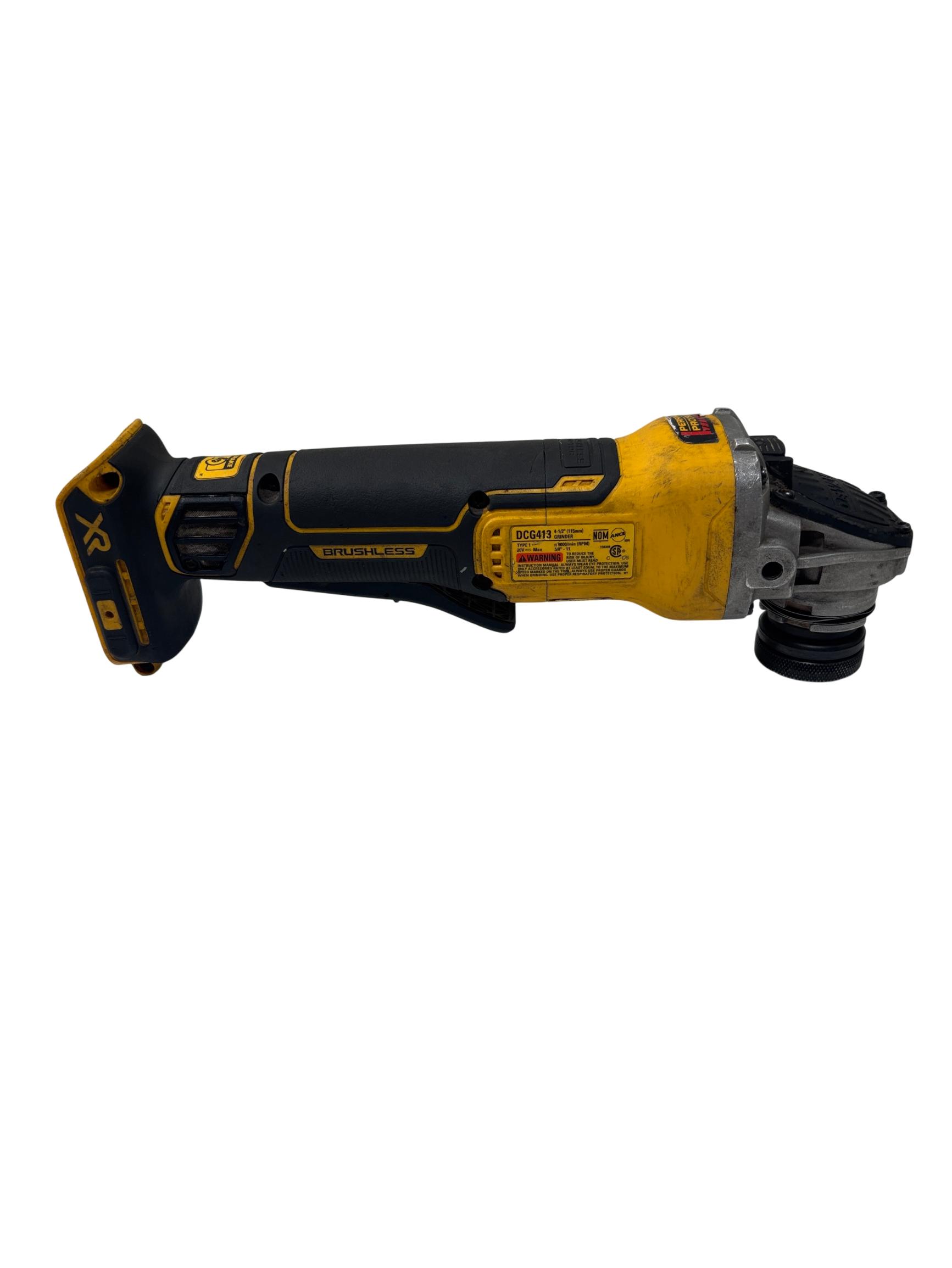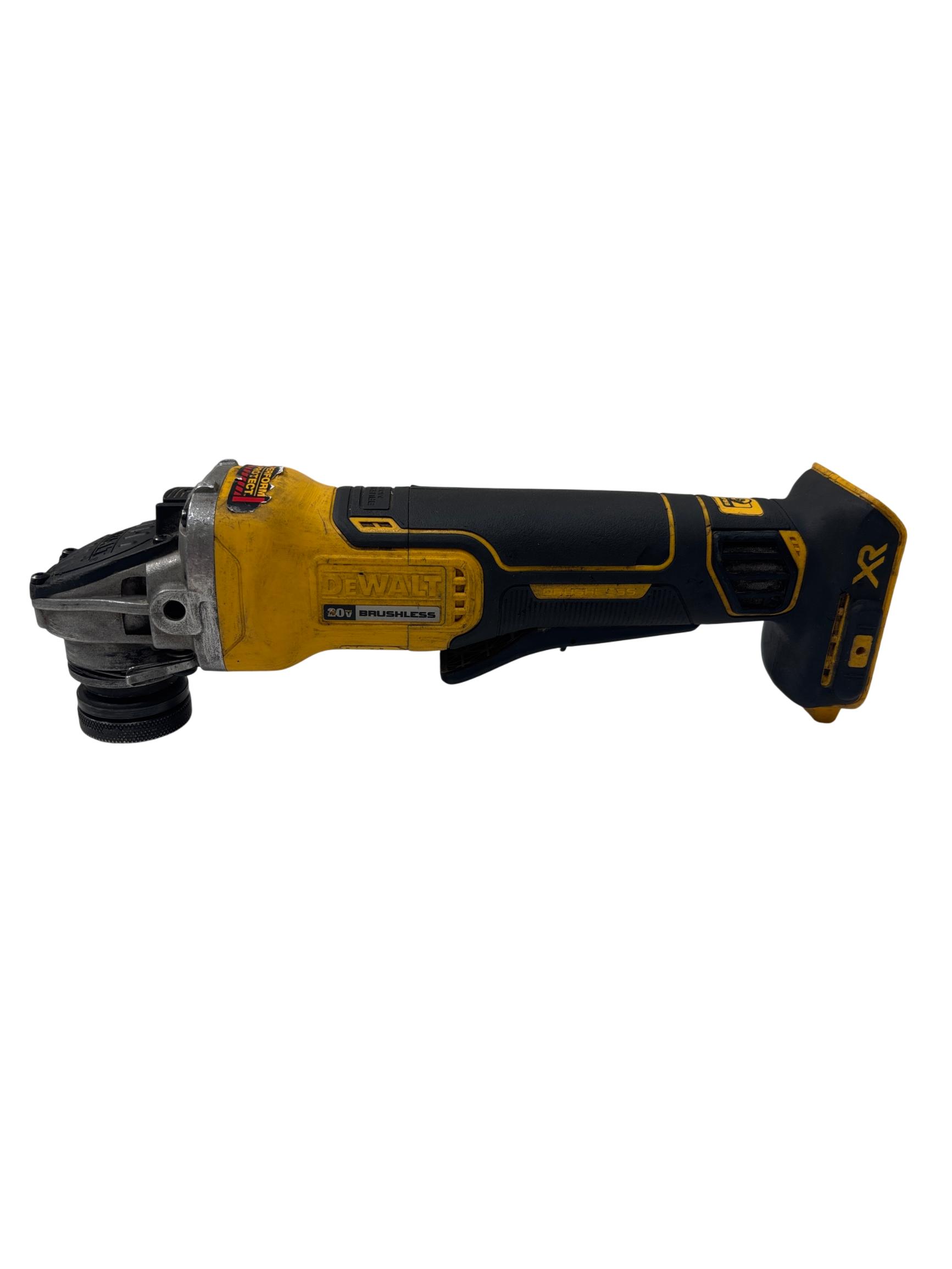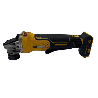 Equipped with a 20V MAX XR motor and is designed for efficient metal grinding, cutting, and working with bricks, pavers, and concrete. It features a unique brake system that halts the wheel in two seconds or less upon trigger release. The integrated E-Clutch System and Kickback Brake enhance safety by automatically shutting down the motor during wheel pinch situations, minimizing kickback. The tool's brushless motor is engineered for longevity, eliminating the need for brush replacements. Additionally, it includes a One-Touch Guard for easy adjustment, an anti-wobble hitch pin for stability, and a 2-stage trigger requiring two actions for activation, ensuring controlled and safe operation.