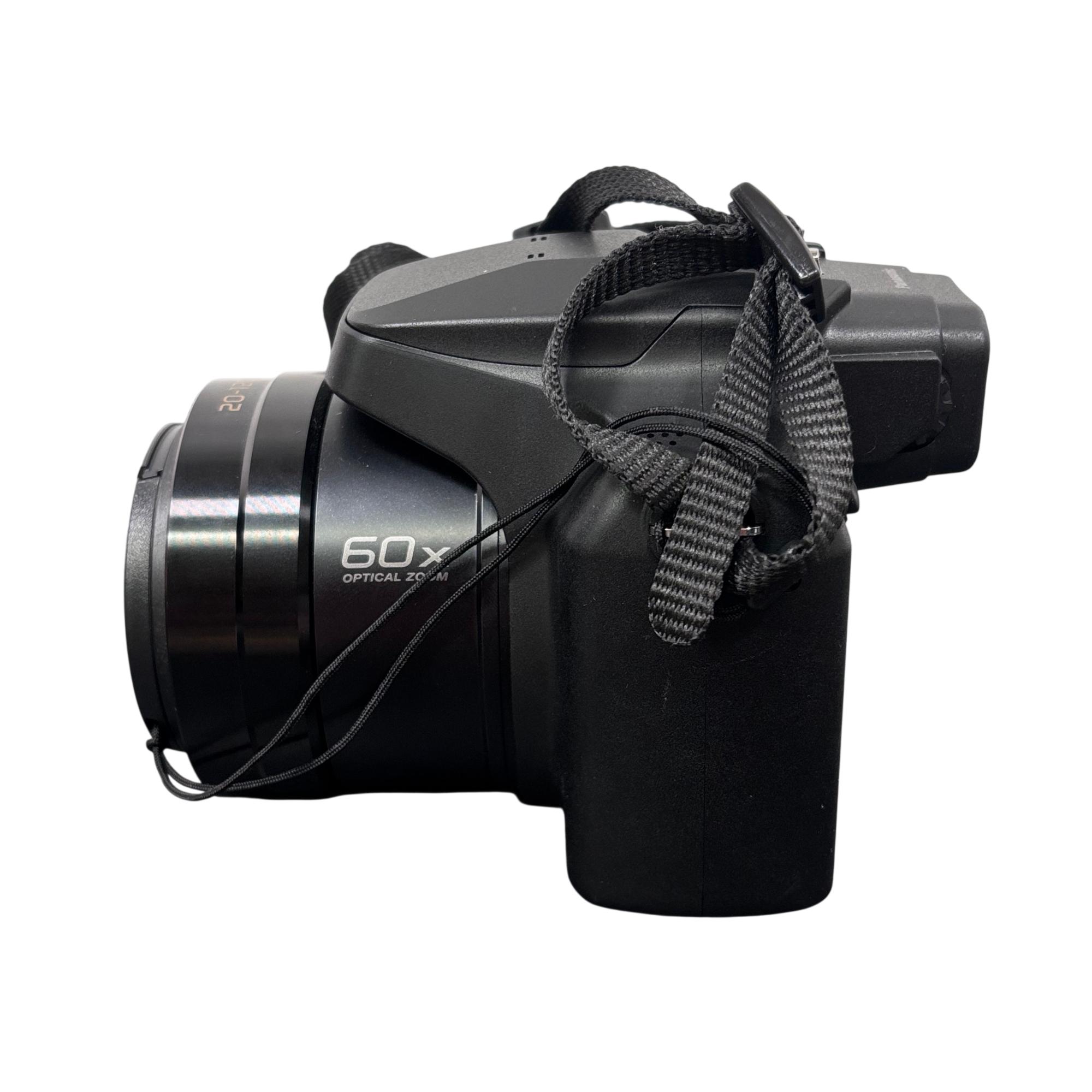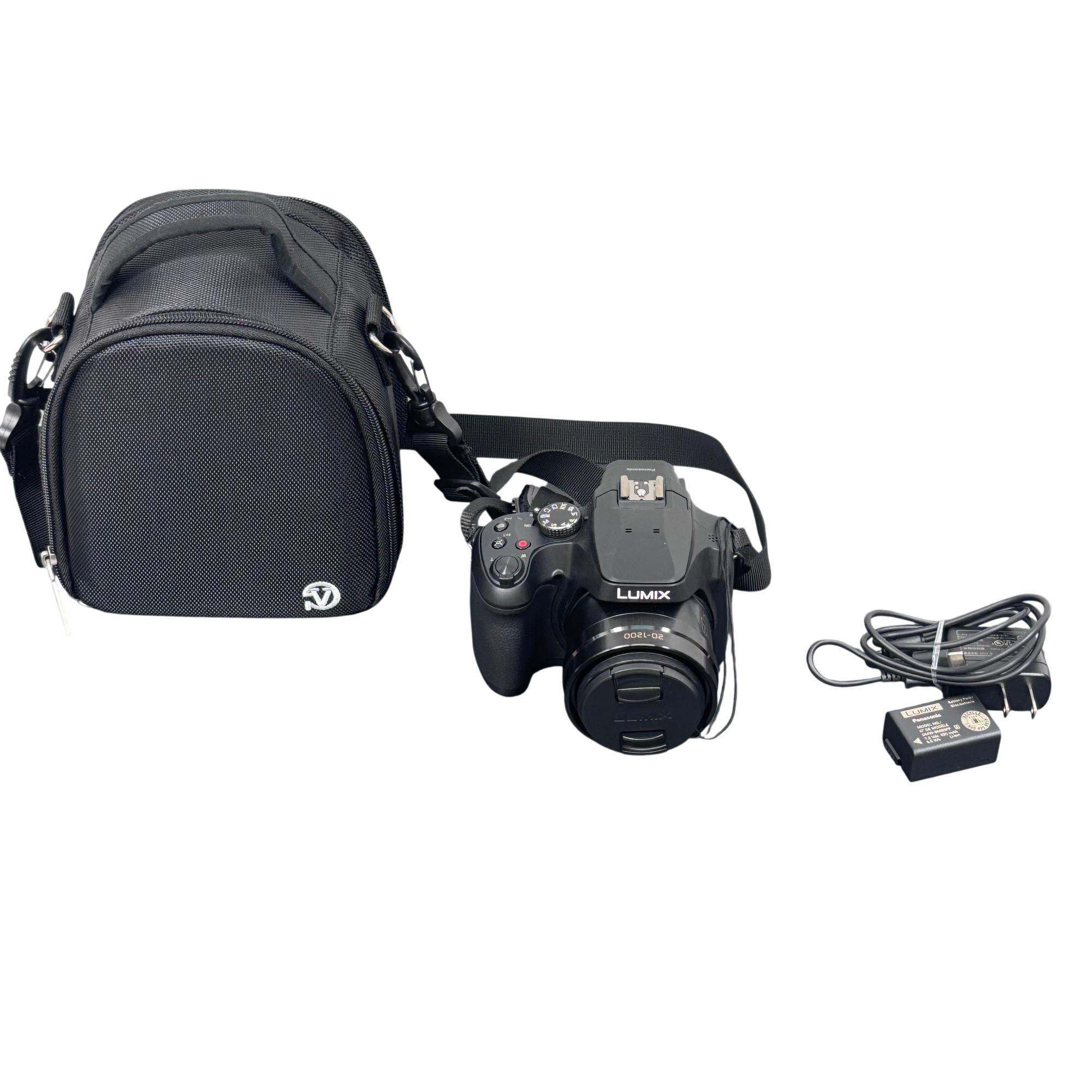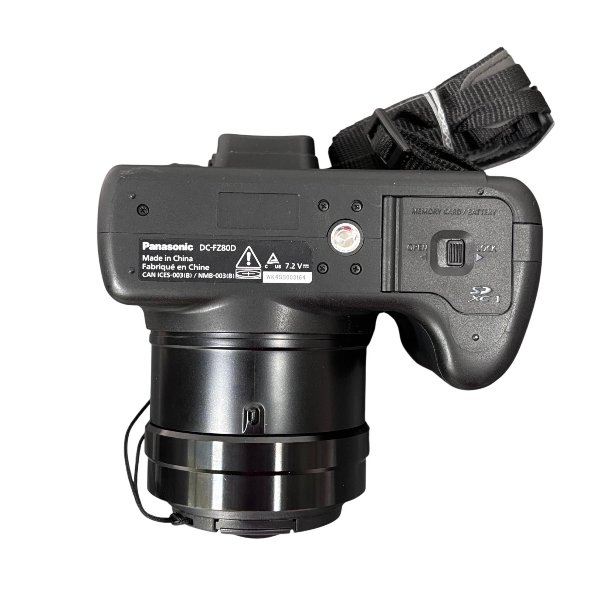 Panasonic LUMIX DC-FZ80D 18.1MP 4K Point & Shoot Digital Camera features a versatile 20-1200mm DC VARIO zoom lens ideal for capturing detailed wide-angle and telephoto shots. This black camera is designed with a compact body and ergonomic strap for comfortable handling and easy portability, making it suitable for both casual and advanced photography.