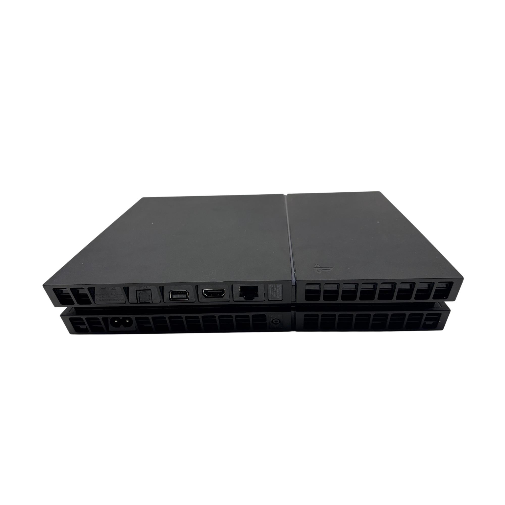 Sony PlayStation 4 500GB Console CUH-1215A Black features a sleek black rectangular design with multiple ports for connectivity and a user-friendly interface. This gaming system offers a spacious 500GB hard drive ideal for storing games and media, delivering an immersive gaming experience with high-quality graphics and responsive controls.