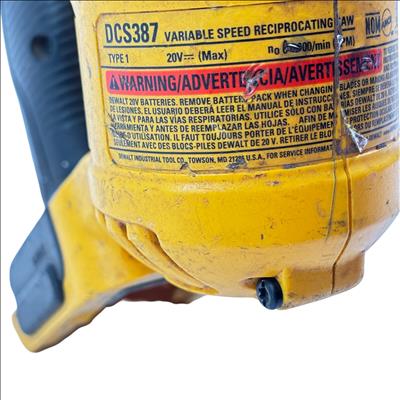 DEWALT 20V MAX XR Cordless Brushless Compact Reciprocating Saw (Model DCS387) delivers powerful performance with a compact, lightweight design ideal for cutting applications in tight spaces. Featuring a brushless motor, this tool ensures increased runtime and durability while providing variable speed control up to 2,900 strokes per minute for precise and efficient cutting across various materials.