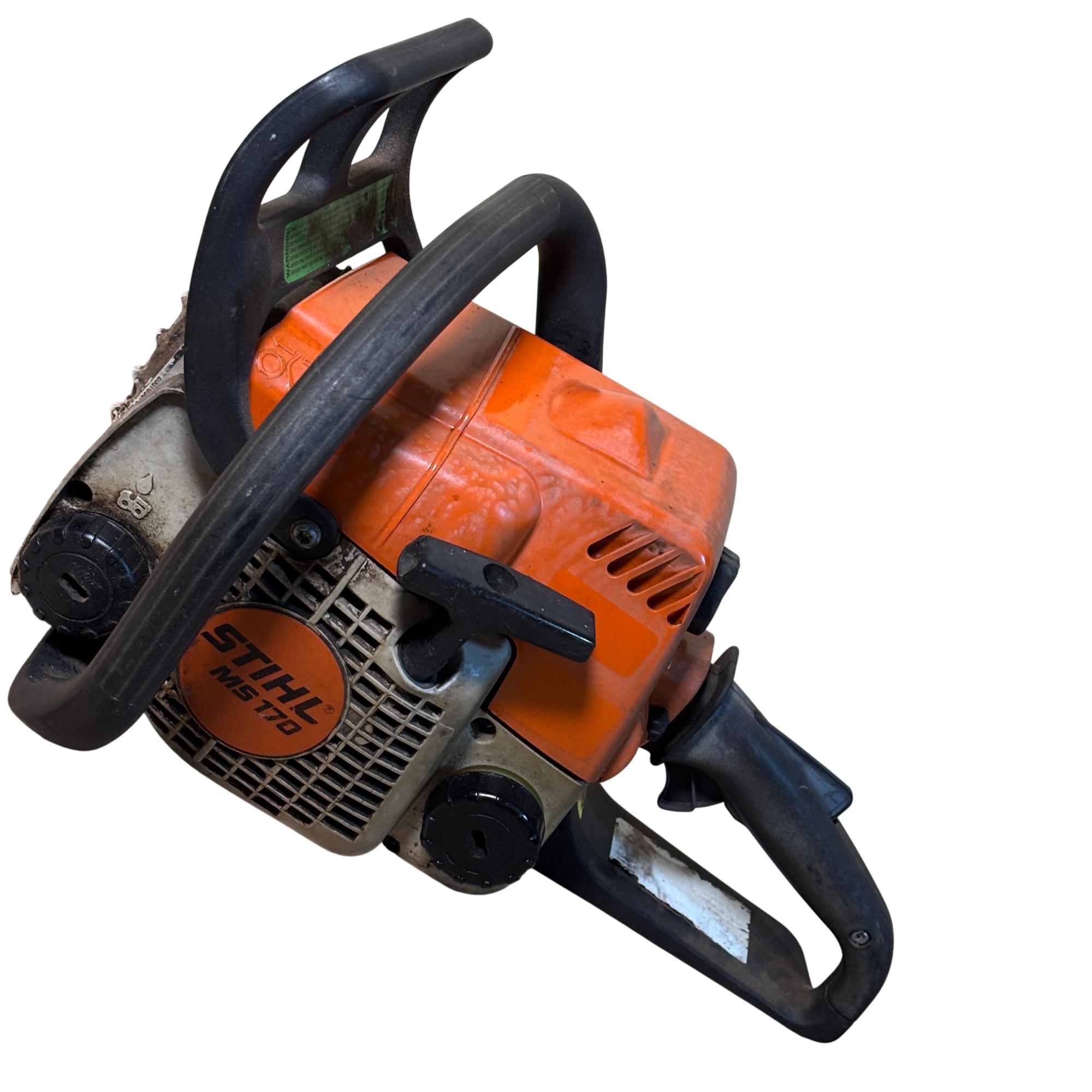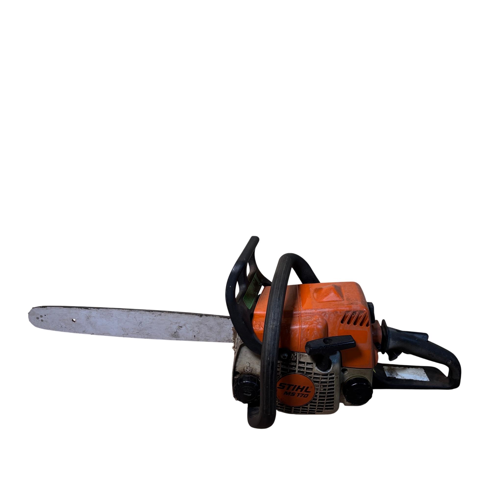Stihl MS 170 Gas Chainsaw with 16" Oregon Bar is a lightweight and reliable tool designed for efficient cutting and pruning. It features a powerful 30.1cc engine and a durable 3/8-inch chain pitch, ideal for homeowners and outdoor enthusiasts. Engineered for ease of use and performance, this chainsaw delivers consistent power with ergonomic handling for comfortable operation.