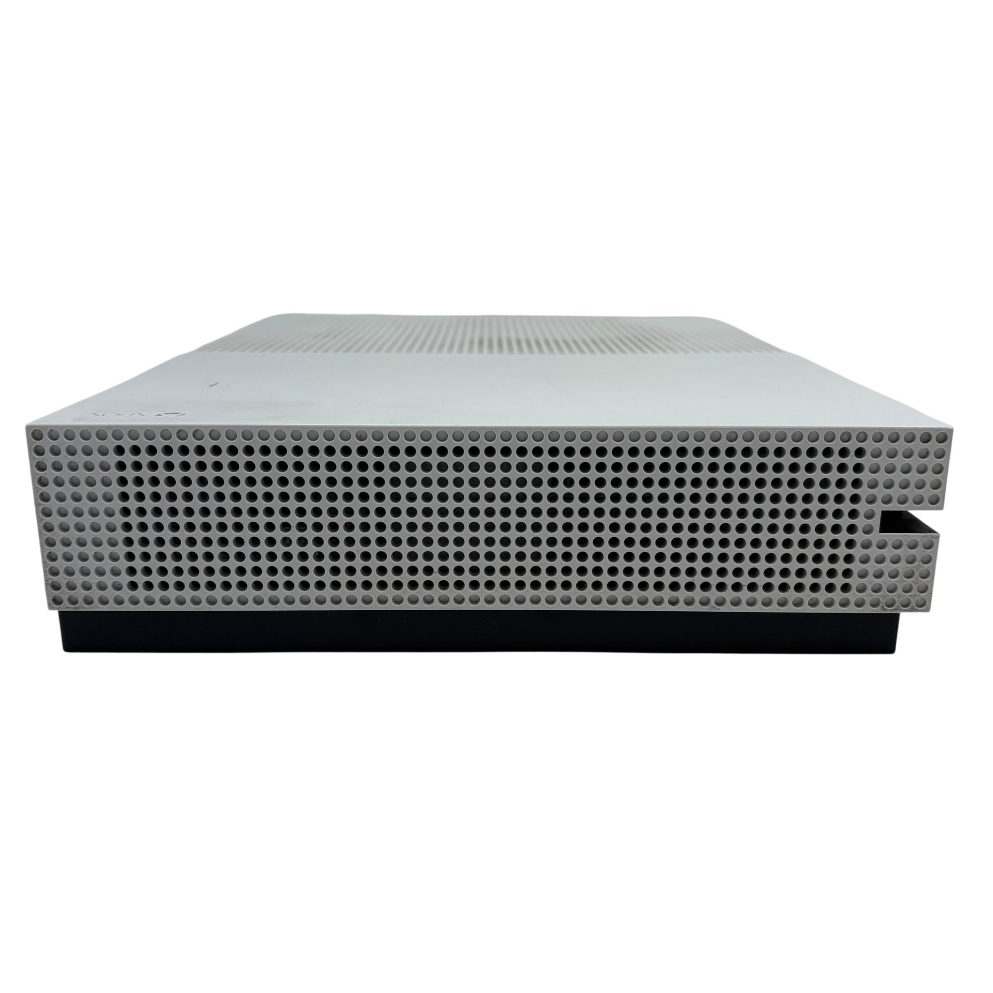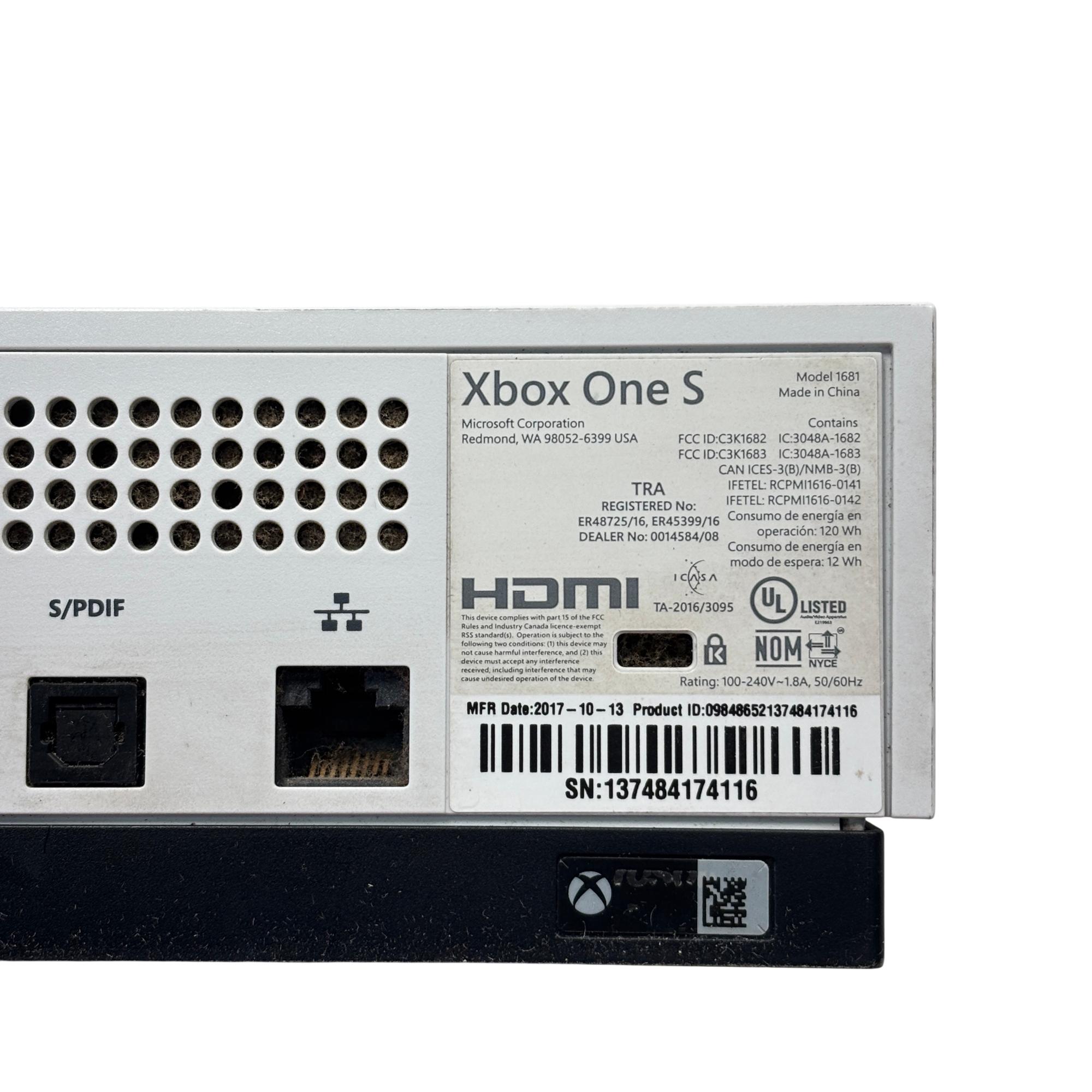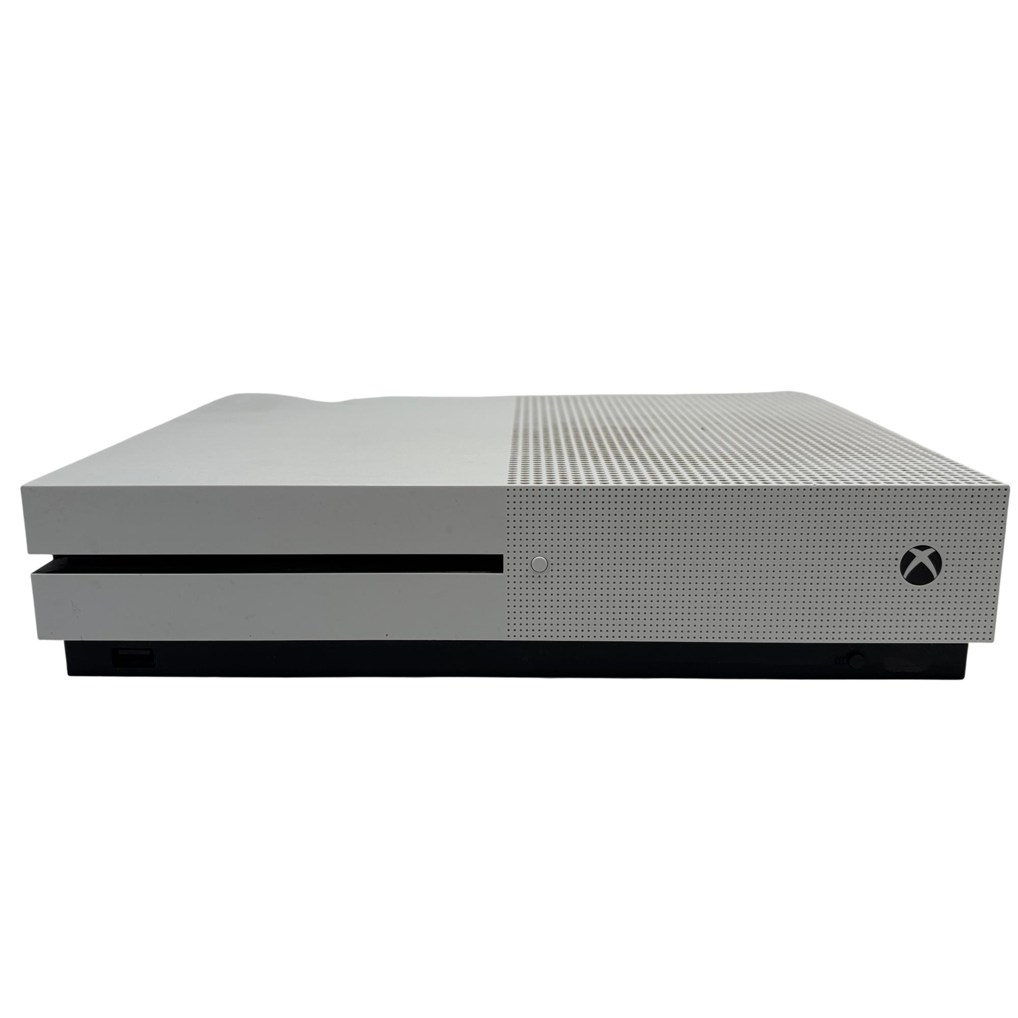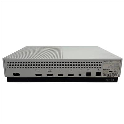 The Microsoft Xbox One S 1681 offers a sleek, compact design featuring a white rectangular body with ventilation holes. This model delivers seamless gaming performance with enhanced graphics and built-in speaker functionality, making it a versatile choice for gaming enthusiasts. Its ergonomic wireless controller provides precise input for an immersive gaming experience.
