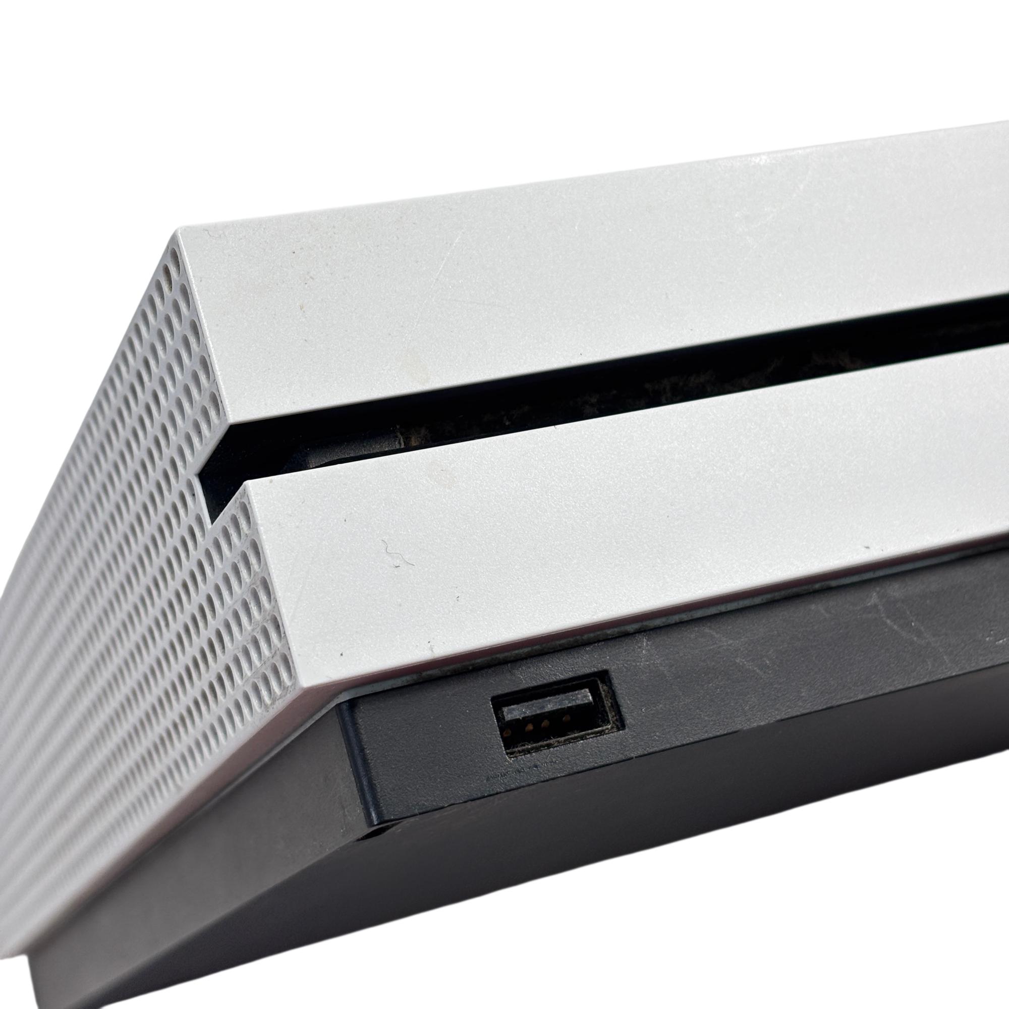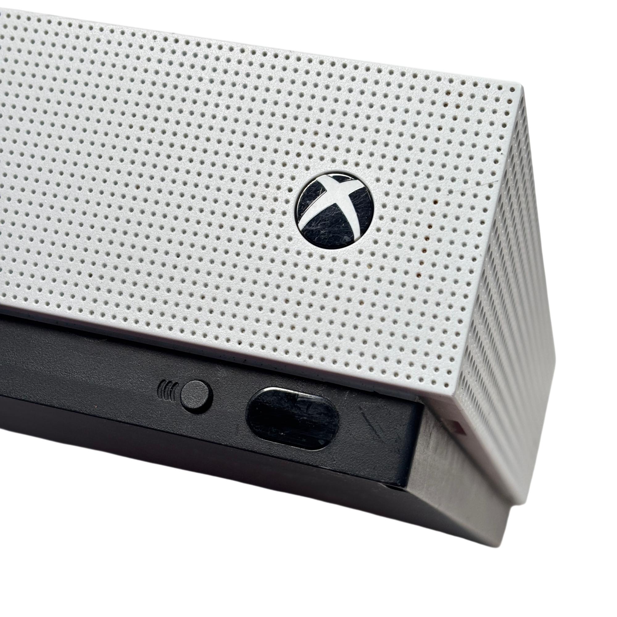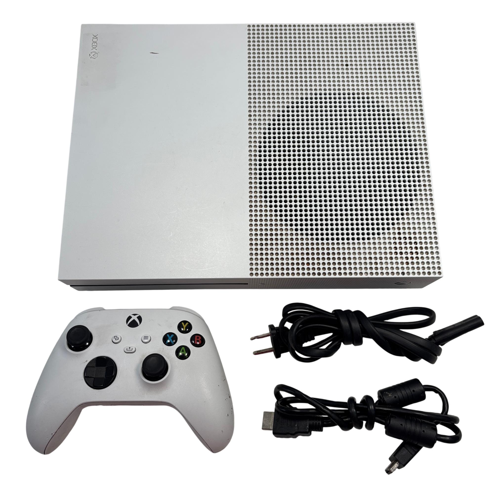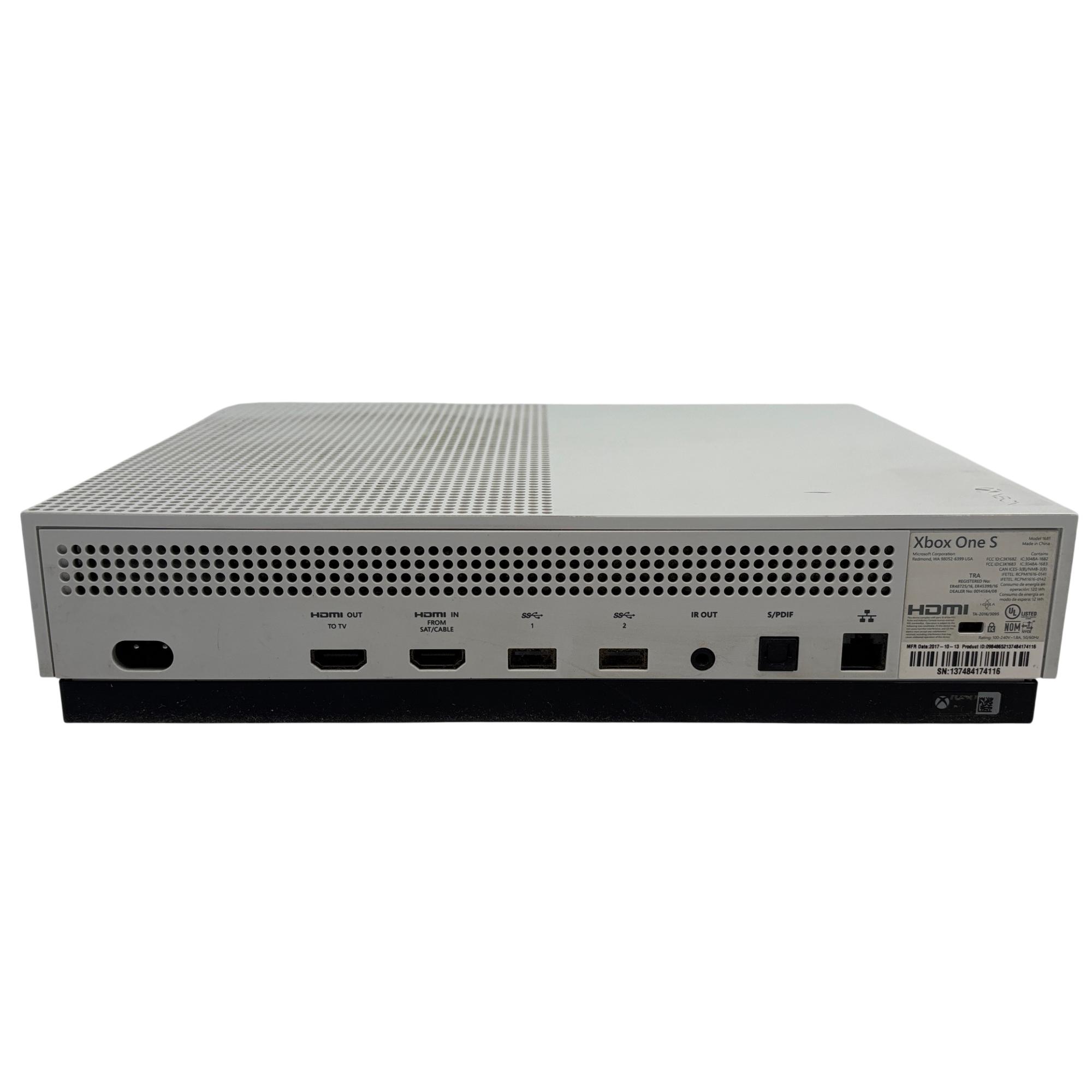 The Microsoft Xbox One S 1681 offers a sleek, compact design featuring a white rectangular body with ventilation holes. This model delivers seamless gaming performance with enhanced graphics and built-in speaker functionality, making it a versatile choice for gaming enthusiasts. Its ergonomic wireless controller provides precise input for an immersive gaming experience.
