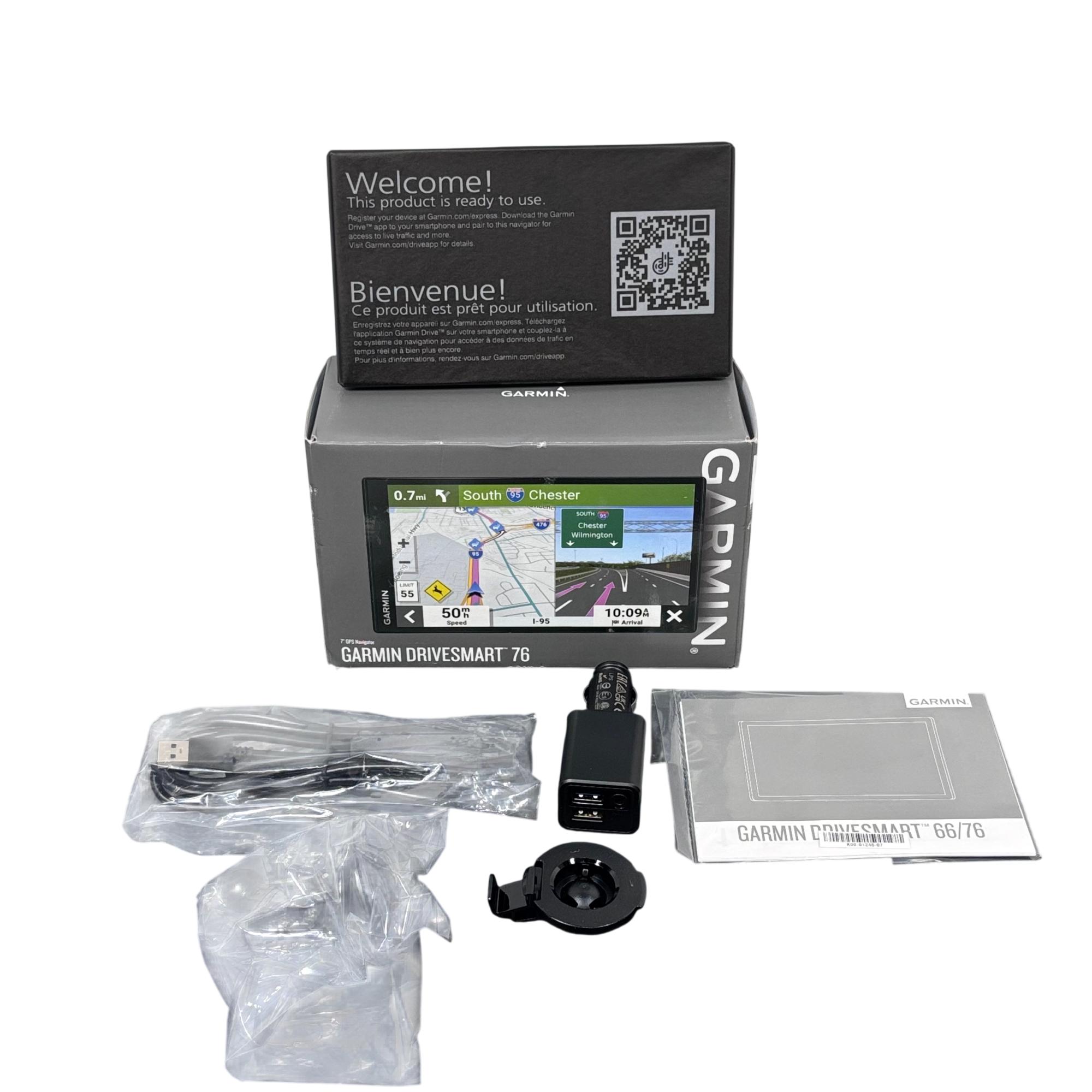 Garmin DriveSmart 76 GPS Navigator 010-02470-00 offers advanced navigation with a large, easy-to-read screen designed for clear visibility and user-friendly operation. This portable GPS device features smart connectivity and detailed mapping to provide accurate, turn-by-turn directions for drivers seeking reliable guidance on the road.