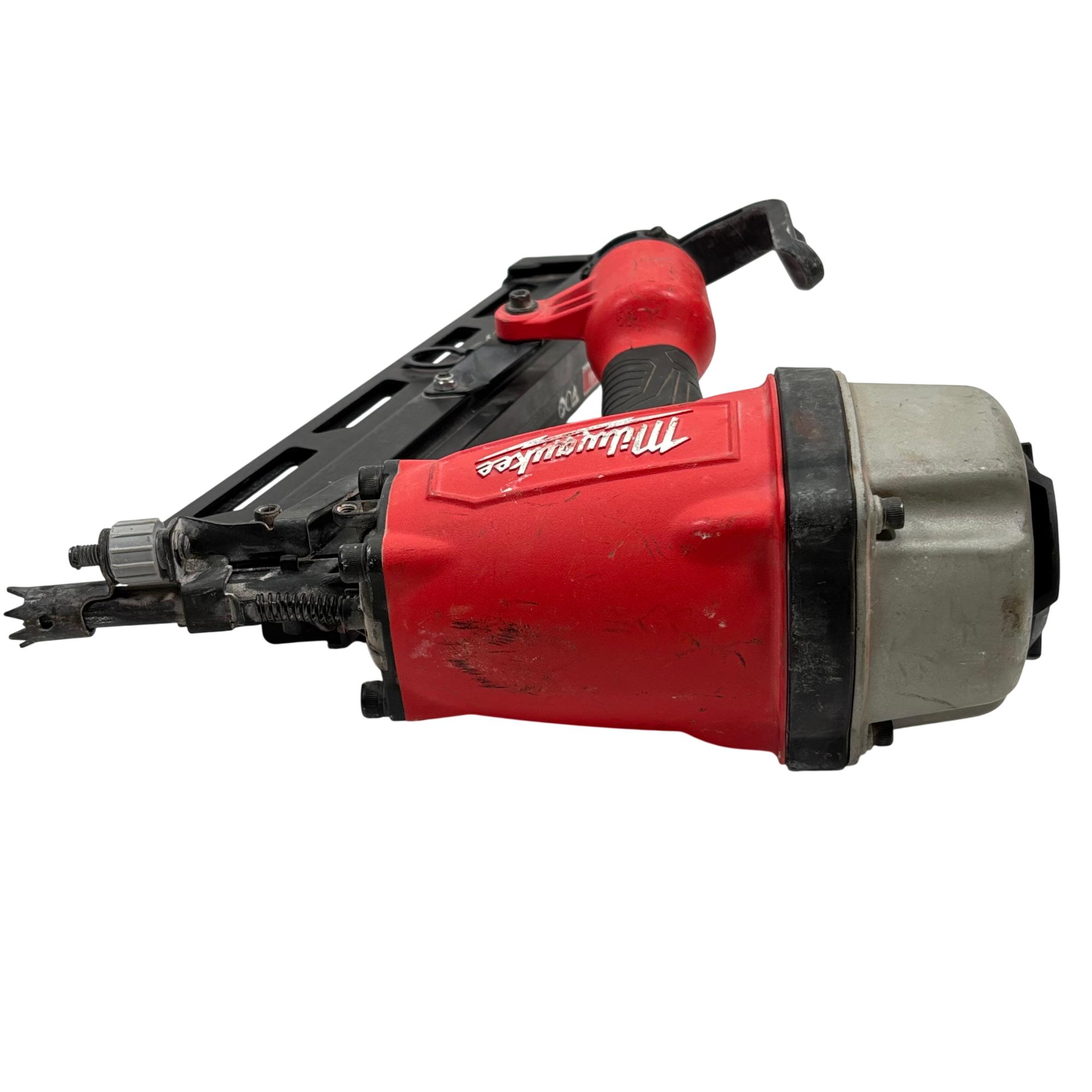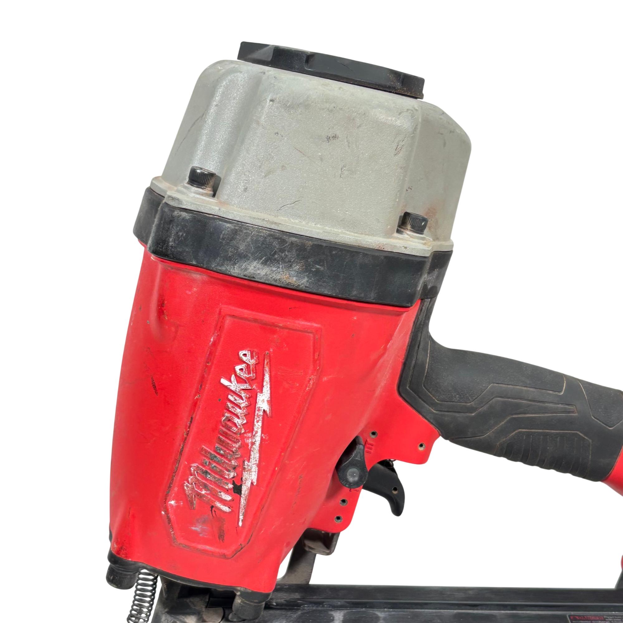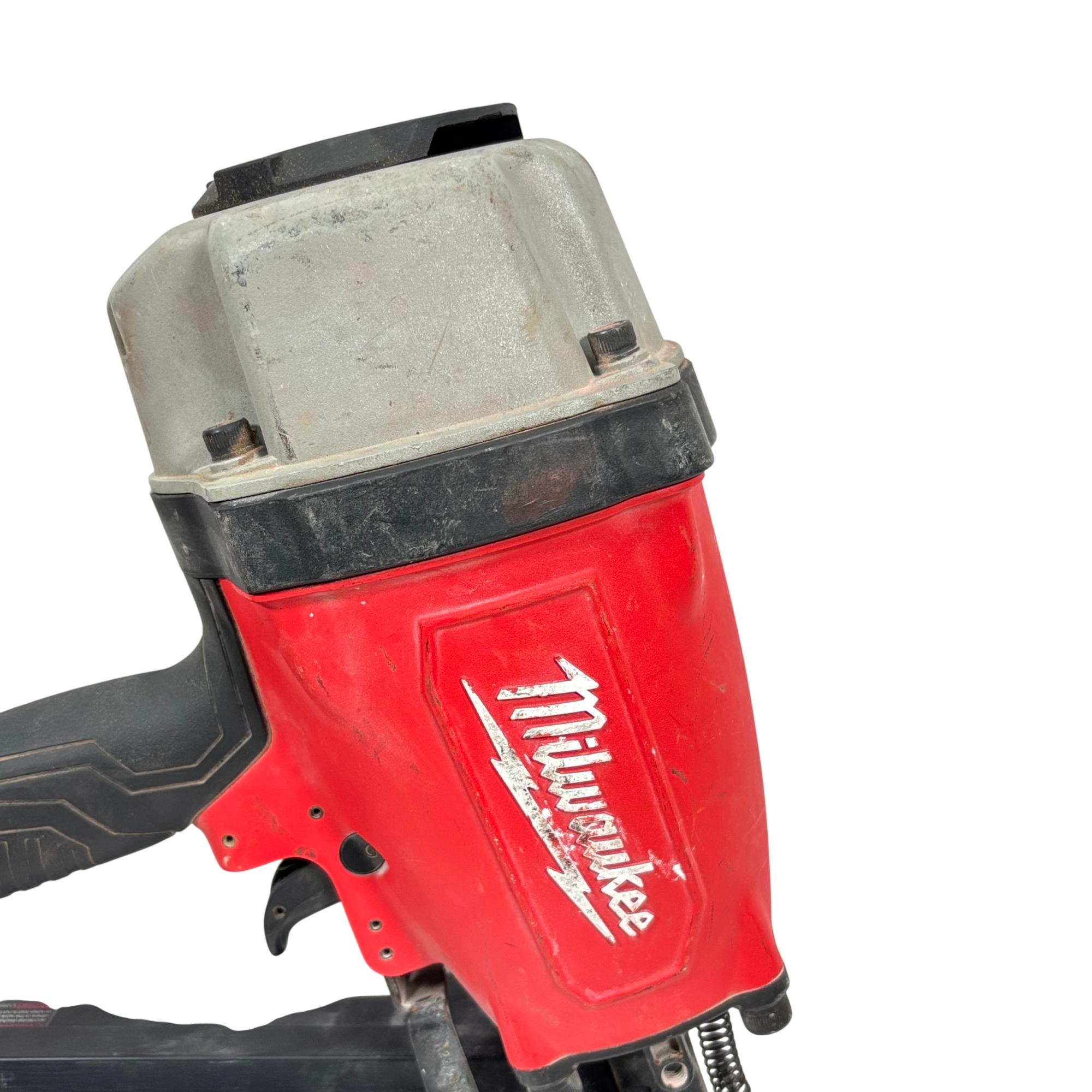 Milwaukee 7200-20 3-1/2" Full Round Head Framing Nailer is a pneumatic tool designed for heavy-duty framing applications. It delivers precise and consistent nail placement with a durable build, ideal for professional contractors and woodworking projects requiring full round head nails up to 3-1/2 inches.