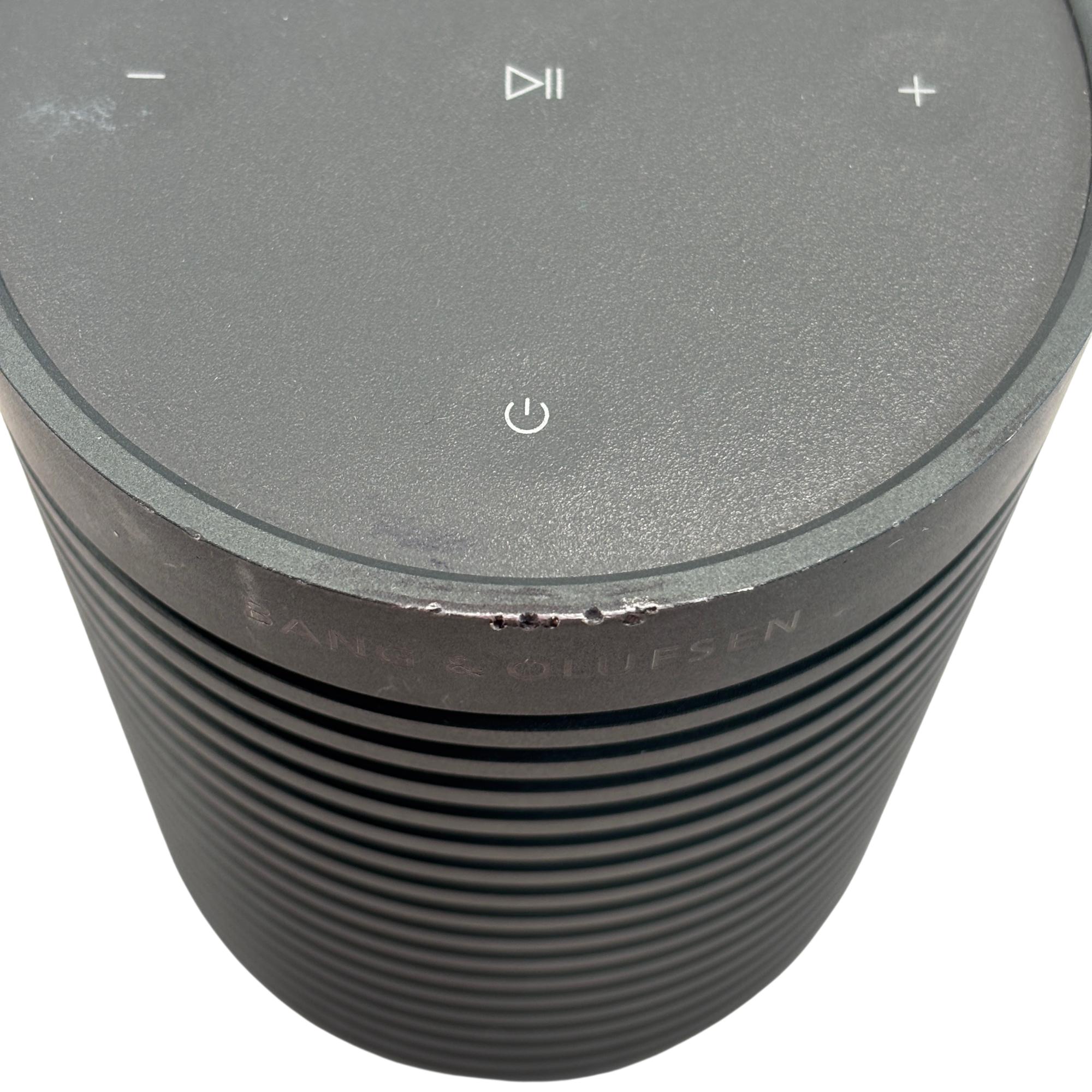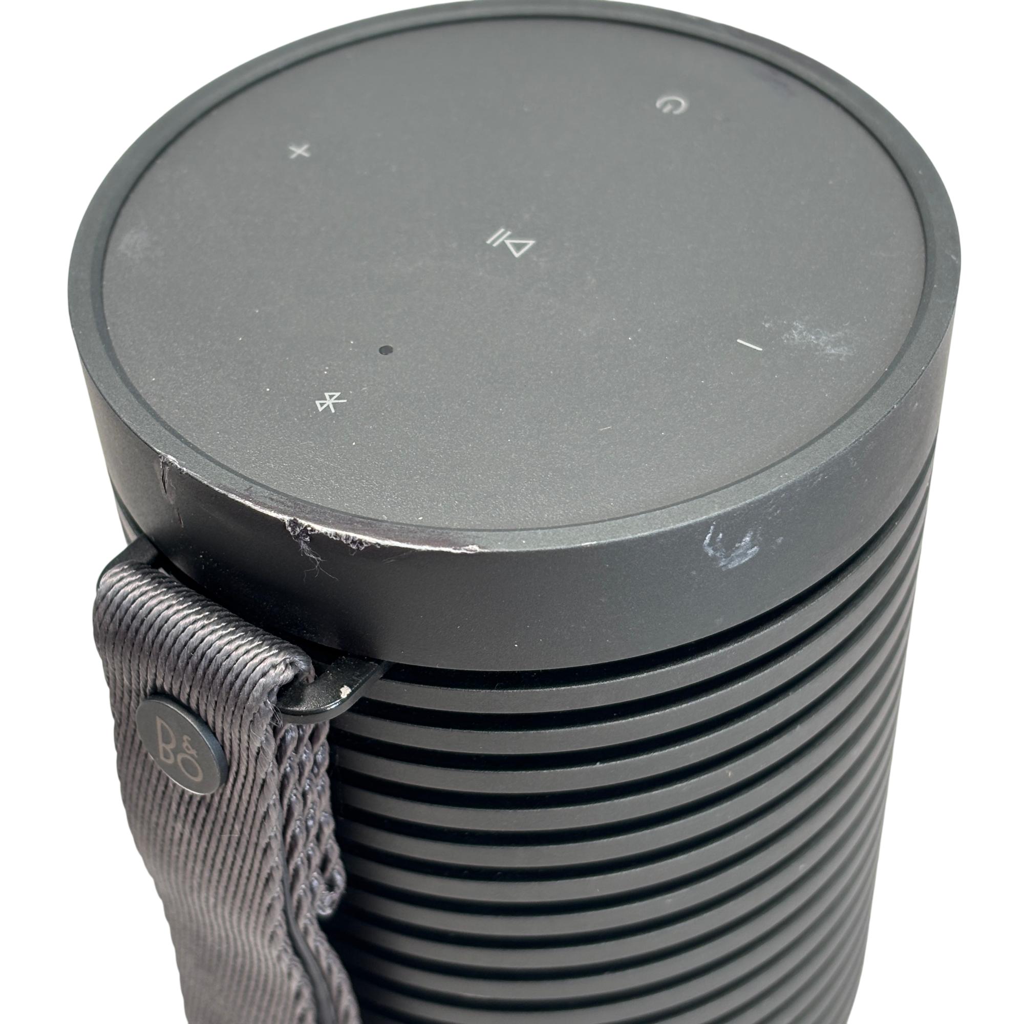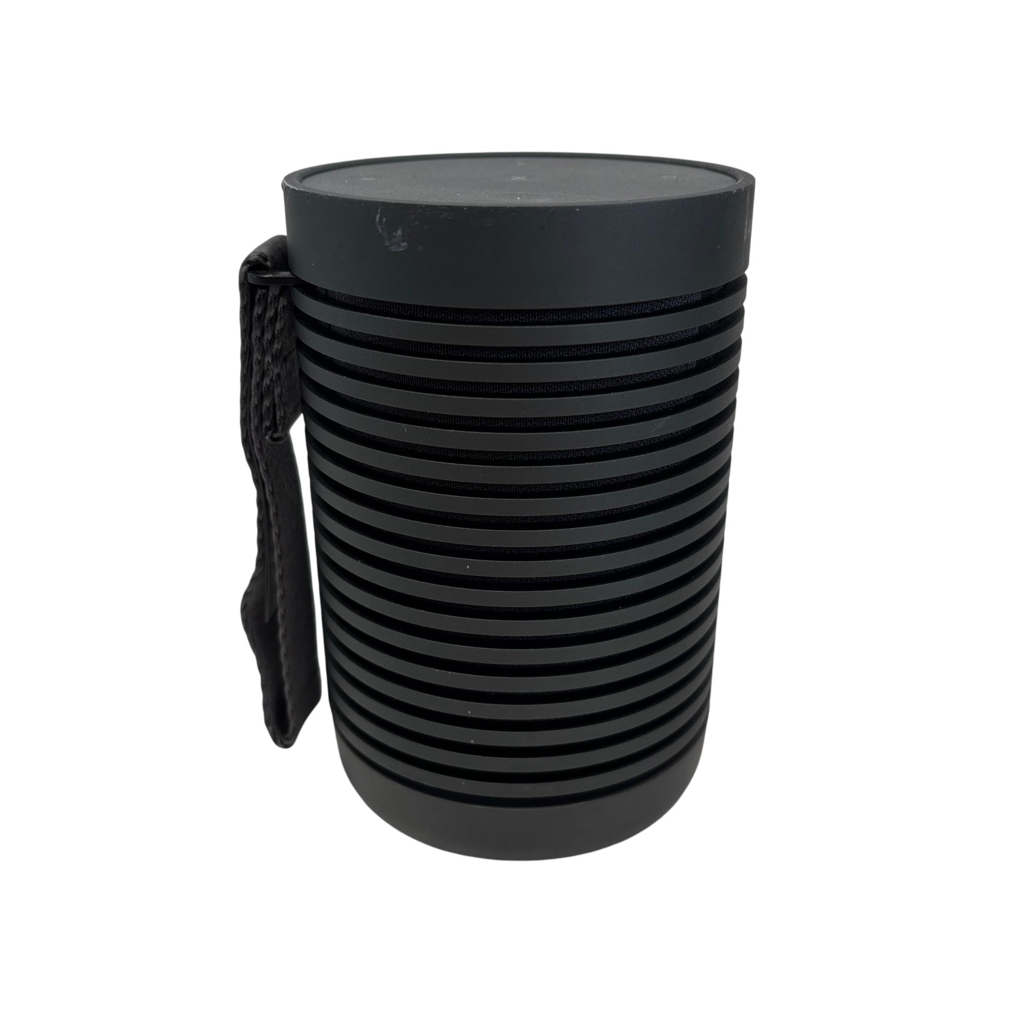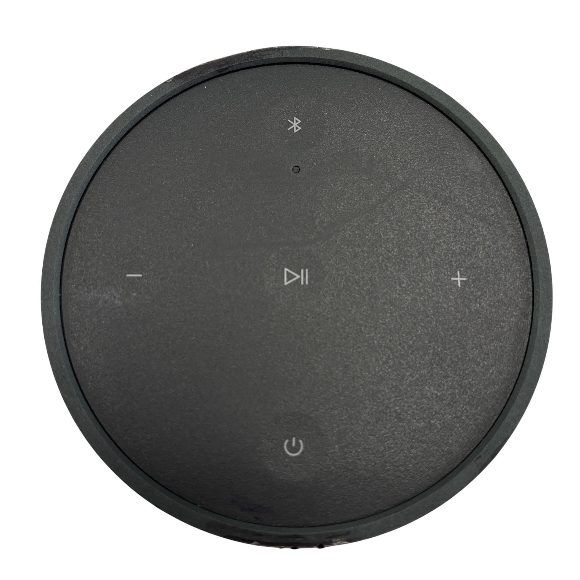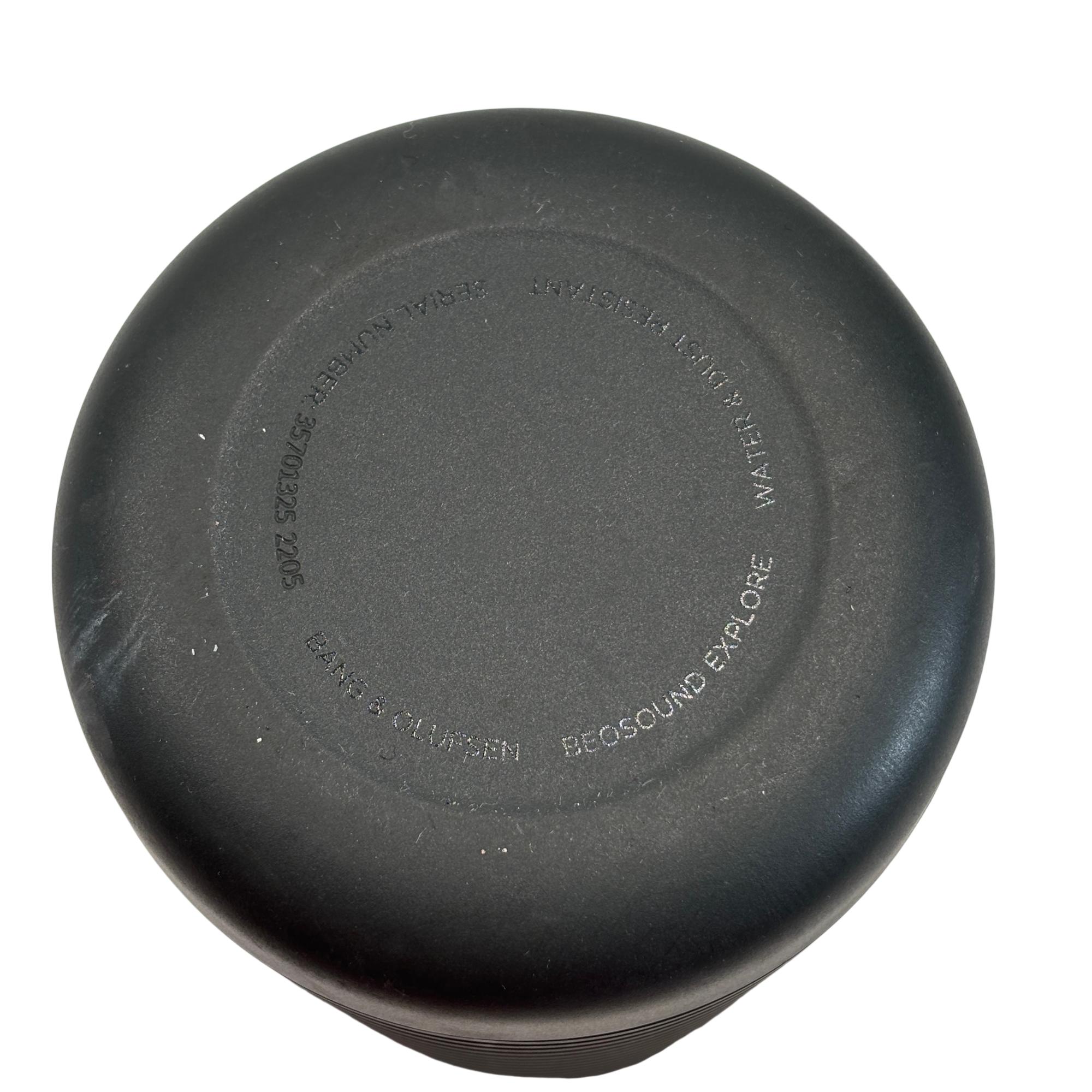 The Bang & Olufsen Beosound Explore Black Portable Outdoor Bluetooth Speaker is a compact, cylindrical wireless speaker designed for outdoor use. It features a sleek Black Antracite finish with intuitive button controls and a durable build that resists the elements, making it ideal for on-the-go sound experiences. This portable speaker delivers high-quality audio with clear, immersive sound in a rugged design.