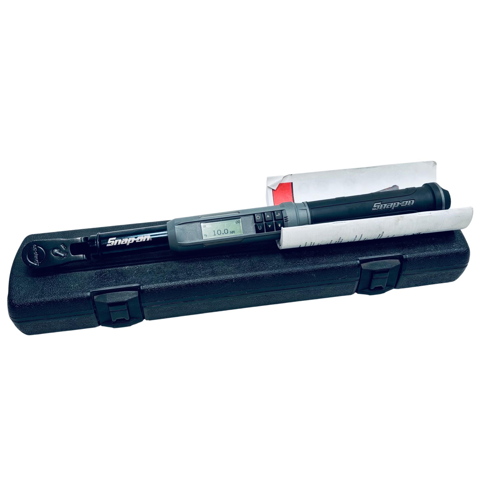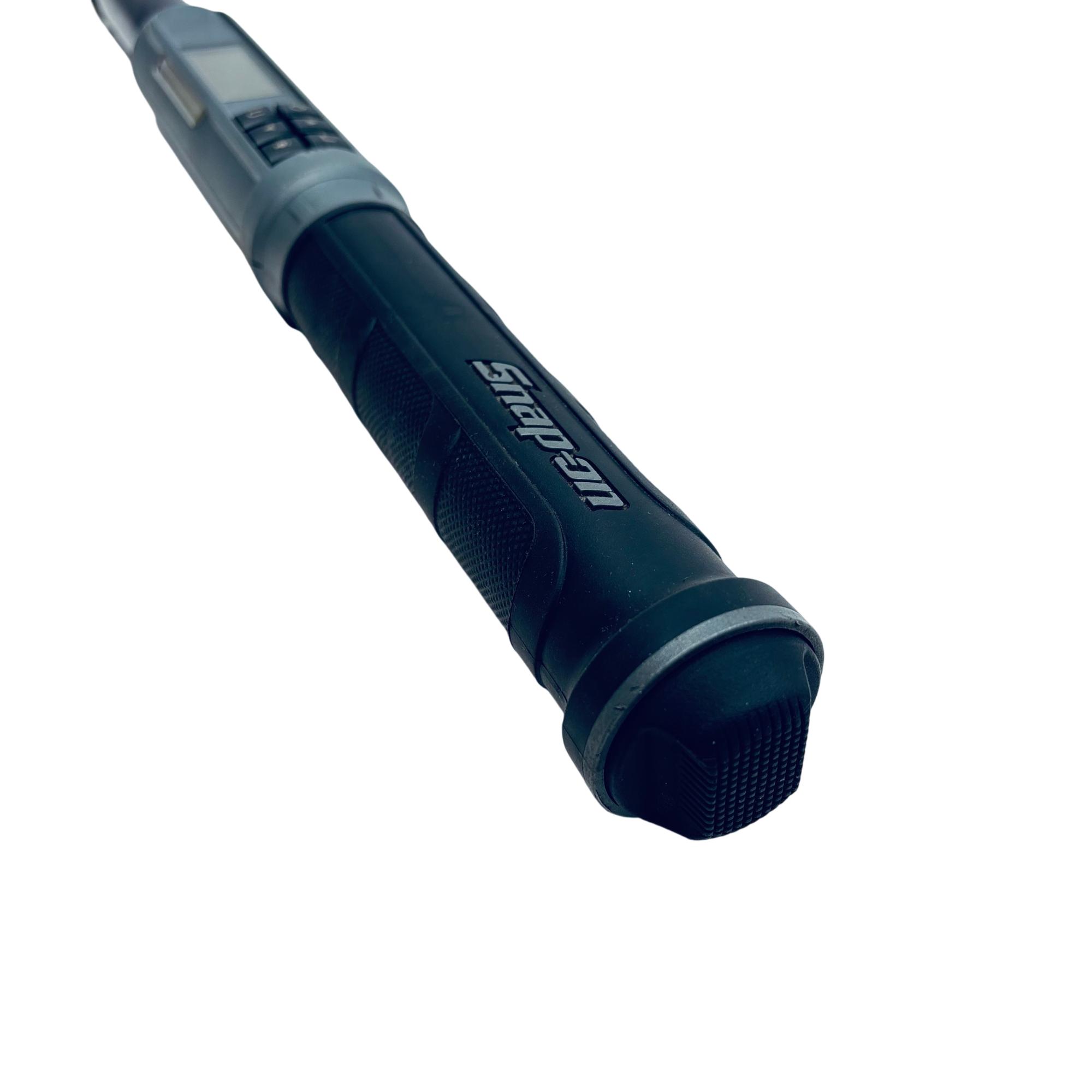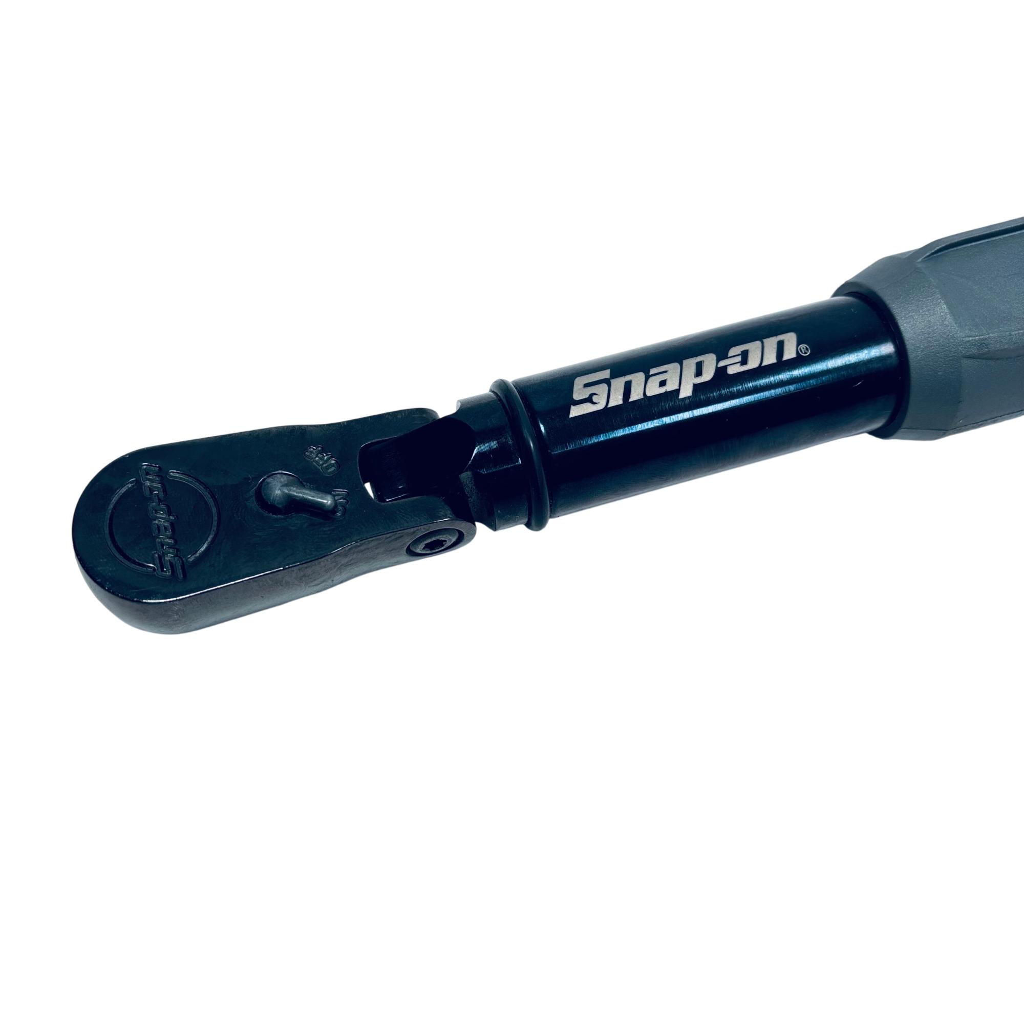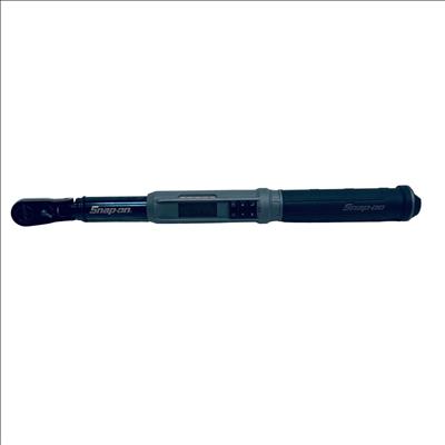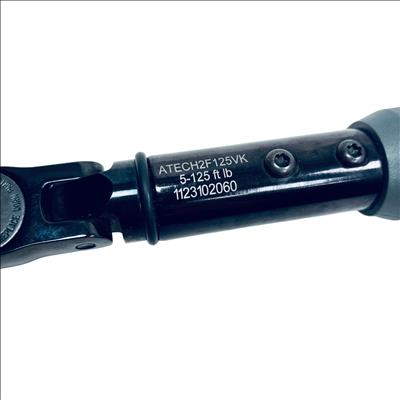 Snap-on ATECH2F125VK 3/8" Drive Flex-Head TechAngle Digital Torque Wrench delivers precise torque control with a digital display for accuracy between 5 and 125 ft-lb. This professional-grade tool features a flexible head design and a durable black metal construction, engineered for ease of use in tight spaces and reliable performance on automotive and mechanical applications.