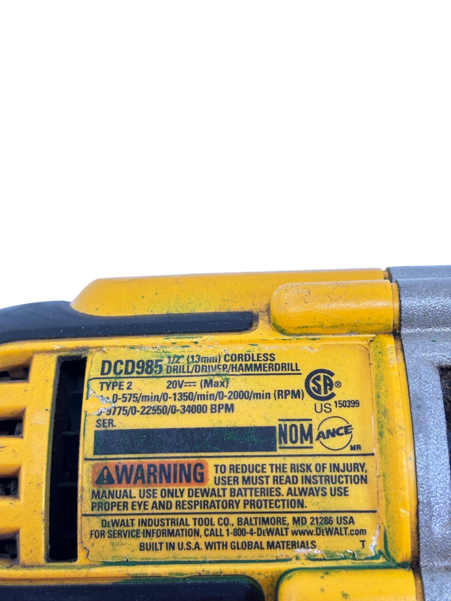 DeWalt DCD985 20V MAX Cordless 1/2" 3-Speed Hammer Drill/Driver is a versatile power tool designed for demanding drilling and driving tasks. Featuring a brushless motor and a 1/2-inch keyless chuck, this cordless hammer drill delivers up to 55Nm of torque and operates with three speed settings for enhanced control and precision. Its compact design and integrated LED light make it suitable for various applications in construction and home projects.