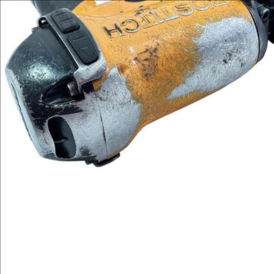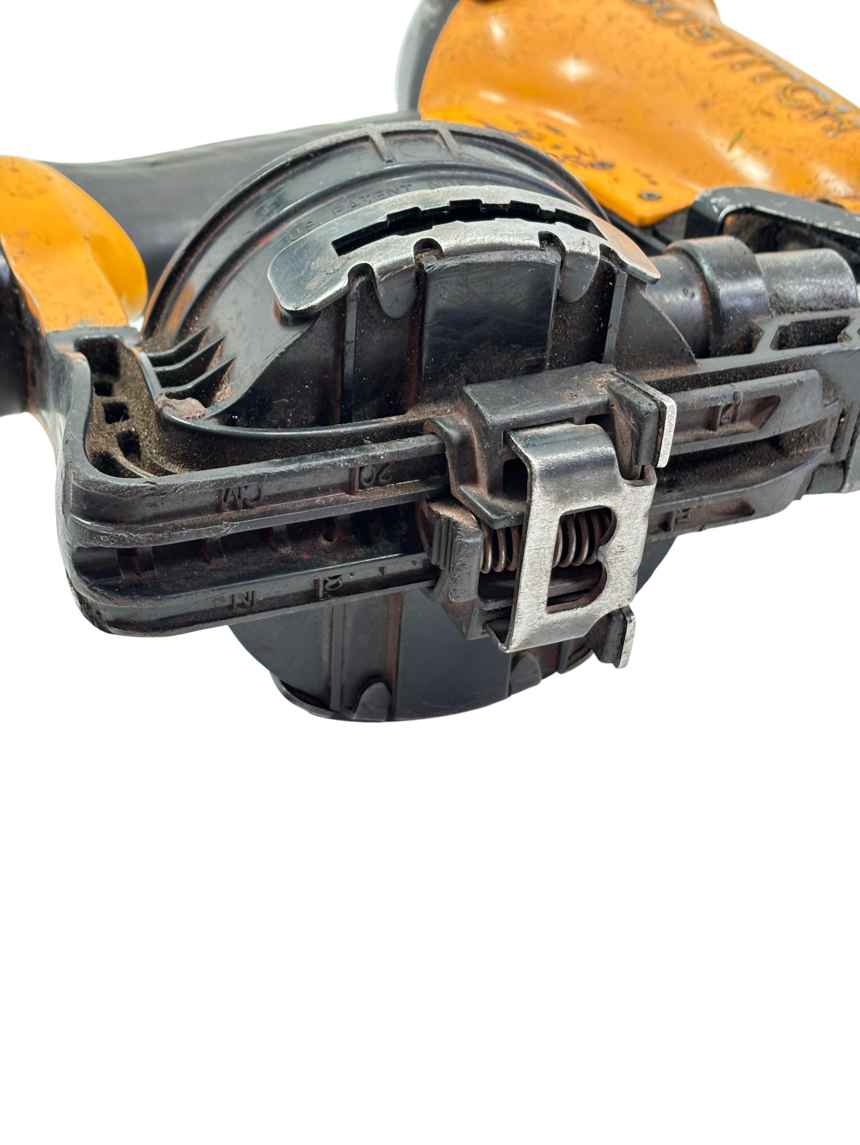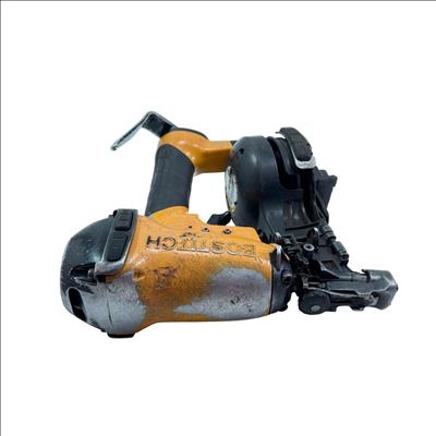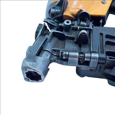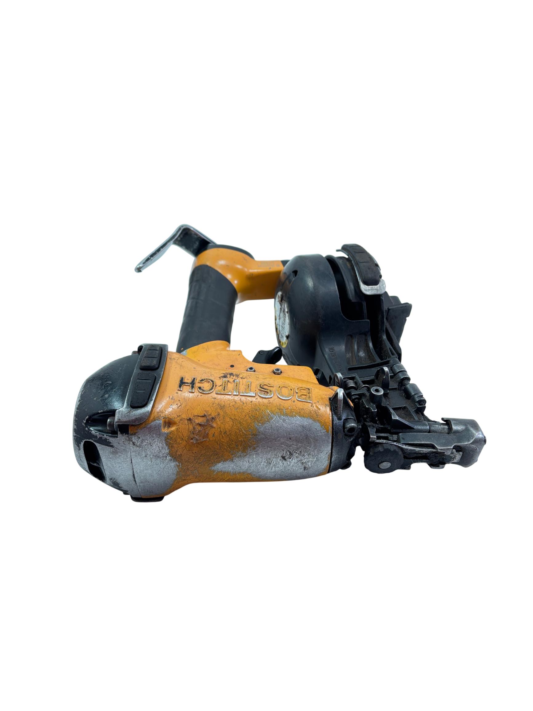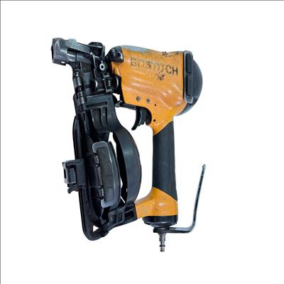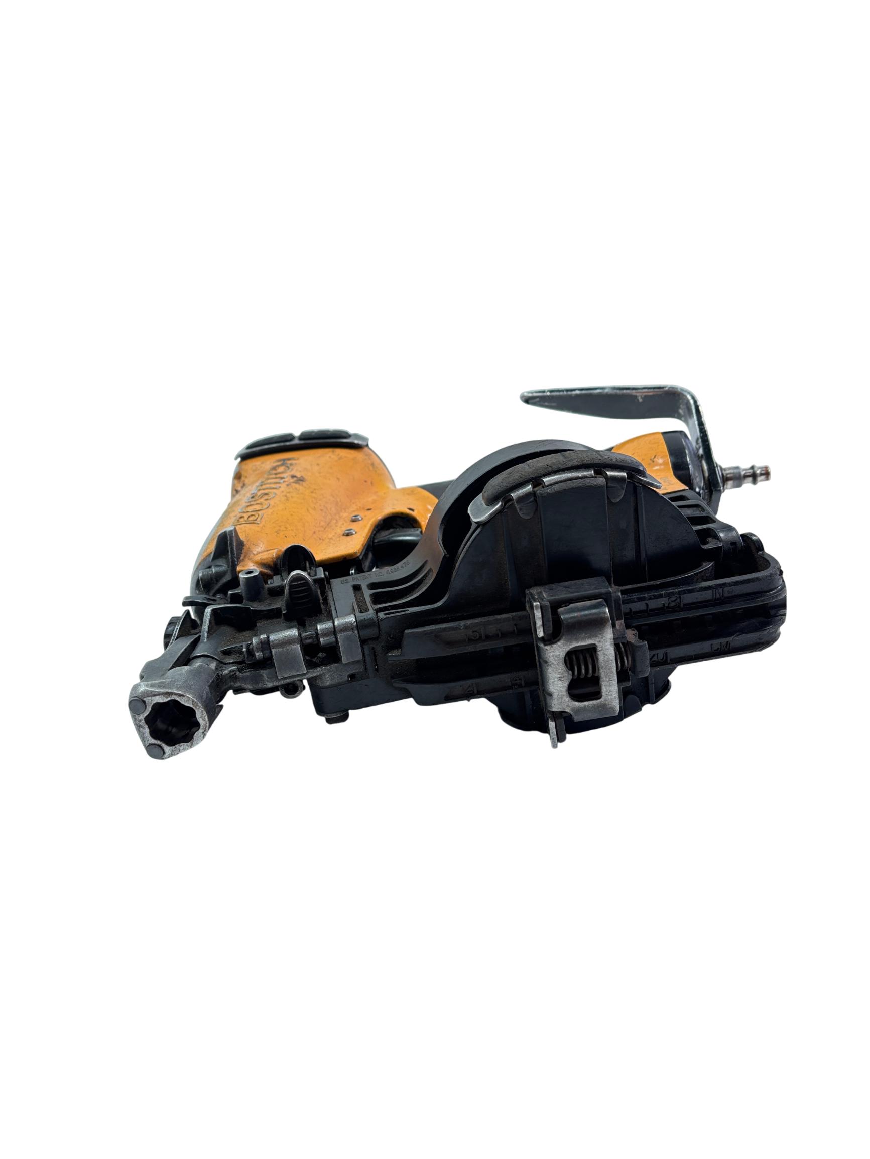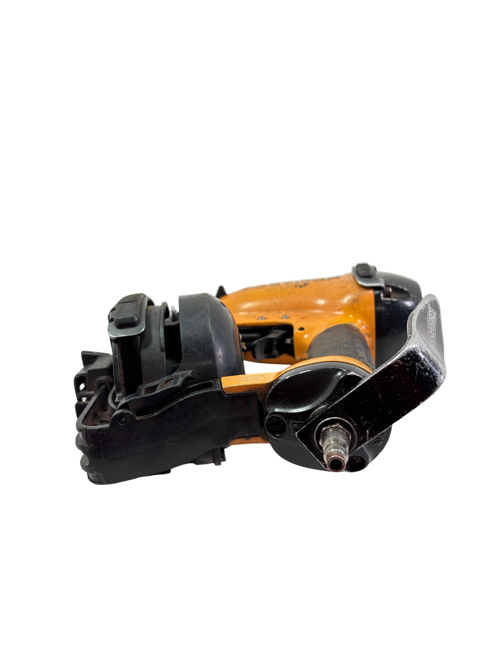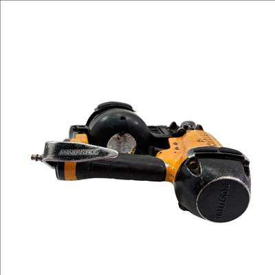 Bostitch RN46-1 15-Degree Pneumatic Coil Roofing Nailer is designed with an aluminum housing for durability and lightweight handling. This powerful pneumatic tool operates at a 15-degree angle to efficiently drive 11-gauge nails ranging from 3/4 inch to 1-3/4 inches, making it ideal for roofing and siding applications. Its ergonomic yellow and black design provides enhanced control and comfort during extended use.