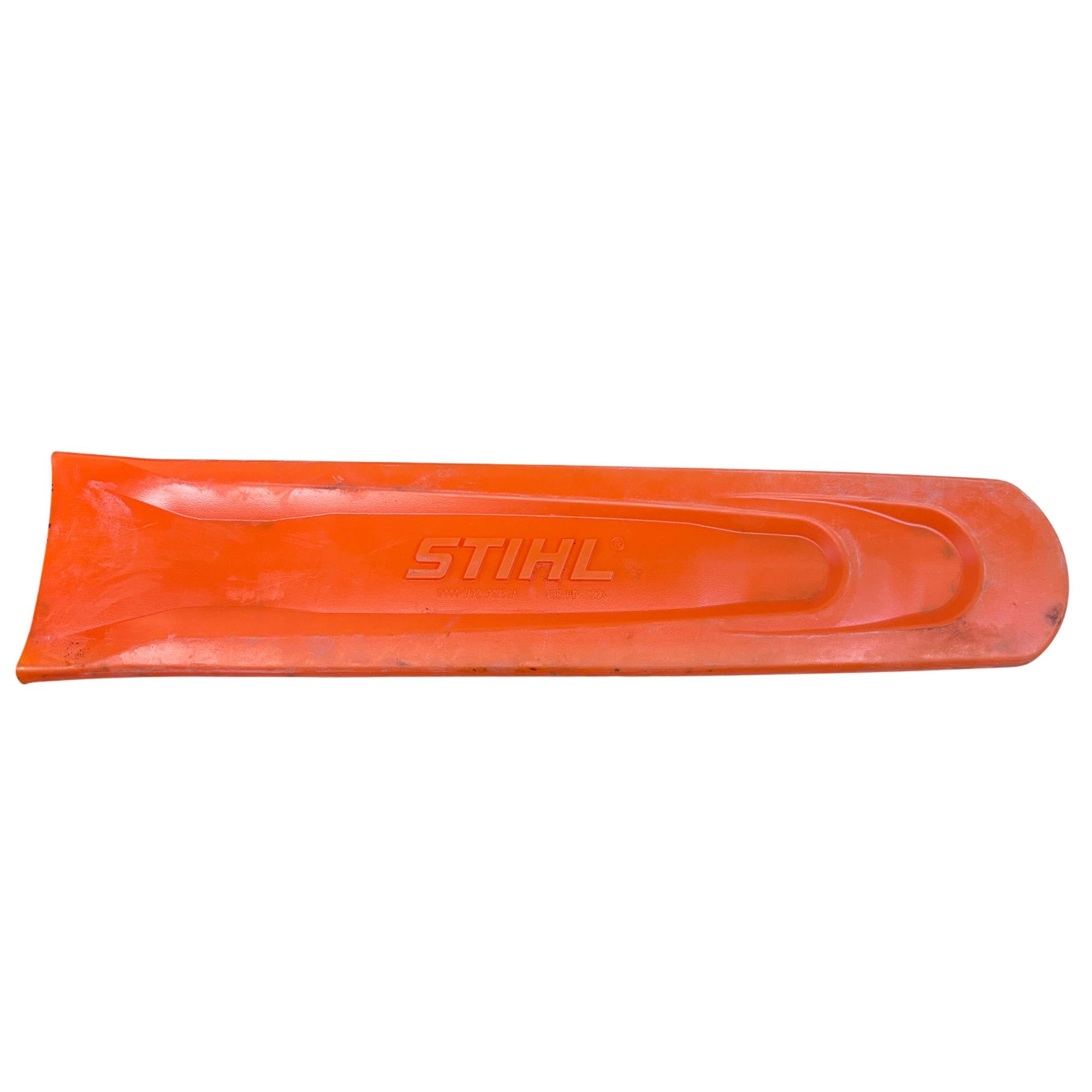 STIHL OEM 0000-792-9173 18" Chainsaw Bar Scabbard Cover provides durable protection for chainsaw bars measuring up to 18 inches. Crafted from high-quality materials, this scabbard safeguards the bar and chain from damage and enhances safety during storage and transport. Designed to fit STIHL chainsaw models precisely, it helps maintain optimal tool performance.