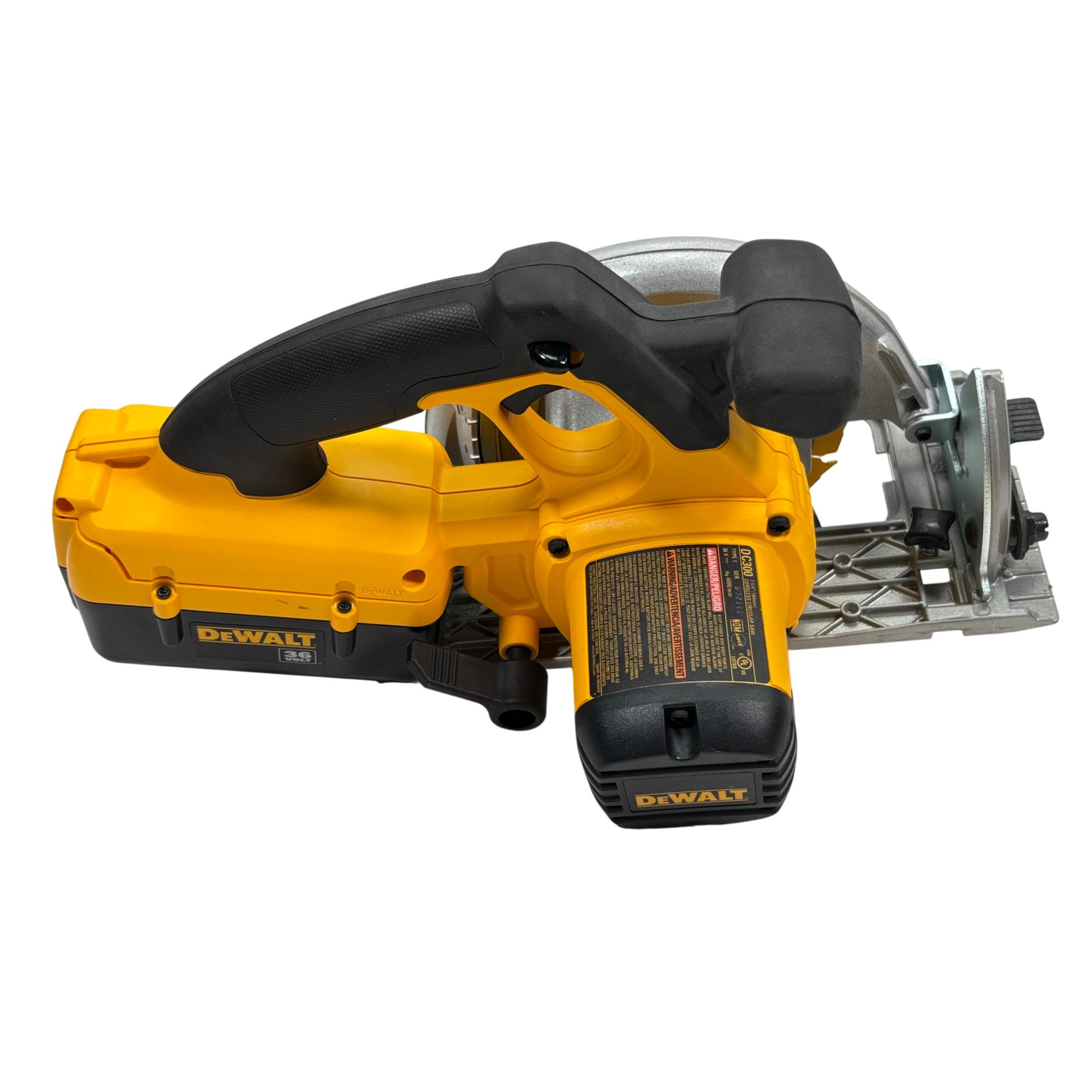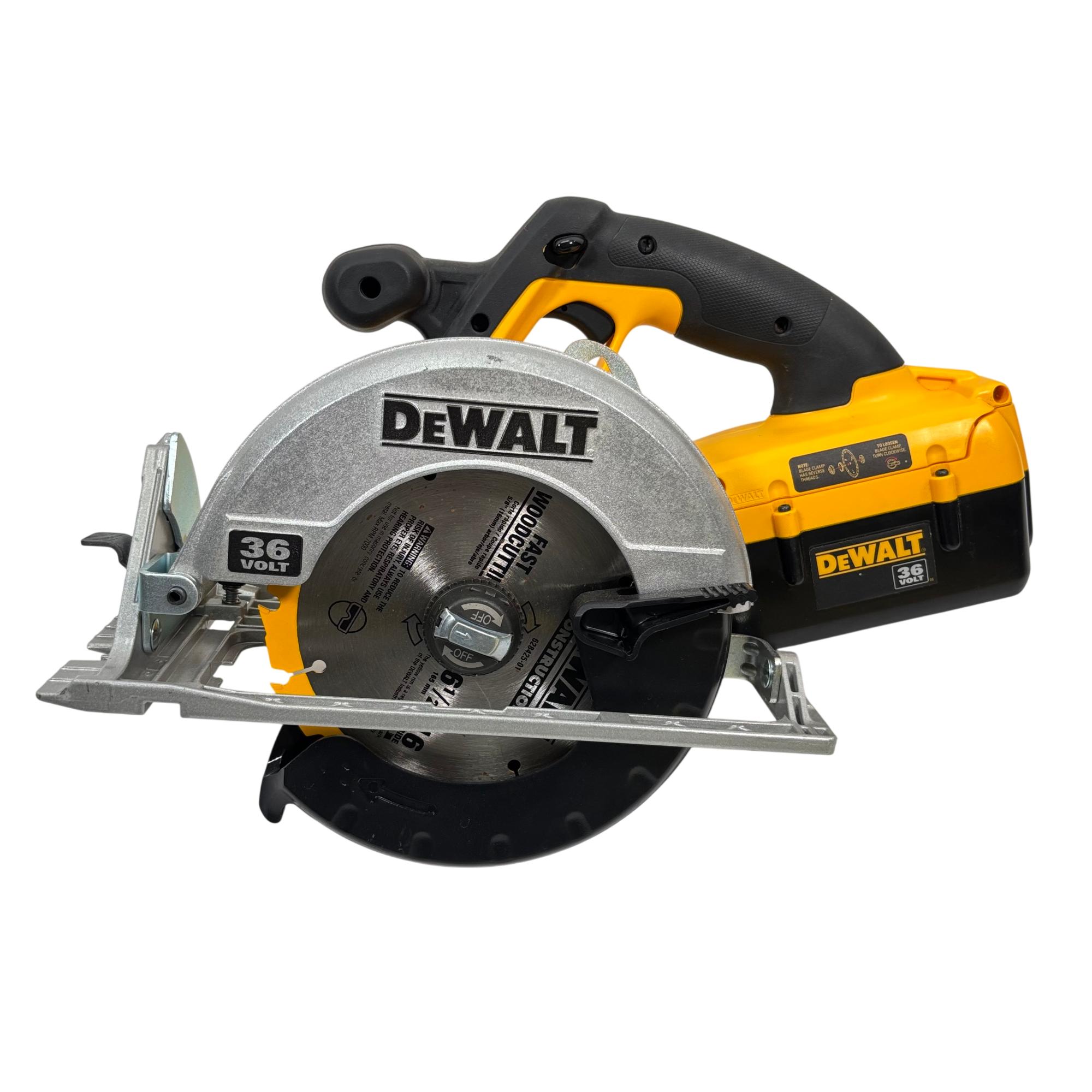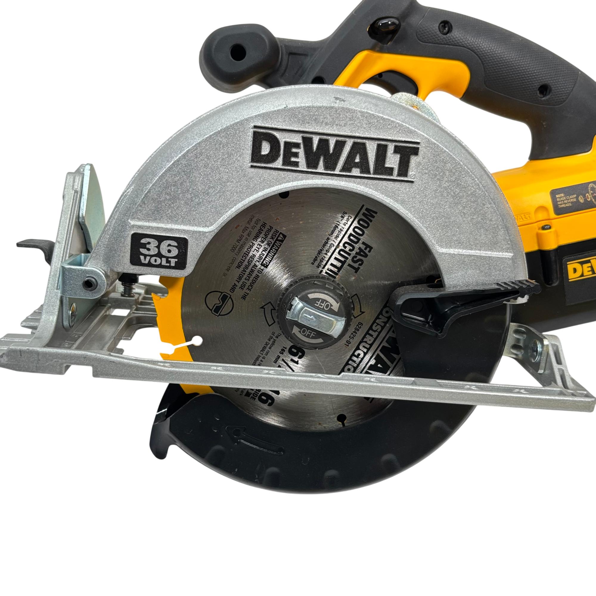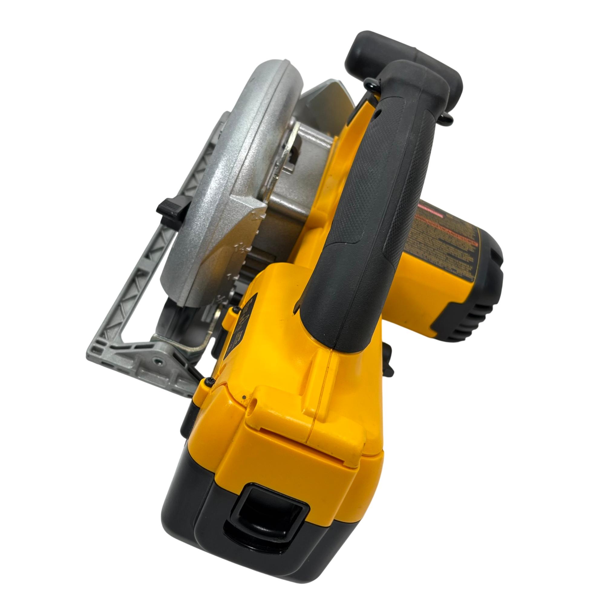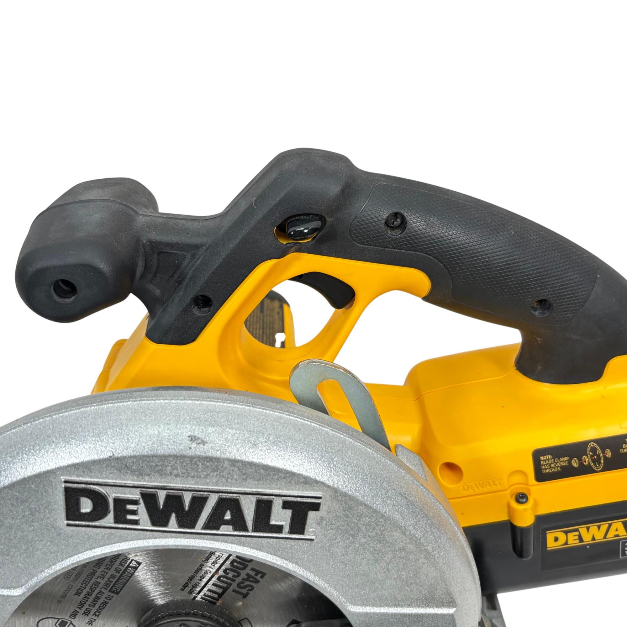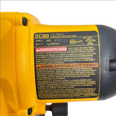 DeWalt Circular Saw delivers powerful and precise cutting performance for professional woodworking and construction tasks. Featuring a durable build with a black and yellow ergonomic handle, this cordless saw operates at up to 4000 RPM, making it suitable for efficient woodcutting with reliable blade clamp and easy adjustments. Designed for safety with a lower blade guard and requiring proper eye and respiratory protection during use, this tool supports fast, accurate cuts on various wood materials.
