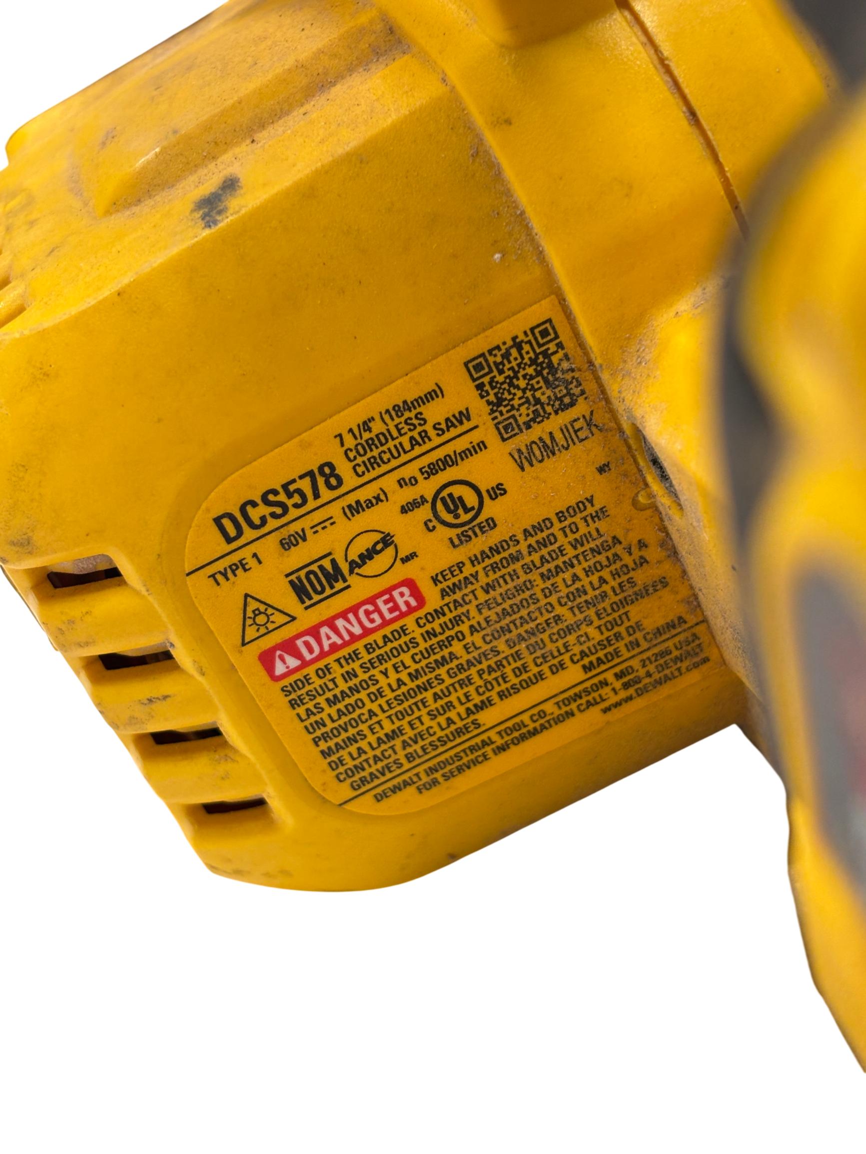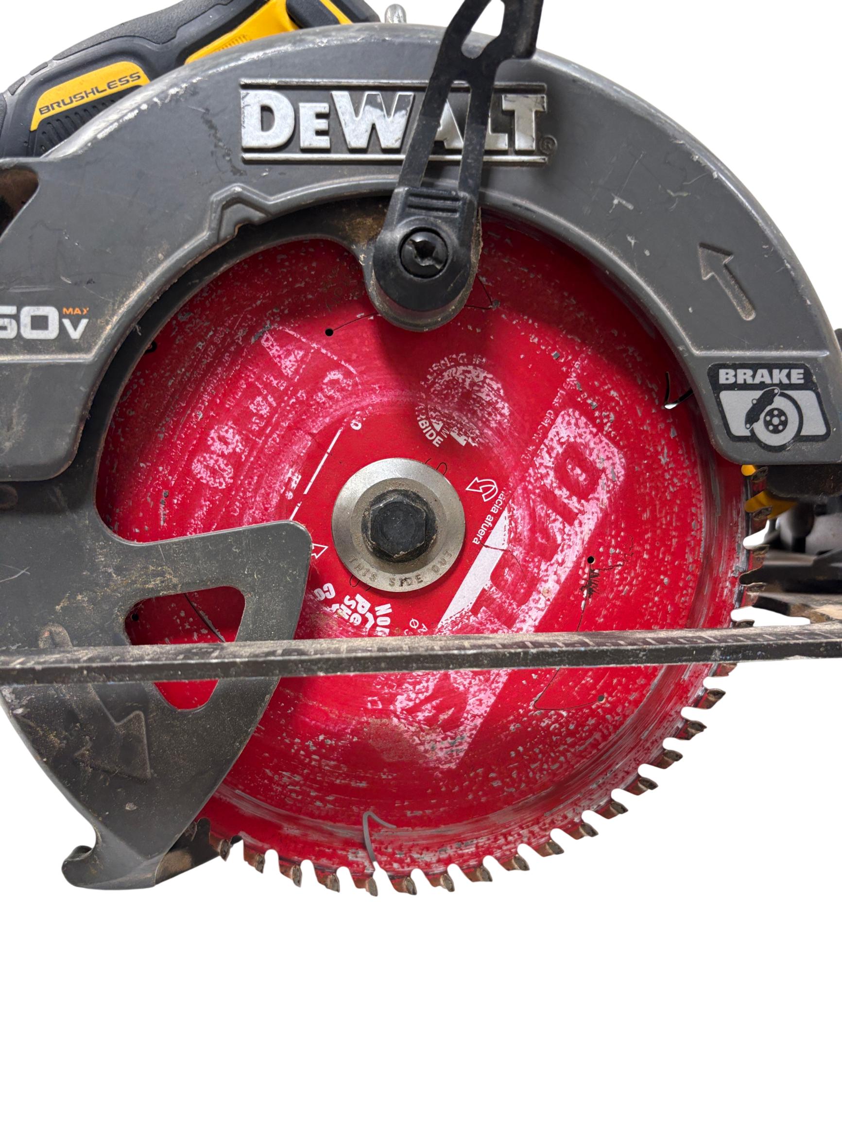 Delivers up to 47% more power than its predecessor, the DCS575, with a robust 2456 unit watts out and a no-load speed of 5800 RPM, matching the power of corded saws while offering the freedom of cordless use. This saw features a 7-1/4" blade, with a maximum cut depth of 2-9/16" at a 90° bevel, and a maximum bevel capacity of 57° with stops at 22.5° and 45°. An electric brake enhances safety by stopping the blade quickly after the trigger is released, while an integrated LED light improves visibility and cut accuracy.