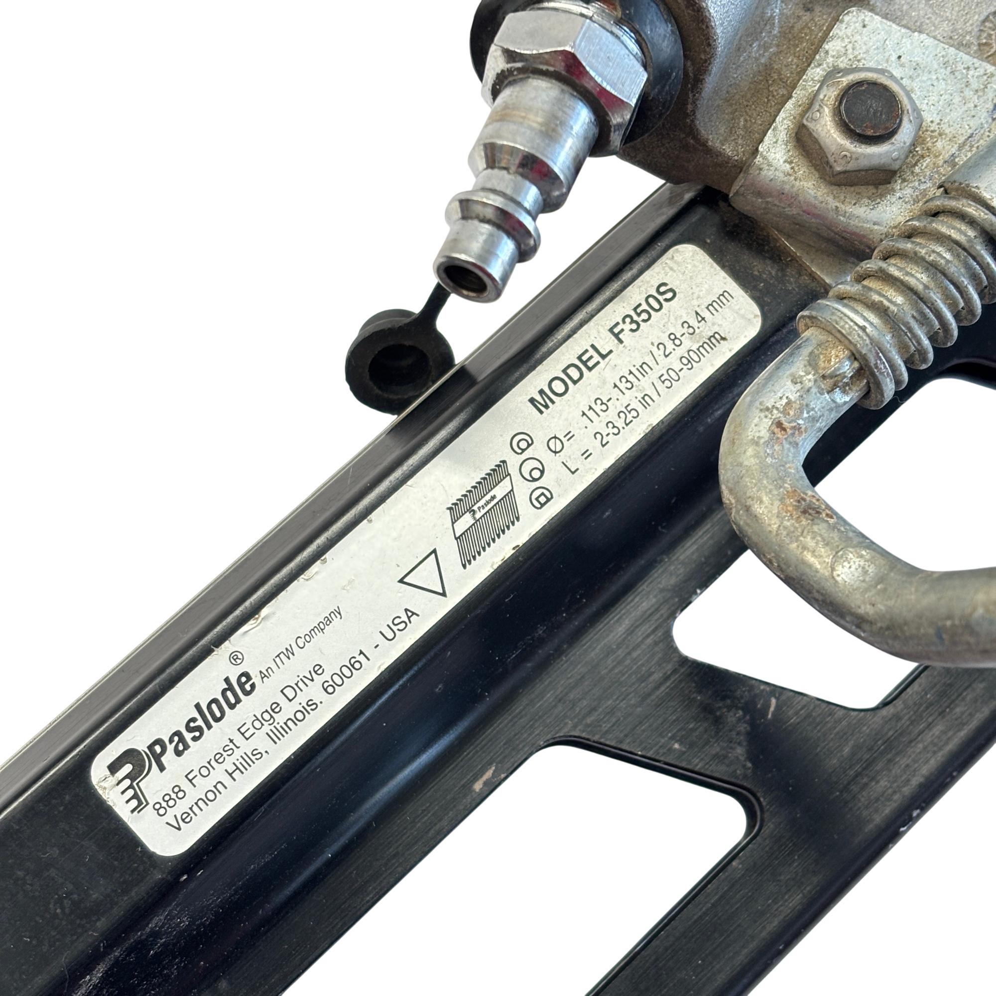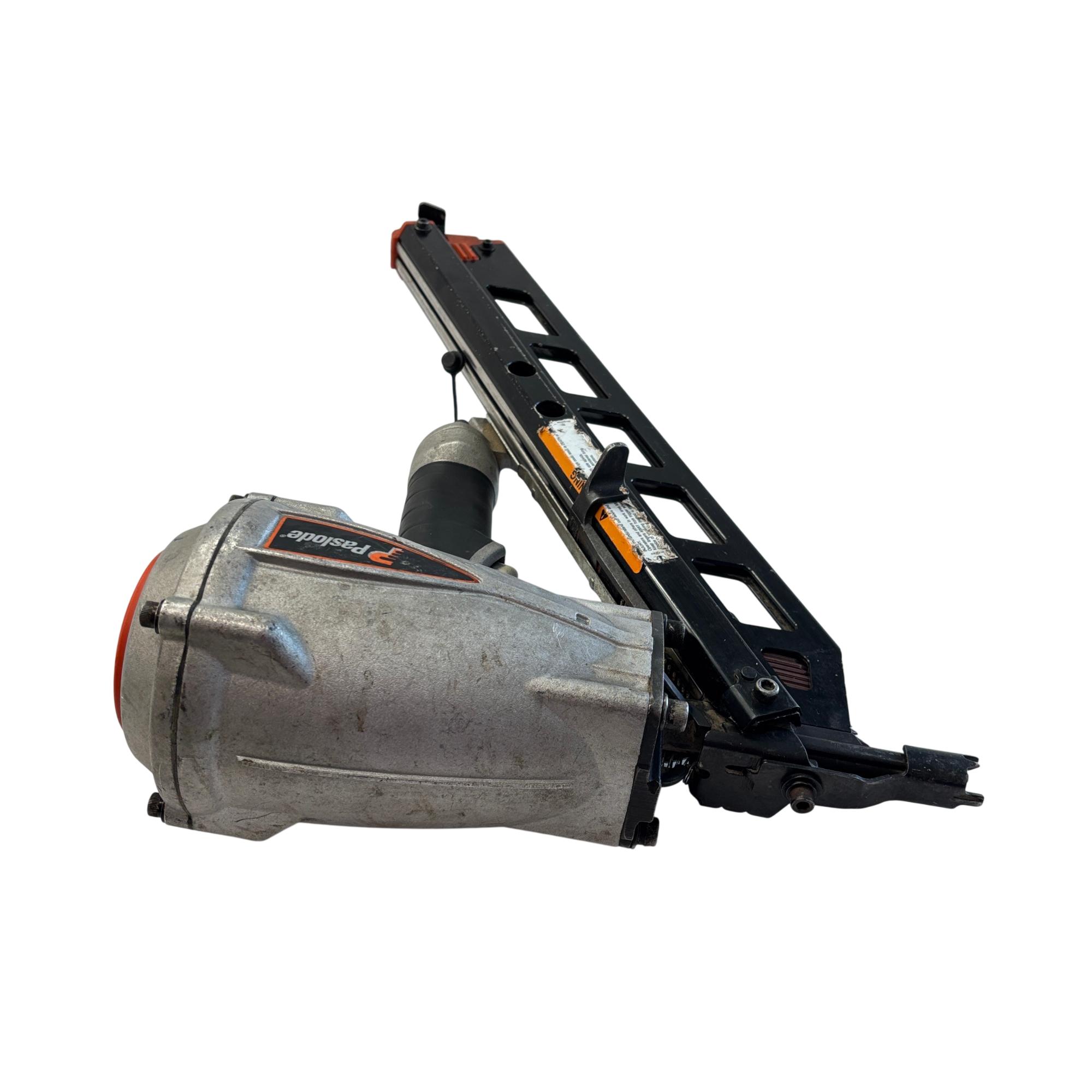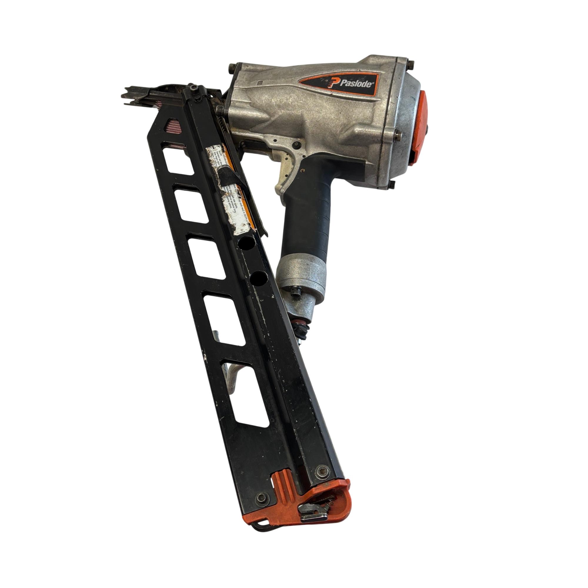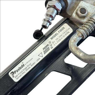 Paslode F350S PowerMaster Plus 30-Degree Pneumatic Framing Nailer offers powerful and efficient performance for heavy-duty framing applications. Designed with a black and silver body, this air-powered nail gun delivers precise and consistent nailing with 2 to 3-1/2 inch nails at a 30-degree angle, making it ideal for professional construction and carpentry projects.