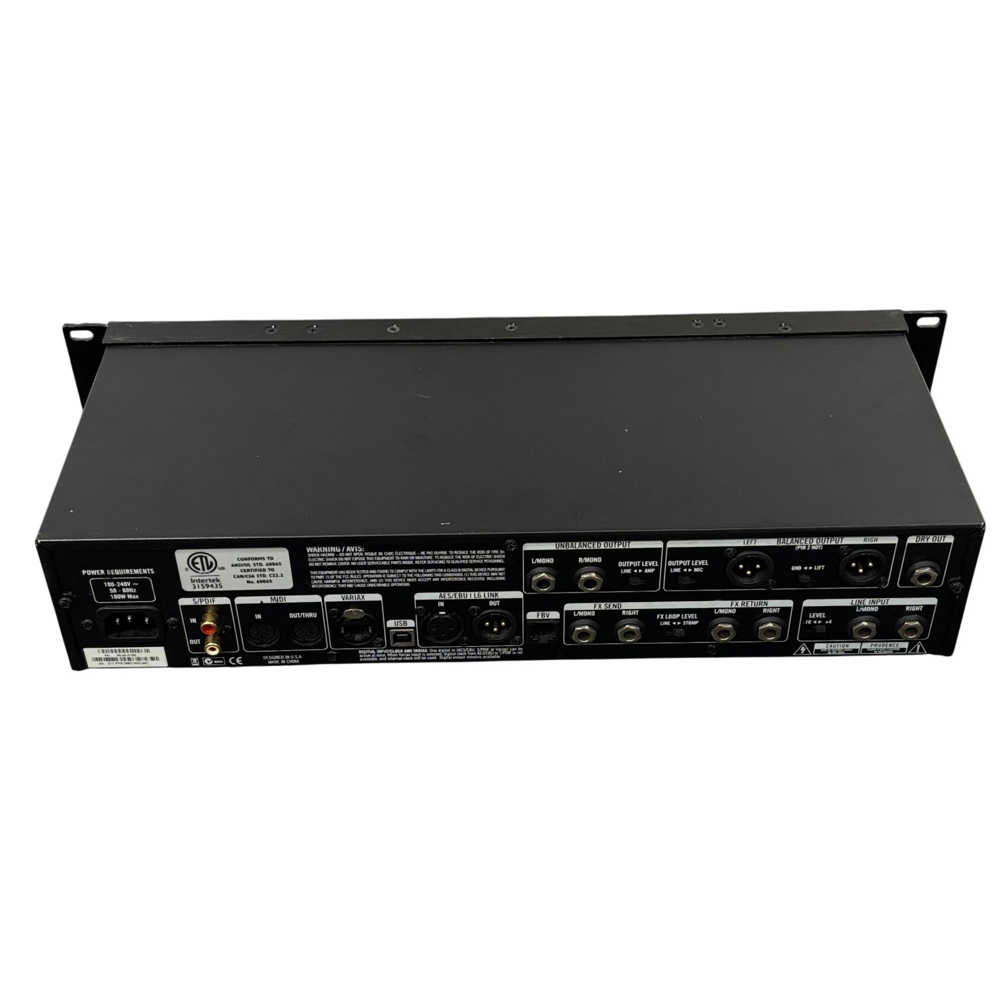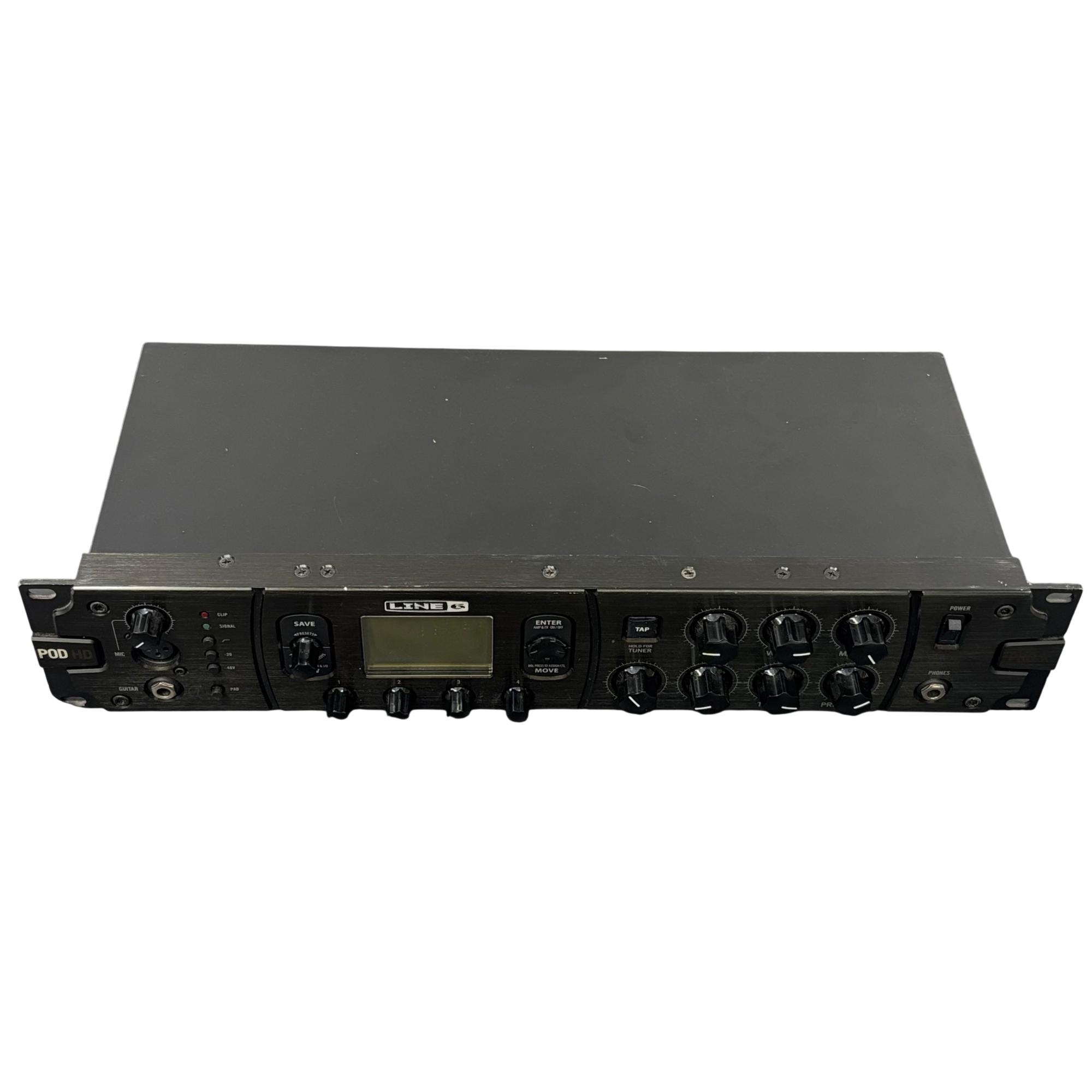 Line 6 POD HD Pro X Rackmount Guitar Multi-Effects Processor delivers professional-grade guitar tones with versatile digital amp modeling and effects. This rackmount unit features an intuitive interface with multiple dials and buttons for detailed control over drive, volume, treble, bass, presence, and effects parameters, making it ideal for studio and live performance environments.