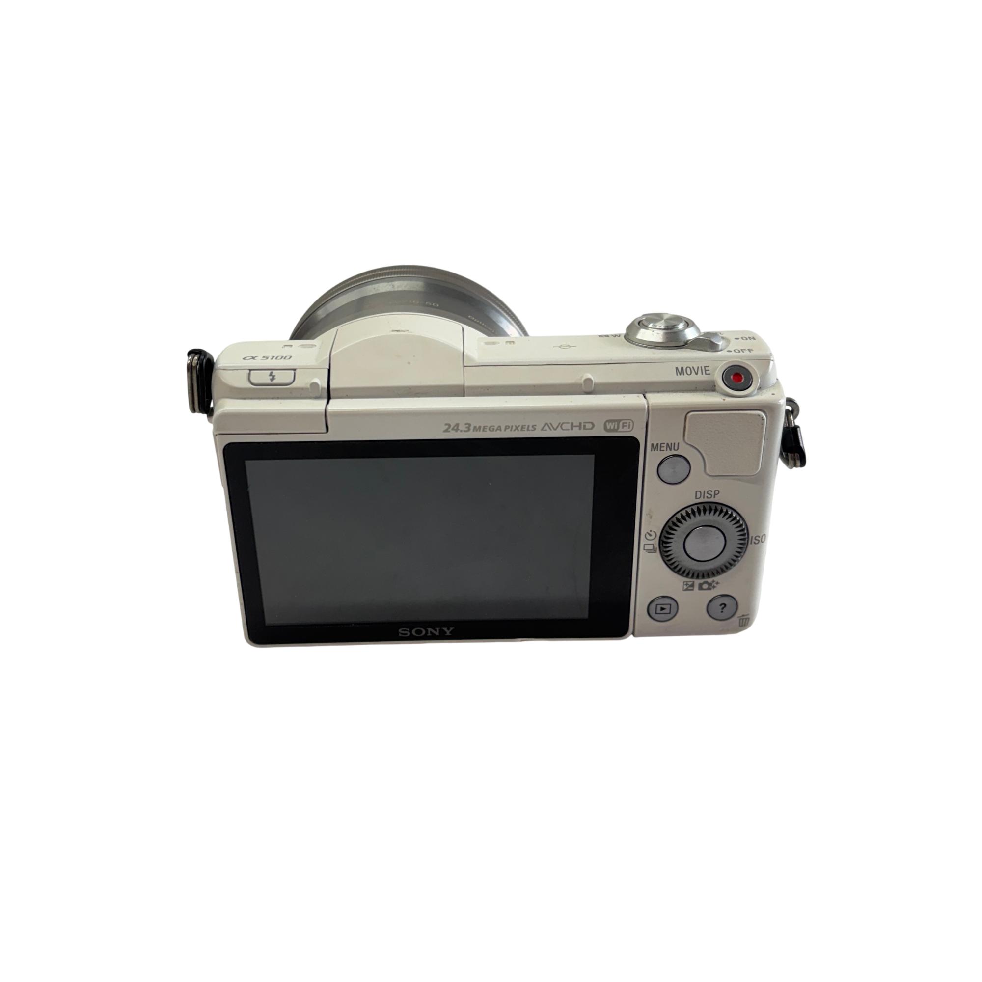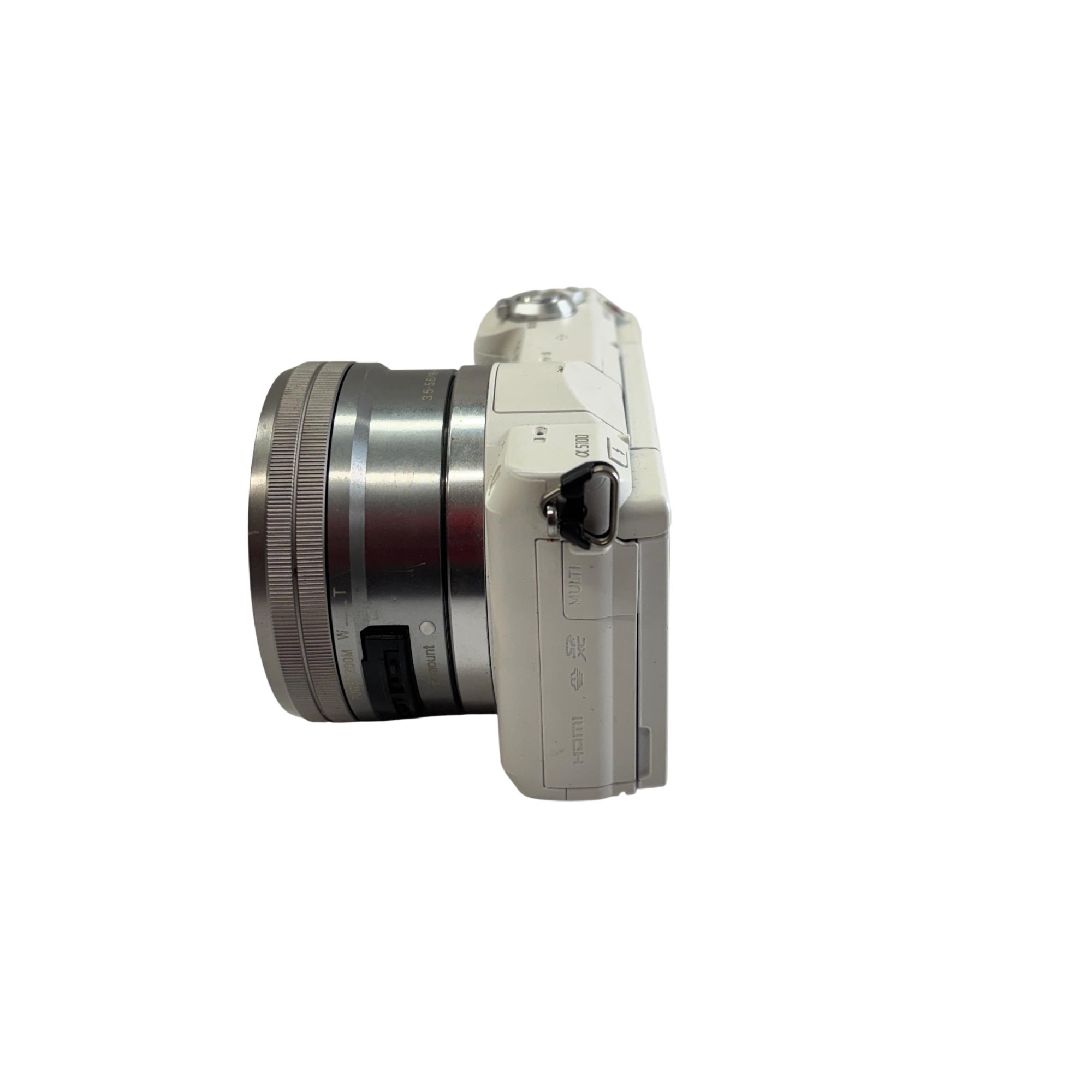 Sony Alpha a5100 Mirrorless Digital Camera (White) with 16-50mm OSS Lens features a compact, lightweight design perfect for versatile photography needs. This digital camera offers a 24.3-megapixel APS-C sensor paired with a fast hybrid autofocus system and built-in Wi-Fi for seamless image transfer and remote control. Equipped with a sharp 16-50mm optical steady shot lens, it captures high-quality images and smooth Full HD video in various lighting conditions.