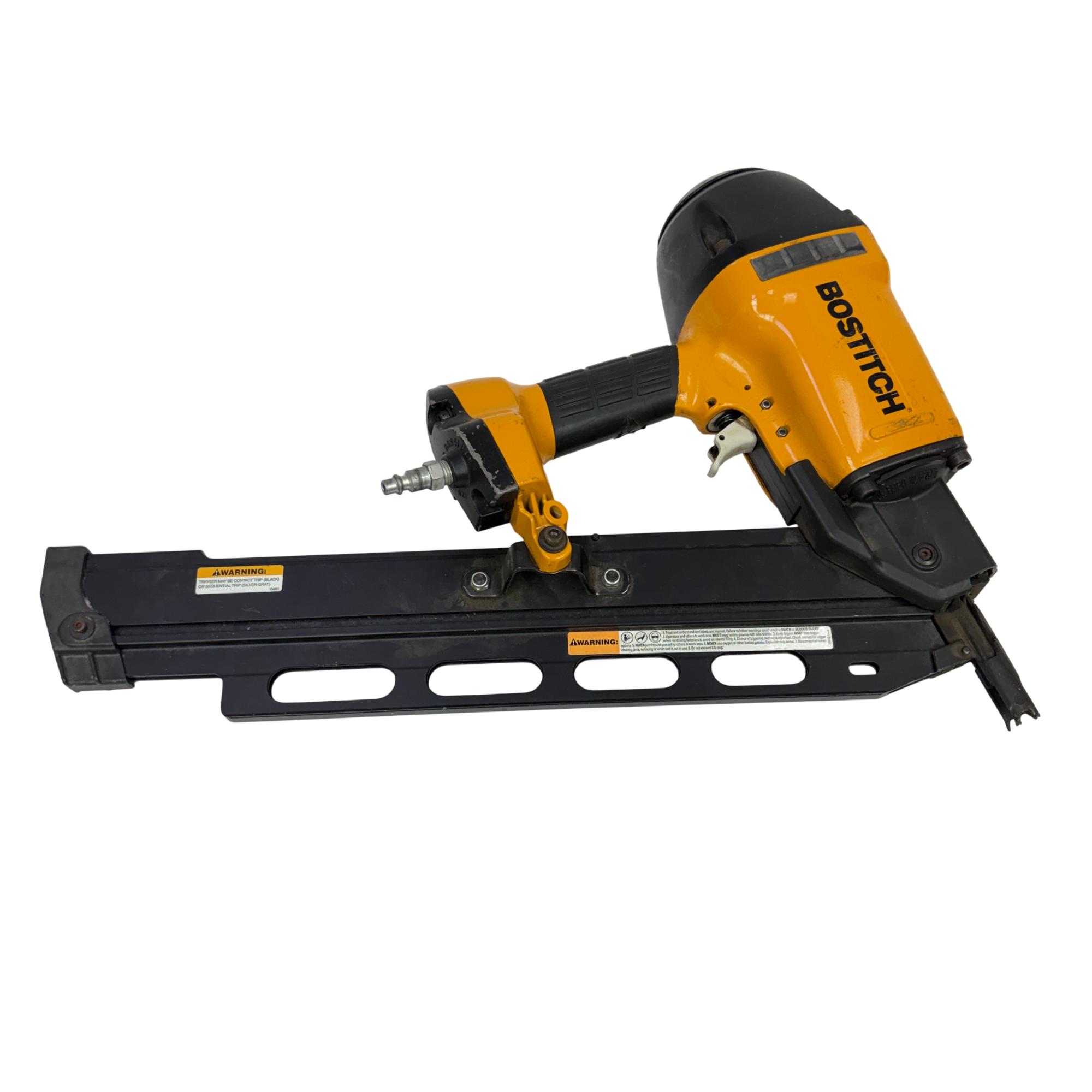This Bostitch N88RH Magnesium 21-Degree Pneumatic Framing Nailer Tool Only is a durable and lightweight nail gun designed for efficient framing applications. Constructed with a magnesium body, it offers enhanced portability and strength, making it suitable for professional use in woodworking and construction projects. This tool operates with a sequential trip trigger for precise and controlled nailing performance.