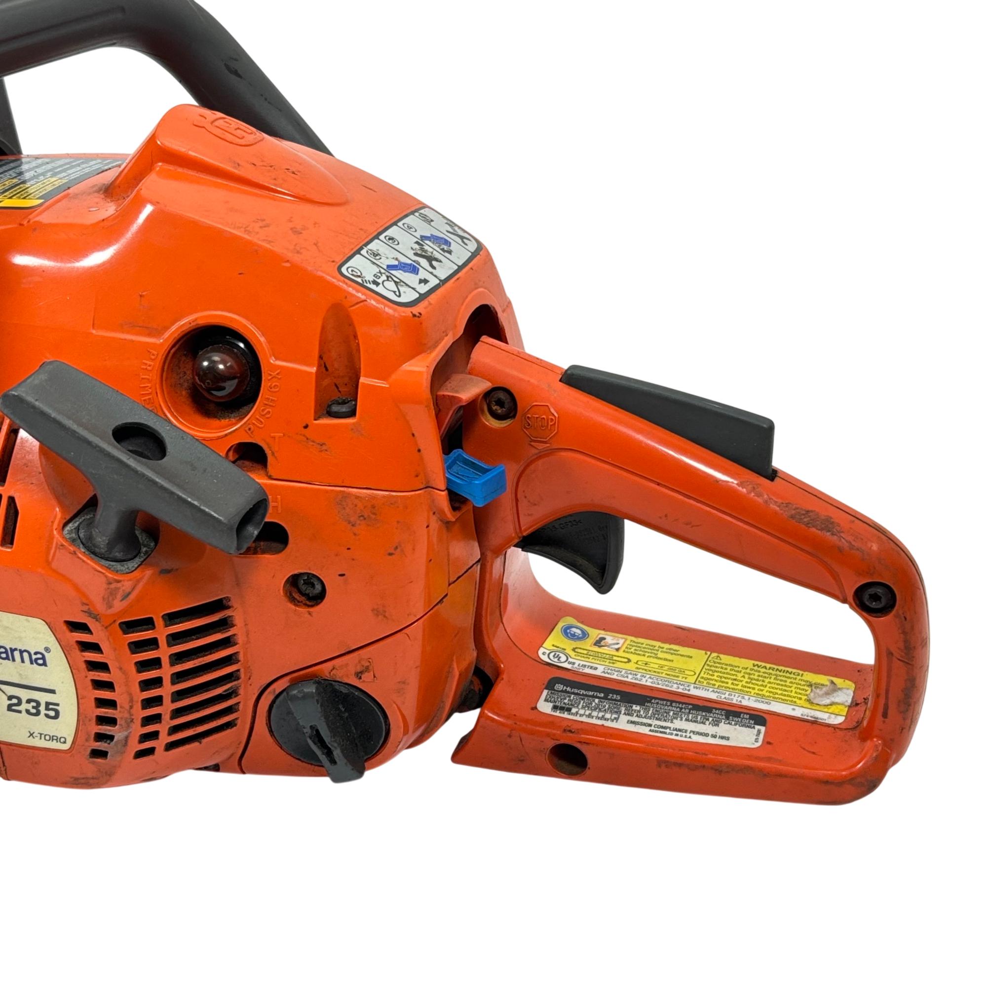 Husqvarna 235 X-Torq Gas Chainsaw features a powerful 34.4cc engine paired with a 16-inch bar, delivering efficient cutting performance for a variety of outdoor tasks. Designed with ergonomic black handles and advanced X-Torq technology, this chainsaw ensures reduced emissions and better fuel efficiency while maintaining durability and ease of use.
