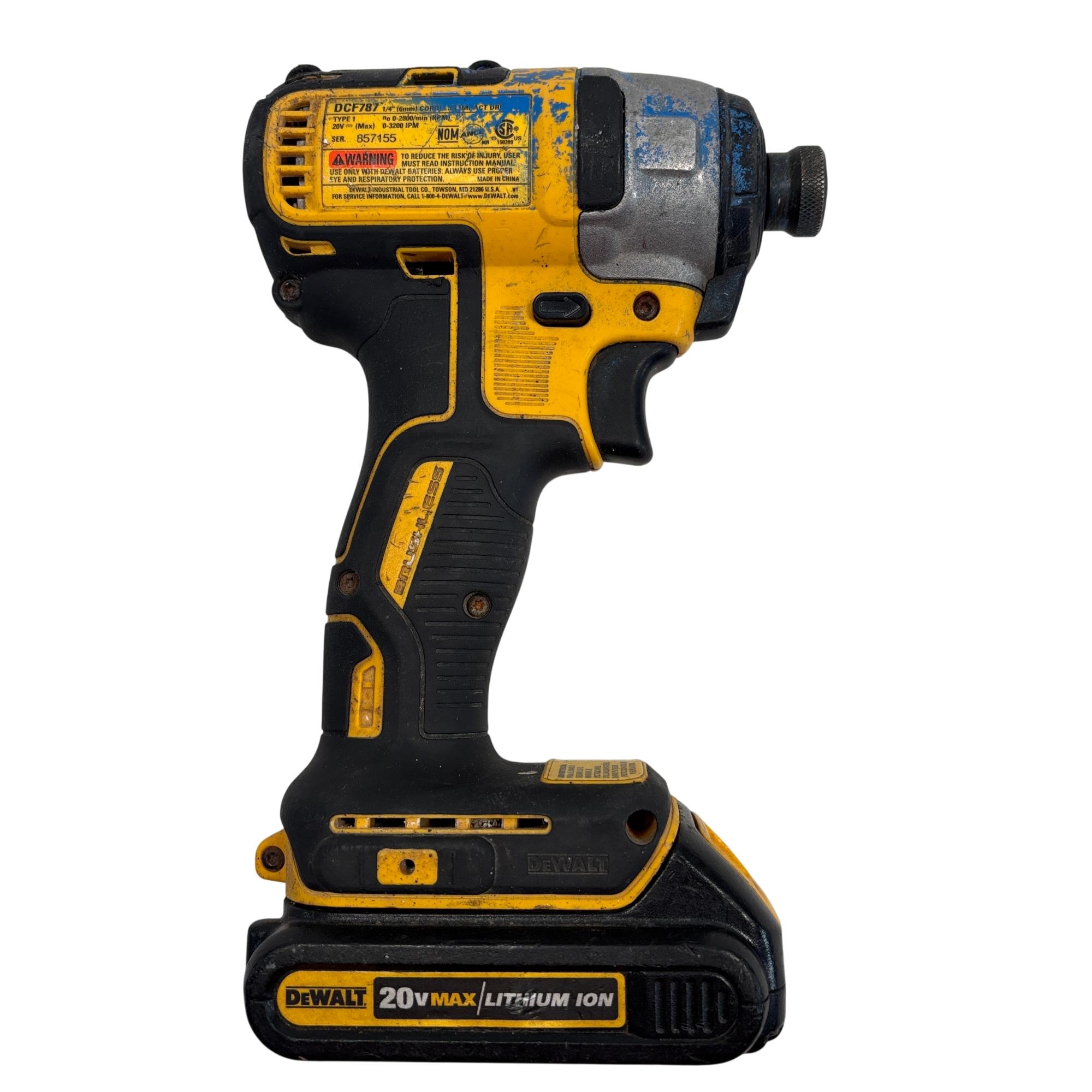 The DeWalt DCF787 20V MAX Brushless Cordless 1/4" Impact Driver features a compact and lightweight design ideal for driving screws and tightening fasteners with precision. This brushless impact driver delivers up to 2800 RPM and 3200 IPM for efficient performance, while its durable construction ensures reliable operation on various projects.