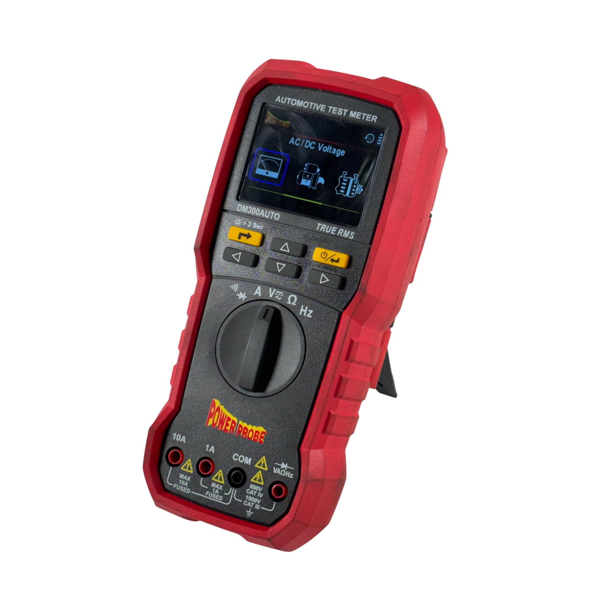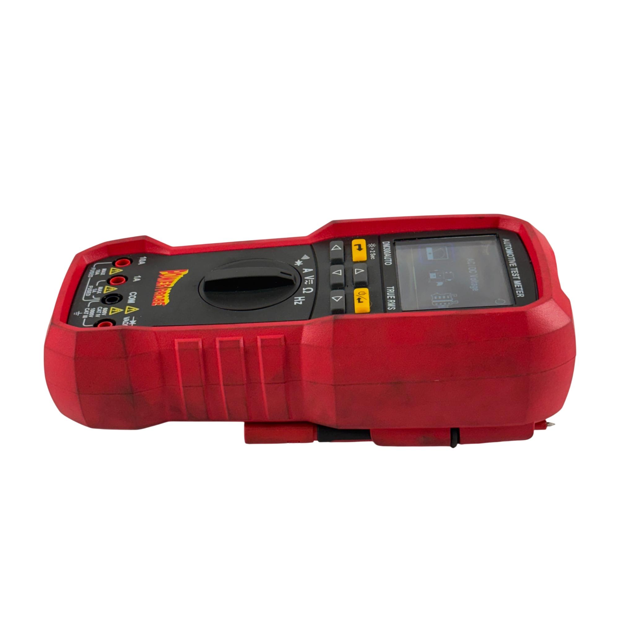 The Power Probe DM300AUTO Compact Handheld True-RMS Automotive Digital Multimeter is designed specifically for professional automotive diagnostics. In addition to standard multimeter functions, it offers specialized features such as fuse voltage drop testing and the ability to measure current through fuses up to 80A without removal.