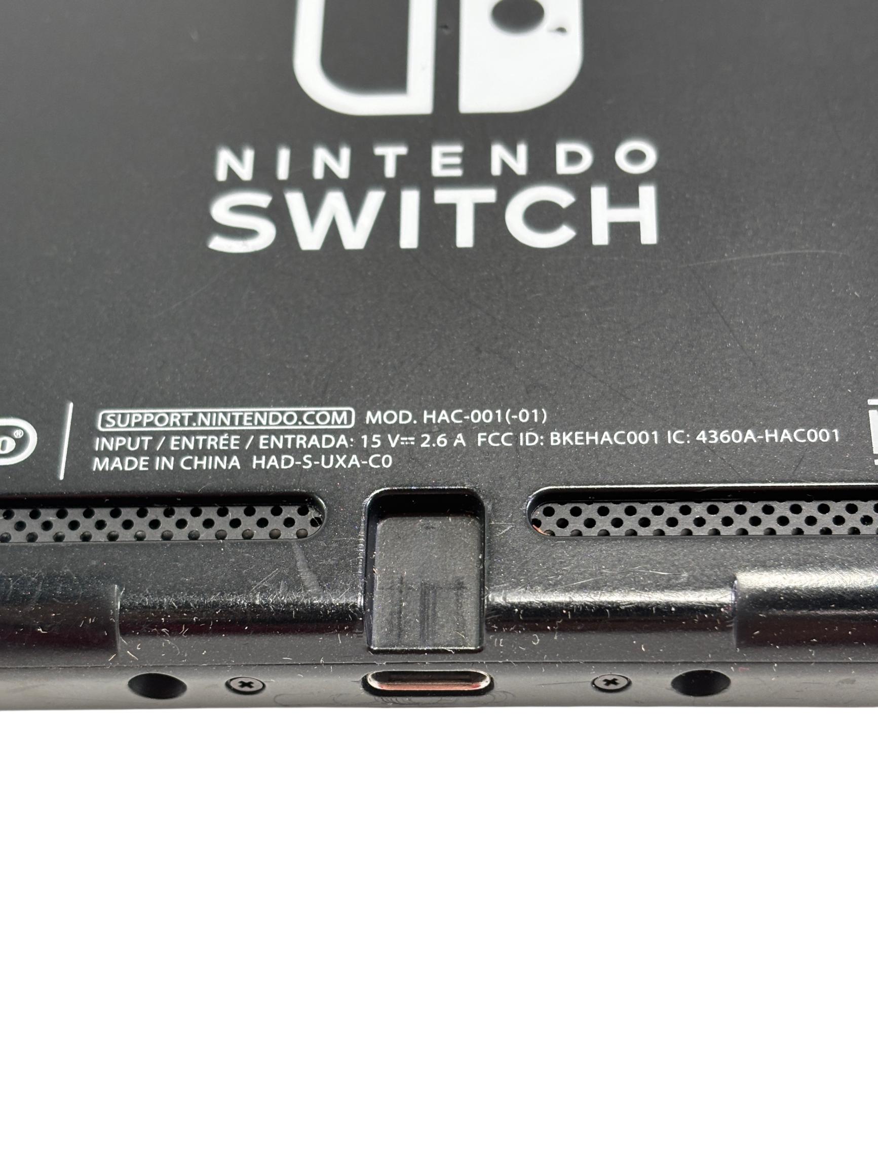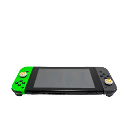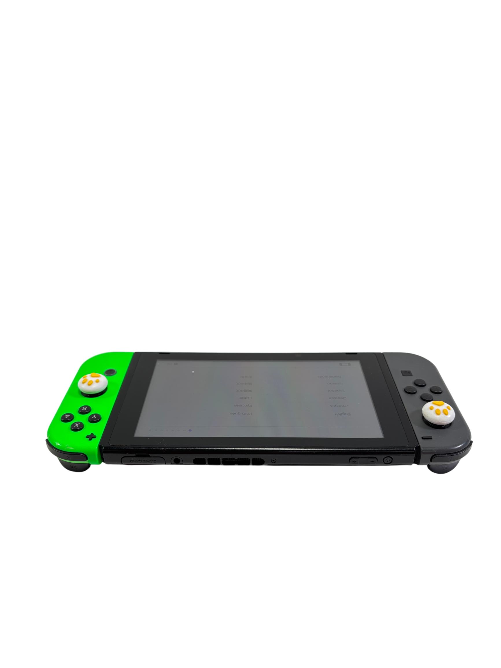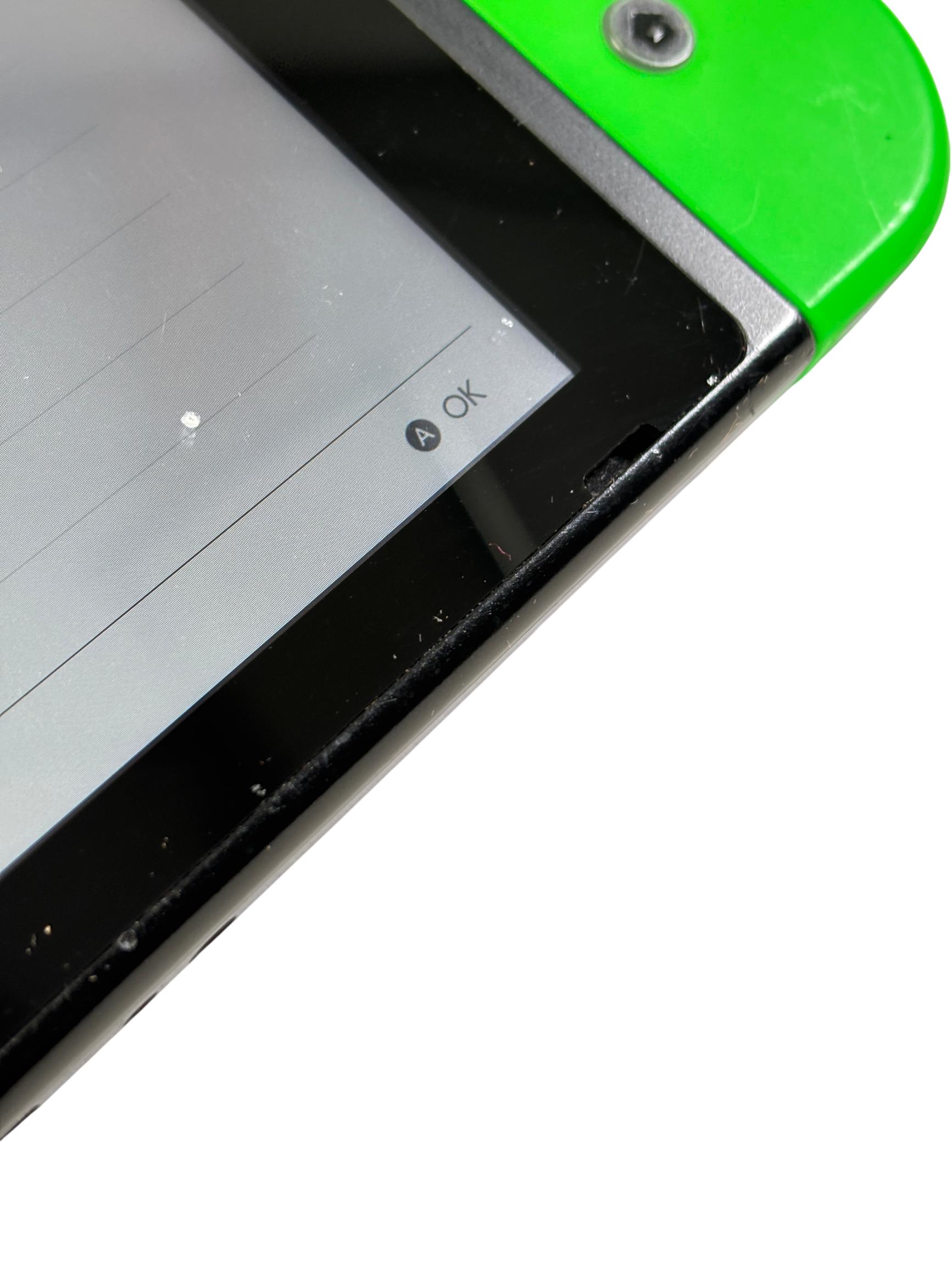 Nintendo Switch Console HAC-001(-01) features a sleek design with black and neon green Joy-Con controllers, offering versatile gameplay options. This model supports multiple languages and includes various input methods, ensuring compatibility and ease of use for a wide range of players.