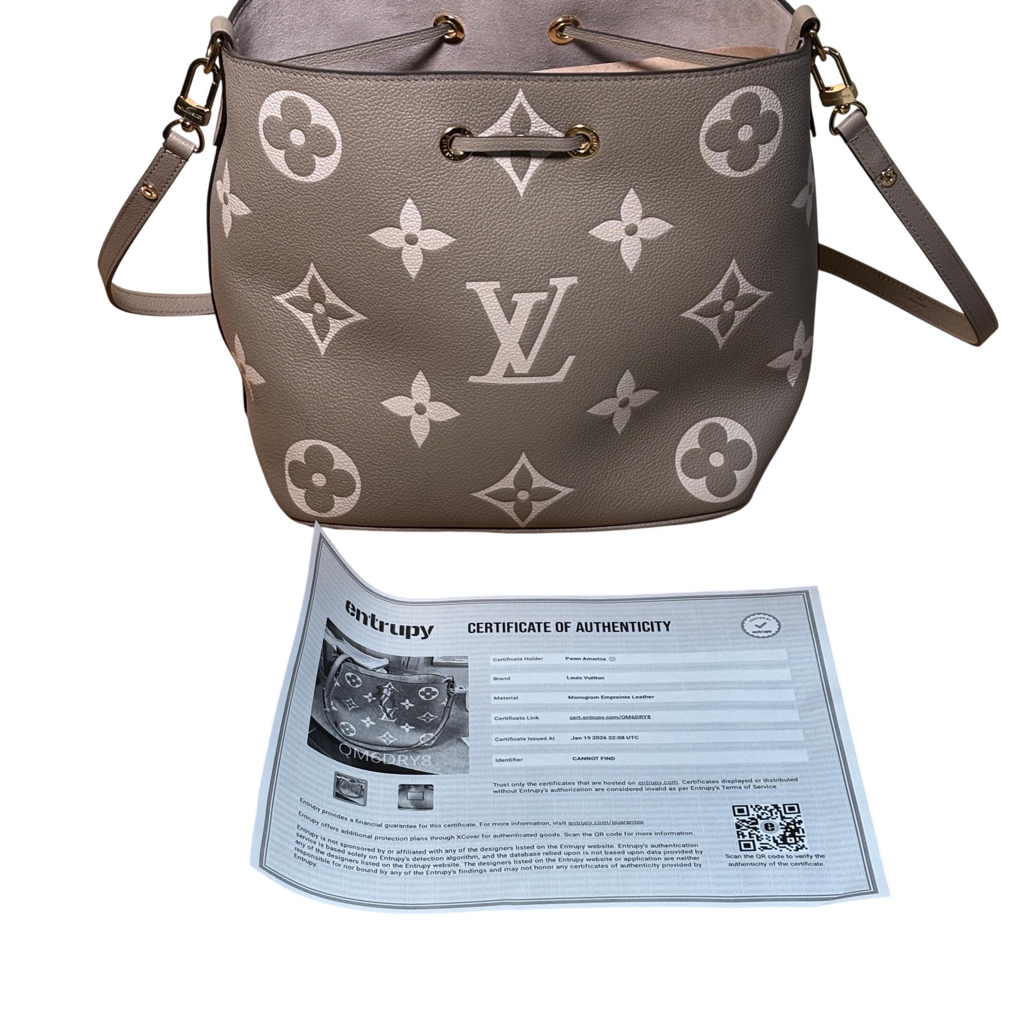 Louis Vuitton NéoNoé MM Bicolor Monogram Empreinte Leather Shoulder Bag features a textured leather design combining two tones in the iconic Monogram Empreinte pattern. This elegant shoulder bag offers a contemporary style with durable craftsmanship, making it a versatile accessory for everyday use or special occasions.