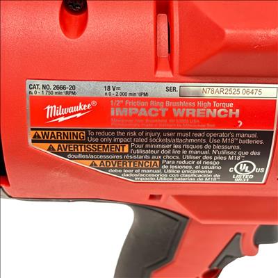 The 1/2" friction ring anvil allows quick one handed socket changes
